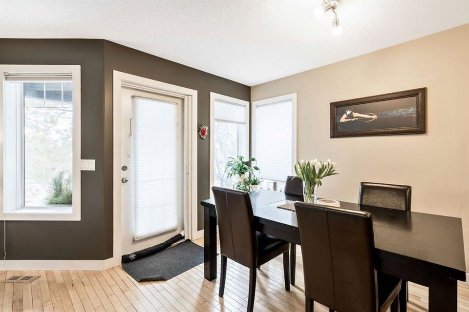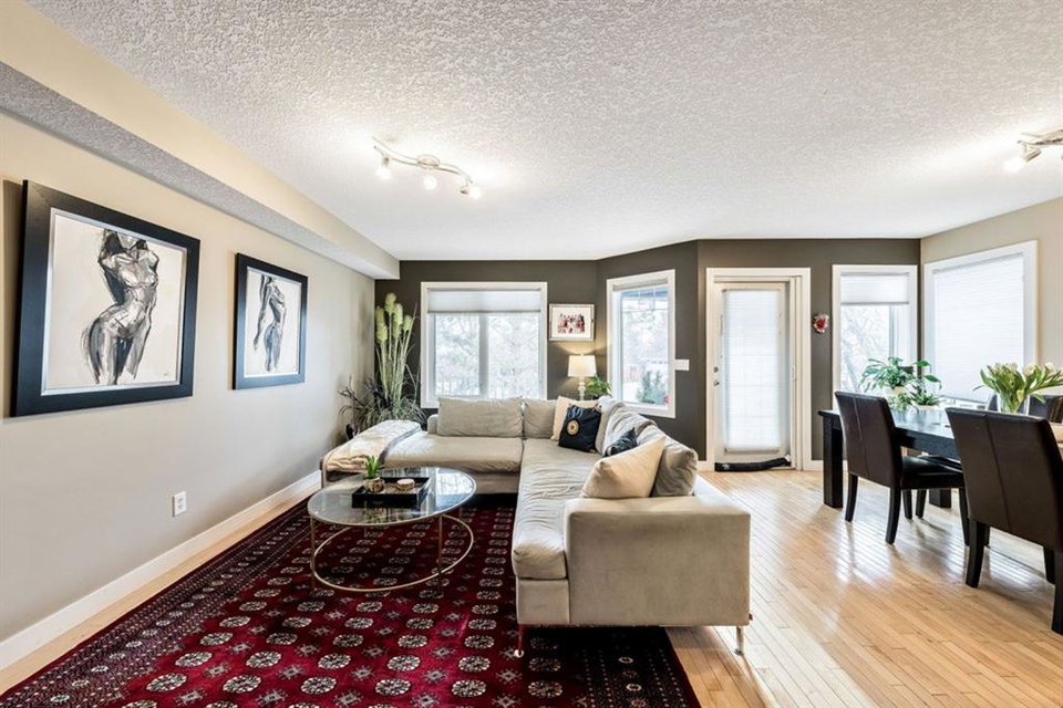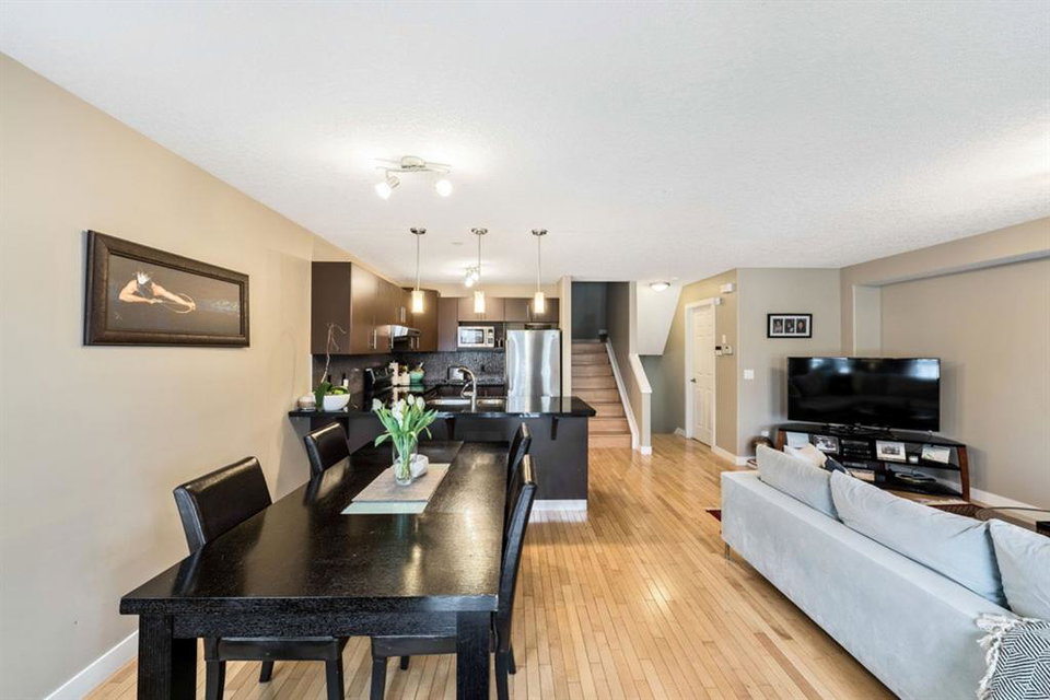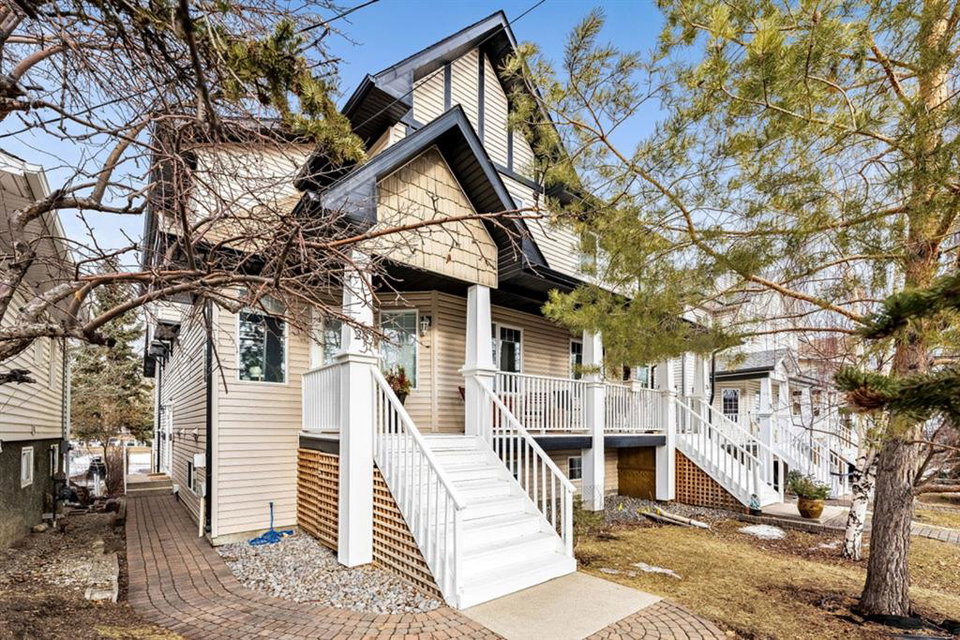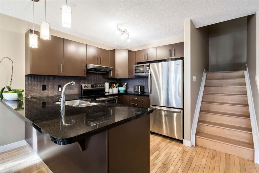 This bright and spacious unit has a lot to offer! Open floorplan, hardwood flooring throughout main and upper levels, contemporary color palette and a fabulous kitchen with extended eating ledge, granite counters, dark cabinetry and stainless steel appliances. Also an abundance of windows for natural light and oversized bedrooms, including master with walk-in closet and a Jack and Jill shared bath. Fully finished basement includes a large open rec room, oversized windows, gas fireplace, 3pc. bath and laundry. This 4 unit property is a self managed condo with a healthy reserve fund and low condo fees. And with easy access to downtown, Stampede grounds, shopping and all amenities, this is the perfect place to call home!