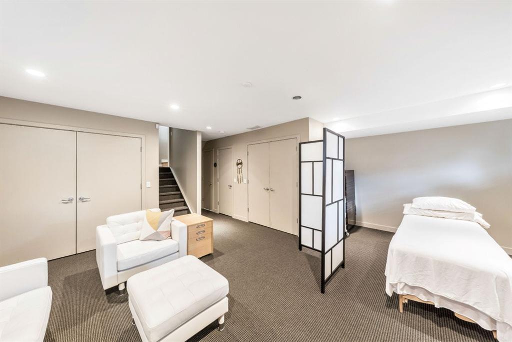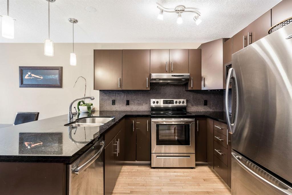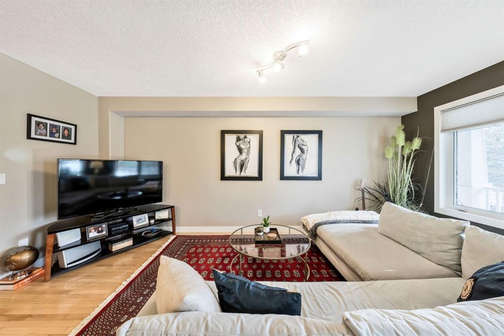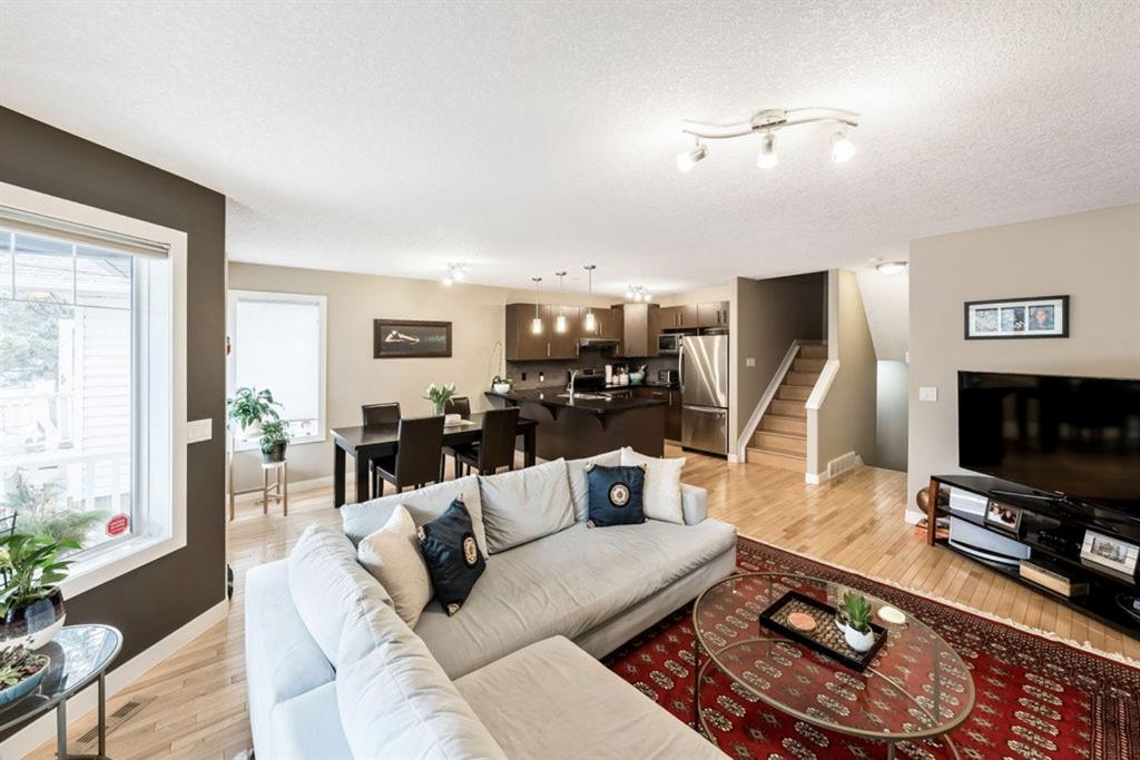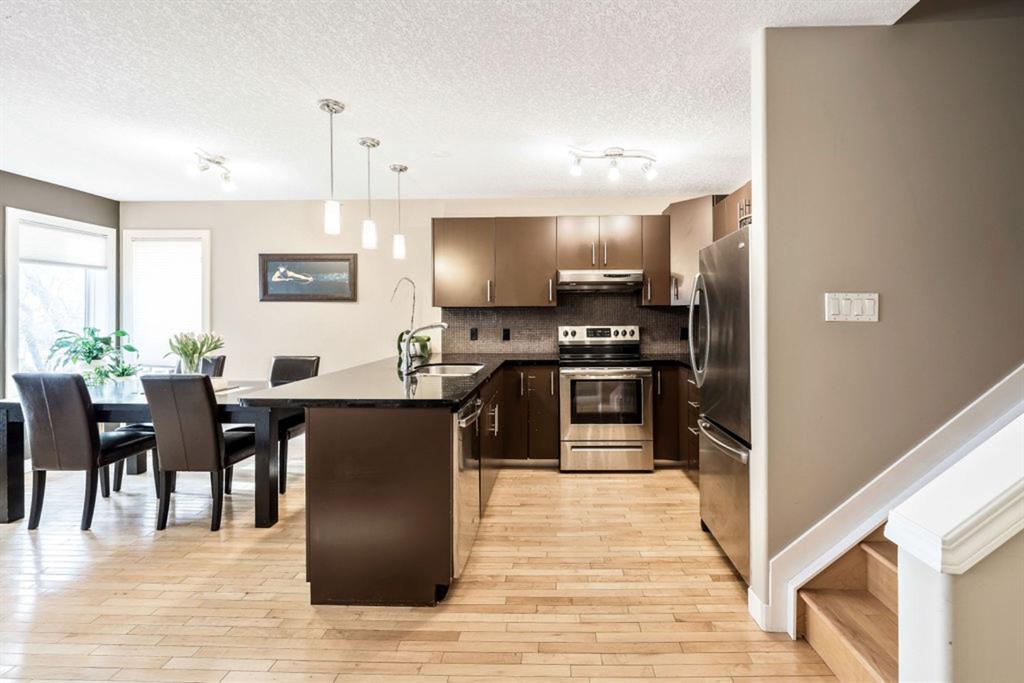 This bright and spacious unit has a lot to offer! Open floorplan, hardwood flooring throughout main and upper levels, contemporary color palette and a fabulous kitchen with extended eating ledge, granite counters, dark cabinetry and stainless steel appliances. Also an abundance of windows for natural light and oversized bedrooms, including master with walk-in closet and a Jack and Jill shared bath. Fully finished basement includes a large open rec room, oversized windows, gas fireplace, 3pc. bath and laundry. This 4 unit property is a self managed condo with a healthy reserve fund and low condo fees. And with easy access to downtown, Stampede grounds, shopping and all amenities, this is the perfect place to call home!