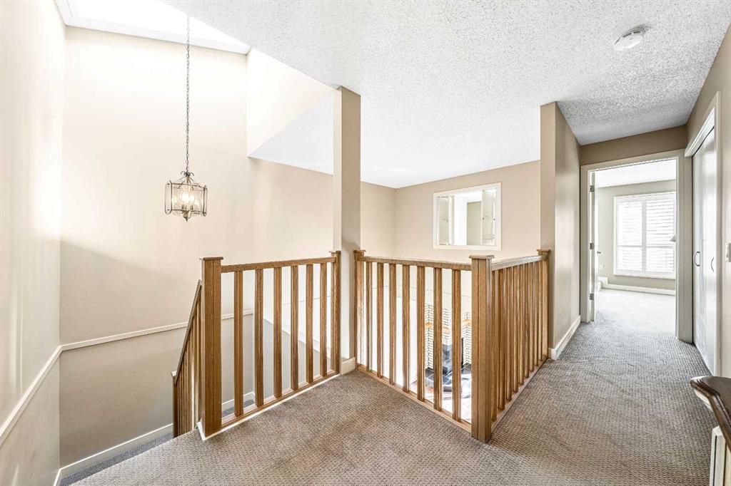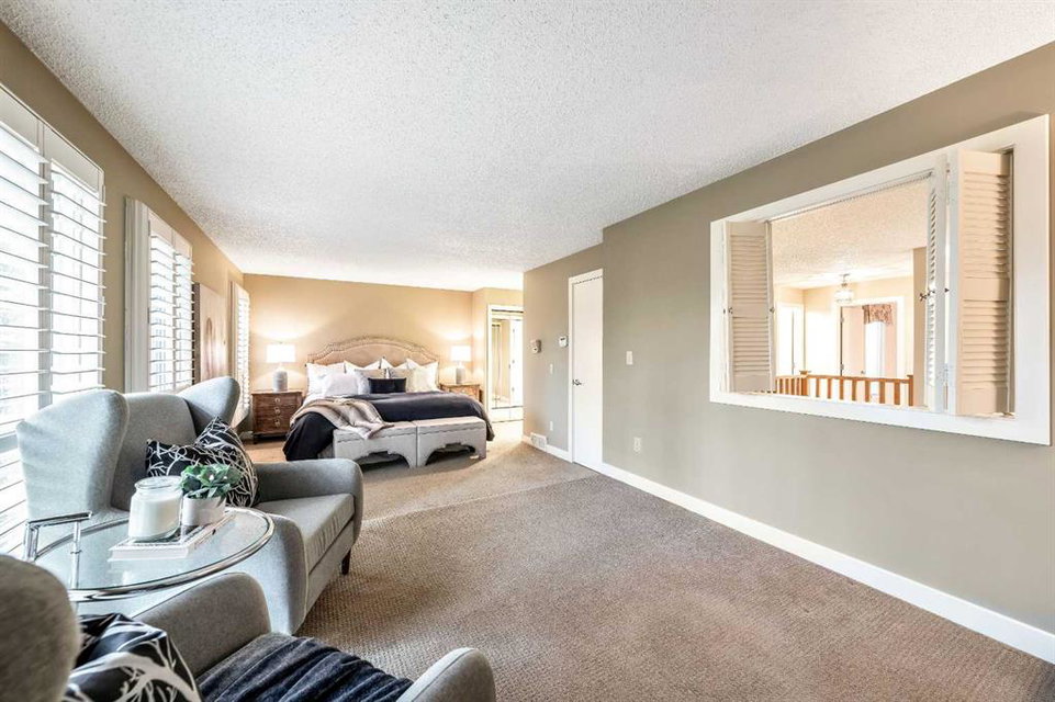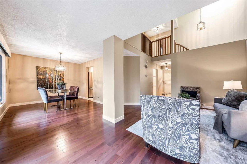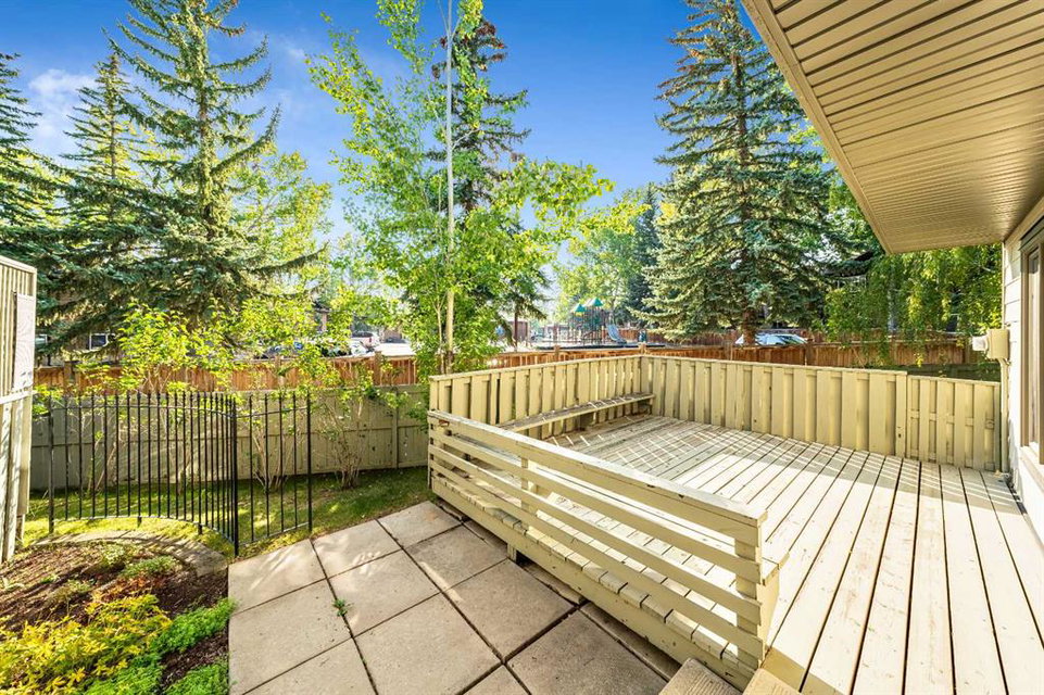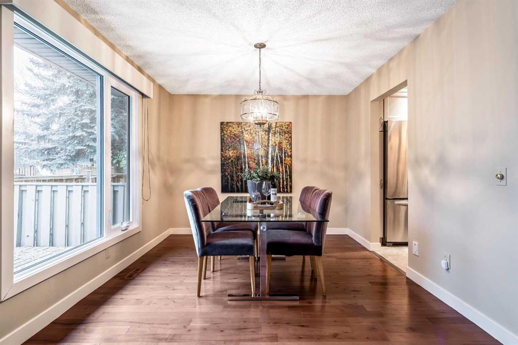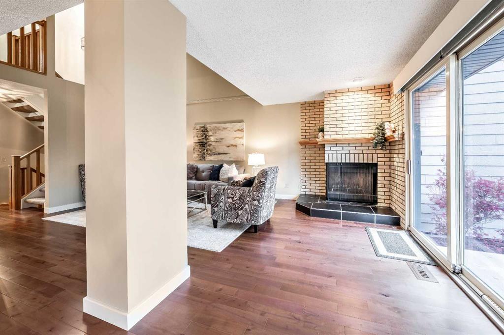 This beautiful home is only steps from Fish Creek Park. Upon entering, you’ll be greeted by a corner wood burning fireplace that adds warmth and character to the living area. The gleaming hardwood floors throughout create a seamless flow and add an elegant touch. The formal dining room provides ample space for entertaining guests or enjoying family meals. The kitchen is a chef’s dream, featuring stainless steel appliances, granite countertops, and large gourmet custom kitchen cabinets. It offers plenty of storage and workspace for all your culinary adventures. The primary bedroom is generously sized and boasts a full ensuite bathroom, providing a private retreat at the end of the day. The triple pane vinyl windows ensure energy efficiency and sound insulation, creating a peaceful atmosphere. Note: Complex has numerous recent upgrades that include asphalt shingles, composite siding, soft metals & road paving. High efficient furnace, water softener, double attached heated garage with driveway parking. Pets are allowed with board approval & monthly condo fee of $575. Step outside to the west-facing backyard with an oversized deck, perfect for enjoying sunny afternoons or hosting barbecues with friends and family. Located in a desirable neighborhood, this townhouse offers easy access to amenities such as schools, parks, shopping centers, Fish Creek Park, and transportation routes. Don’t miss out on this opportunity to own a fabulous property that combines comfort, style, and convenience!