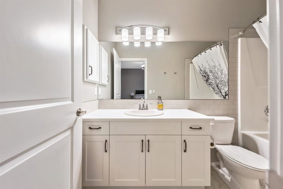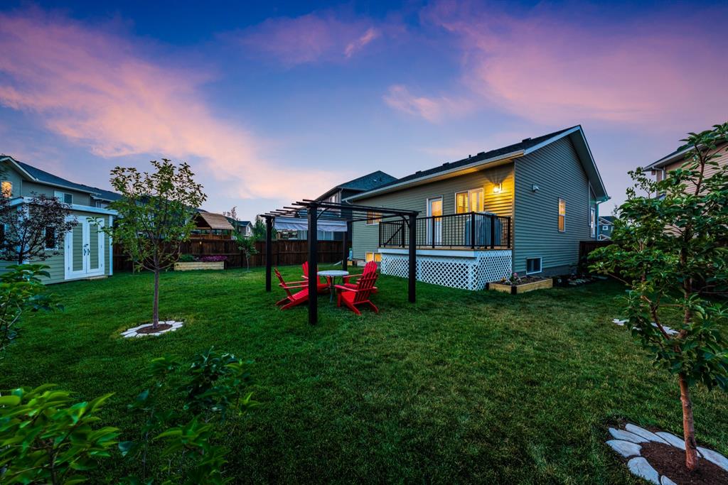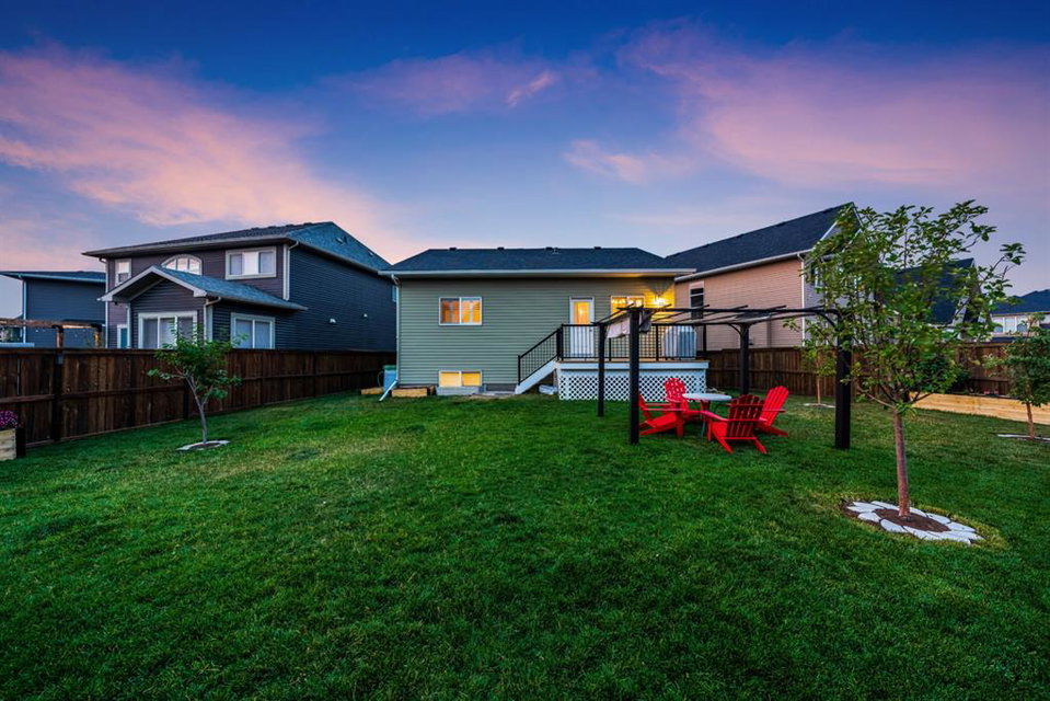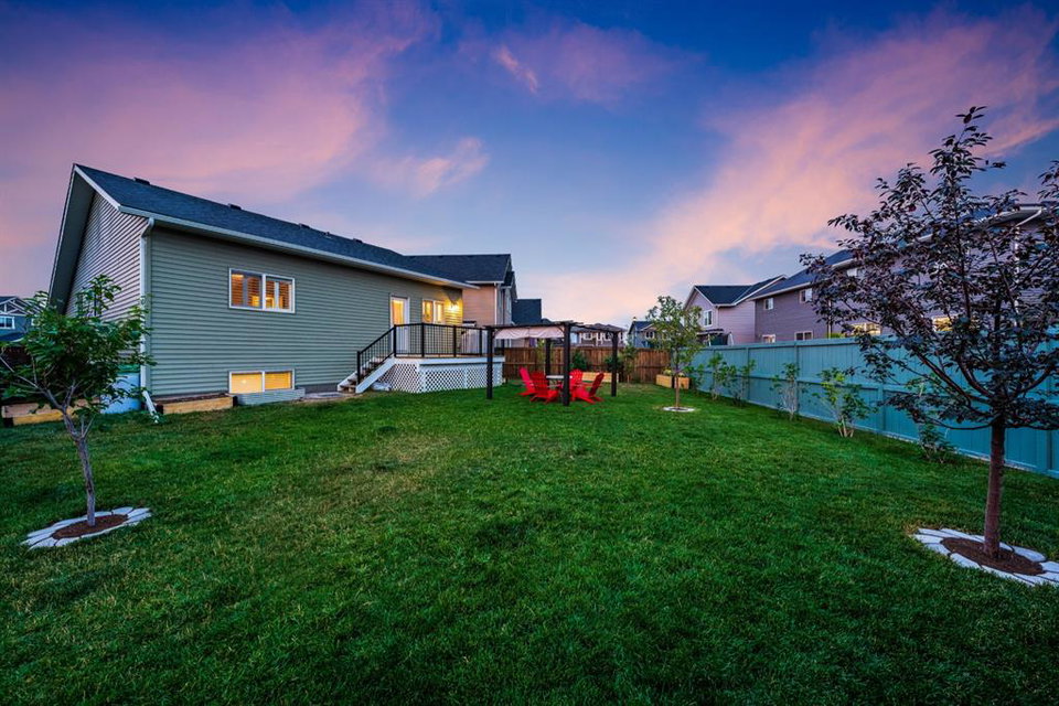 This gorgeous & stylish bi-level is situated in the beautiful community of Bayside. The home features a spacious and open main floor that is perfect for entertaining. The kitchen has quartz counter tops, stainless steel appliances, tons of counter space, large dining area, and abundance of natural light. The massive sunny south pie shaped yard has lots of fruit trees, lilacs, hydrangeas and comes with its own pergola. The bright primary suite also faces south and has a well sized ensuite bathroom and large closet. The two additional rooms are laid out to allow for minimal sound transfer and has access to the second full bath that completes the main level. Downstairs you will find a giant family room with corner fireplace, the perfect spot for friends & family to enjoy time together. Also you will find plenty of space to turn this home into a 5 bedroom home with a third bathroom. Lots of storage and laundry space round out the basement. Excellent cul-du-sac location and curb appeal. Fantastic opportunity to get into a great home in a special location!