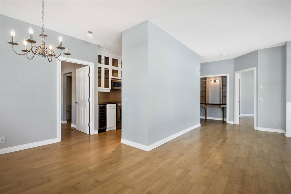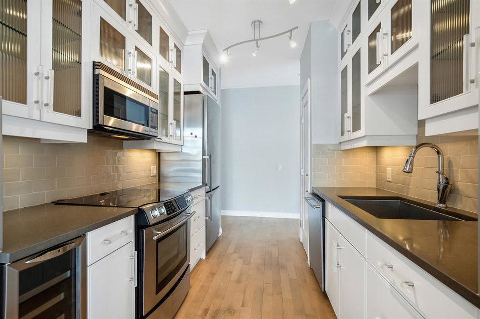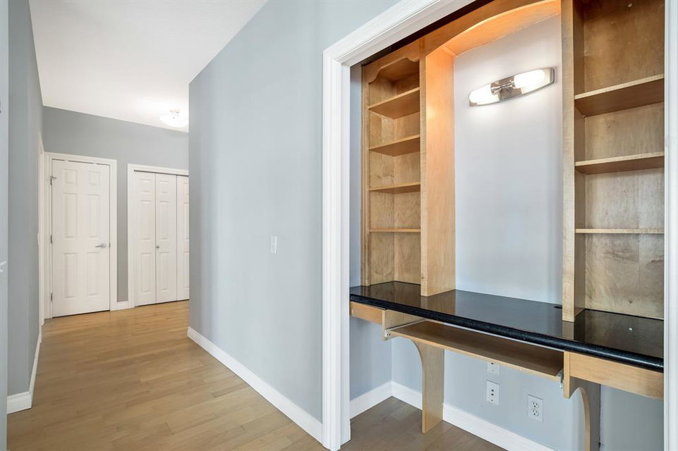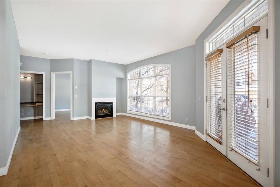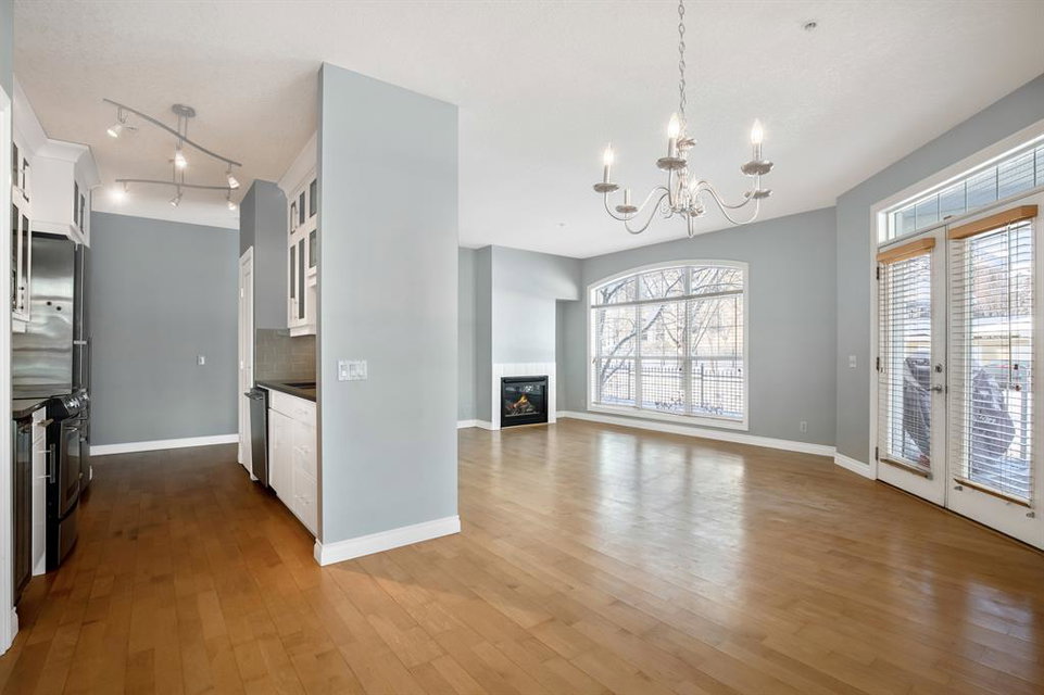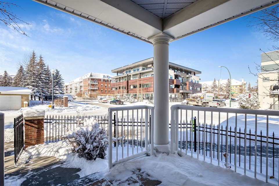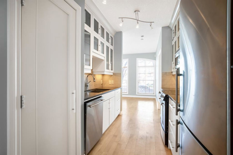 Gorgeous two bedroom & two bathroom unit has one of the best locations in this highly exclusive building – Courtyards of Garrison. The adult only (18+) complex is a short walking distance from all of the wonderful conveniences that this highly sought after neighborhood provides. The home is perfect for day-to-day living, yet equally suited to entertain family and friends. Enjoy the fabulous kitchen which offers quartz countertops, timeless white cabinetry, stainless steel appliances with wine fridge, and a spacious pantry. The open floorplan offers seamless interaction between the kitchen, adjacent great room, and the spacious dinning area. The generous great room is the perfect setting to enjoy the mid and late day sun, or later in the day enjoy the cozy fireplace for evenings cuddled up by the fire. Your accessible balcony provides the ideal place to soak up the late day sun or enjoy BBQing with the conveniently built-in gas line. The primary bedroom is a perfect sanctuary, it features two closets and a private ensuite bath. This home comes complete with an underground parking spot, additional street parking is right out your front steps, extra storage in the assigned locker room, in-suite laundry, and a home office nook. The building offers excellent features and amenities, including a well-appointed gym and pool for your daily fitness routine and a beautifully furnished social area. Perfectly situated, this executive condo is just steps to all the amenities, shopping, and restaurants in Marda Loop.