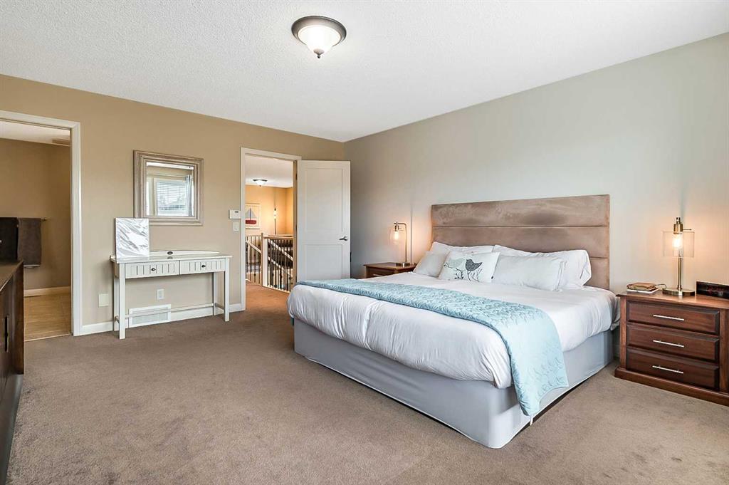 Welcome to your dream home! A stunning residence nestled in the vibrant heart of Calgary’s Auburn Bay, a sought-after lake community. This charming four-bedroom, three-and-a-half-bathroom house boasts 2,180 square feet of contemporary living space that promises comfort and style. Step inside and be greeted by a grand entrance featuring a soaring vaulted ceiling and gleaming hardwood floors that lead you through a thoughtfully designed open concept floor plan. The main floor shines with 9-foot ceilings and an abundance of natural light. Entertaining is a breeze in the spacious living room, complete with a cozy gas-burning fireplace for those chilly evenings. The chef’s kitchen is an absolute delight, equipped with sleek granite countertops, modern stainless-steel appliances, island area and a convenient walk-through pantry. Adjacent to the kitchen, the large dining area is perfect for family gatherings. Upstairs, indulge in the luxury of a grand primary suite with a spa-like 5pc ensuite and a walk-in closet. Two additional oversized bedrooms share a well-appointed 5pc bathroom, and a bonus room offers flexible space for relaxation or entertainment. The fully finished basement expands your living space with a fourth bedroom, a large family room with a bar area for hosting, den, storage area and 3pc bathroom. Outdoor living is equally impressive with a beautifully landscaped, fully fenced backyard featuring a two-tiered deck ideal for barbecues and outdoor activities. Living in Auburn Bay means enjoying access to a year-round lake, off-leash dog park, and a plethora of local amenities including a hospital, YMCA, and an array of shops, restaurants, and entertainment options. Schools, parks, and transit options are just a stone’s throw away, ensuring convenience and connectivity. This beautiful home, showing immense pride of ownership, is more than just a place to live—it’s a lifestyle. Ready to move in and create lasting memories!