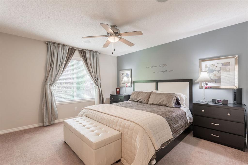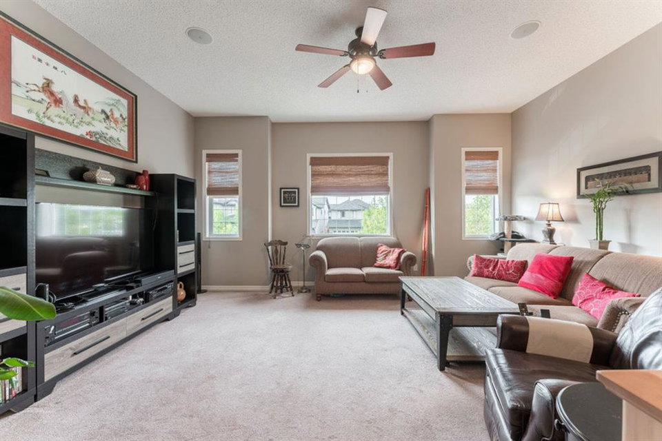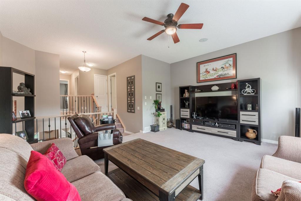Looking for the perfect place to call home, at an affordable price? First time offered on the market, this detached two story home boasts over 2560 sq ft. Highlights of this home include an open layout, an abundance of windows for natural light, large kitchen w/ maple cabinets, island and black appliances, gas fireplace w/ tile surround, built in speakers throughout, hardwood flooring throughout main level, maple/wrought iron railing and neutral color palette. Upstairs features a spacious bonus room, 3 bedrooms, including master w/ large 4 pc ensuite (corner soaker tub) and walk-in closet. Fully finished basement w/ fourth bedroom, as well as large rec room. Beautiful low maintenance, landscaped, South facing backyard with oversized 2 level deck and custom shed w/ stone accents to match home. On a hot summer night take advantage of the A/C!! Conveniently located near schools, shopping and transportation.