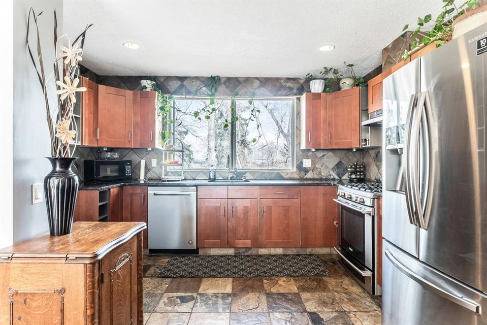 Welcome home to 10744 Mapleshire Cres! This 1350sqft bungalow backs onto Maple Ridge Golf Course and located on one of the nicest streets in Maple Ridge. Home features open concept floorplan, gleaming original hardwood floor, bright & spacious kitchen enjoys gas burning stove, stainless steel appliances, extra cabinets, center island with breakfast bar and dining area. Three generous sized bedrooms with a 2pc ensuite, dual closets off the primary bedroom and 4pc bath to complete this level. Basement is fully finished that boasts a massive rec/games room, hobby room, storage and laundry/utility room. Stunning private views from the backyard, plenty of room for the kids to play with mature trees and landscaping. Note: Single attached garage, newer asphalt shingles and oversized lot (72 frontage x 109’ depth). Family friendly neighborhood includes schools, hockey rinks, active community center, mins to Southcenter Mall & Deerfoot Trail. Excellent opportunity to renovated and make this a “forever” home!