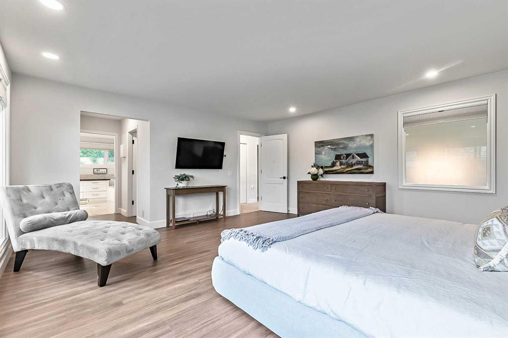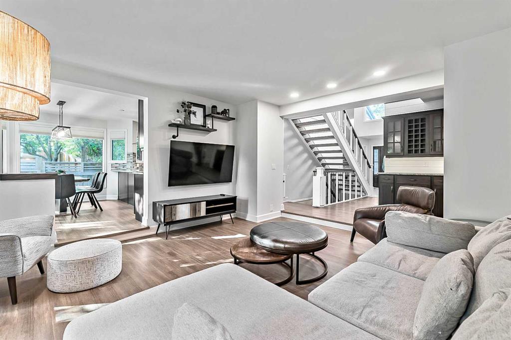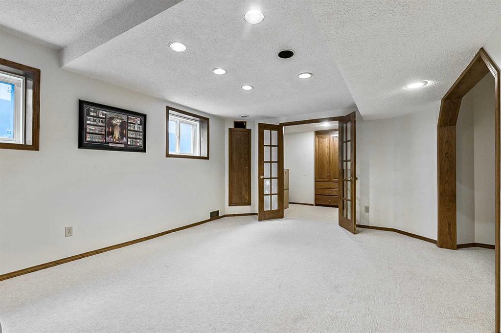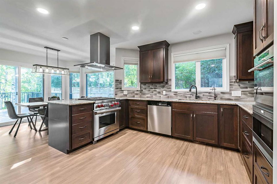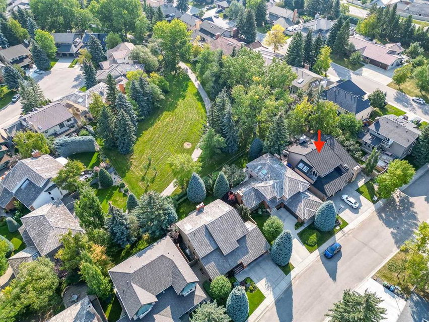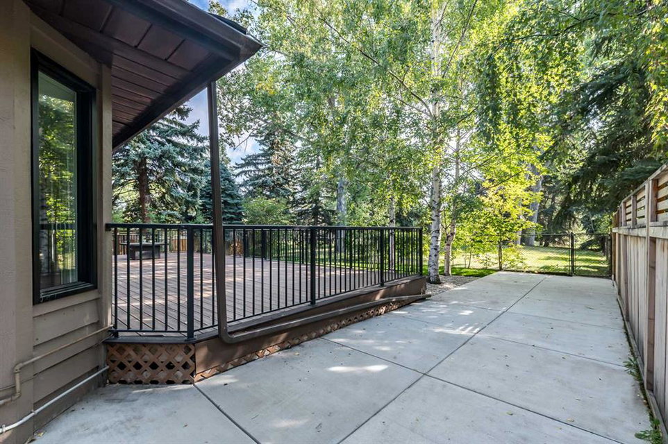 Beautifully updated home backing onto a private park! Discover unparalleled sophistication in this magnificent renovated residence, masterfully positioned on one of the community’s most coveted streets and backing onto tranquil parkland. This exceptional property presents over 4,700 square feet of meticulously crafted living space, featuring seven bedrooms and four bathrooms across multiple thoughtfully designed levels. Upon entry, soaring vaulted ceilings and an elegant open riser staircase create an atmosphere of grandeur. The formal living and dining areas provide gracious entertaining spaces, complemented by dual fireplaces including a gas feature and a classic wood-burning hearth that infuses the secondary living area with warmth and character. The gourmet kitchen showcases premium stainless steel appliances including Wolf gas range, steam convection oven, microwave, Sub-Zero refrigerator with cooling drawers, beverage center, and Miele dishwasher. Granite countertops and abundant storage complete this culinary sanctuary, flowing seamlessly to an expansive deck overlooking professionally landscaped grounds. The main level accommodates a versatile bedroom with adjacent three-piece bathroom, plus convenient laundry facilities and mudroom connecting to the oversized attached garage. The upper level houses the luxurious primary bedroom featuring dual closets and a spa-inspired five-piece ensuite with heated floors, jetted tub, and steam shower. Three additional generously proportioned bedrooms share a renovated four-piece bathroom. The fully developed basement offers two bedrooms, recreational space, office, and fourth bathroom. Premium mechanical systems include dual furnaces, hot water tanks, Kinetico water softener & reverse osmosis systems, and dual central air conditioning. Exterior improvements feature rubber roofing and concrete work, while windows were also updated within the past decade. This home’s prime location puts you within walking distance to schools of all levels, fitness facilities, tennis courts, LRT, public transportation, all your amenities, and the natural beauty of Fish Creek Park and the prestigious Canyon Meadows Golf & Country Club!