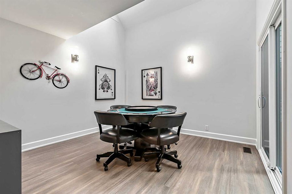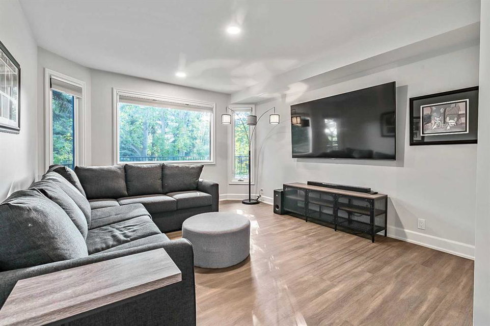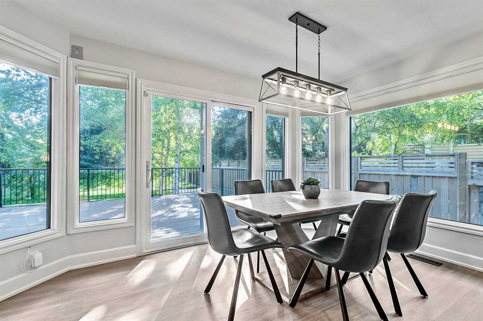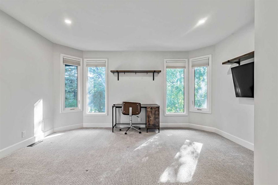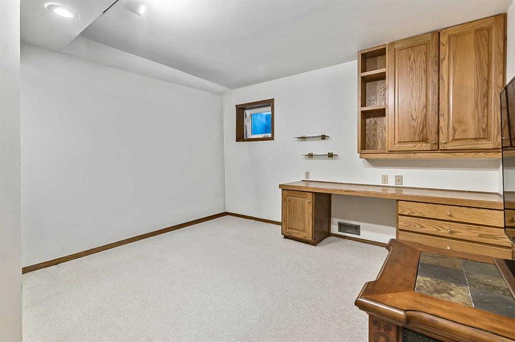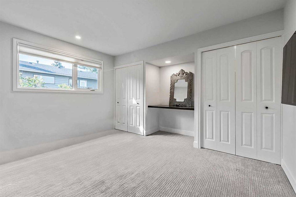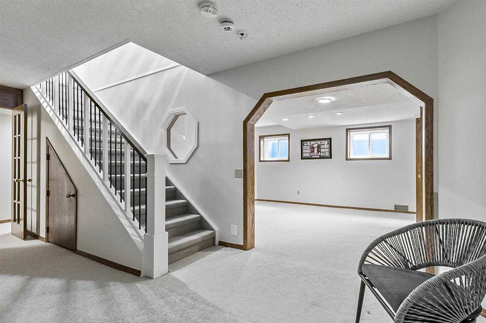Beautifully updated home backing onto a private park! Discover unparalleled sophistication in this magnificent renovated residence, masterfully positioned on one of the community’s most coveted streets and backing onto tranquil parkland. This exceptional property presents over 4,700 square feet of meticulously crafted living space, featuring seven bedrooms and four bathrooms across multiple thoughtfully designed levels. Upon entry, soaring vaulted ceilings and an elegant open riser staircase create an atmosphere of grandeur. The formal living and dining areas provide gracious entertaining spaces, complemented by dual fireplaces including a gas feature and a classic wood-burning hearth that infuses the secondary living area with warmth and character. The gourmet kitchen showcases premium stainless steel appliances including Wolf gas range, steam convection oven, microwave, Sub-Zero refrigerator with cooling drawers, beverage center, and Miele dishwasher. Granite countertops and abundant storage complete this culinary sanctuary, flowing seamlessly to an expansive deck overlooking professionally landscaped grounds. The main level accommodates a versatile bedroom with adjacent three-piece bathroom, plus convenient laundry facilities and mudroom connecting to the oversized attached garage. The upper level houses the luxurious primary bedroom featuring dual closets and a spa-inspired five-piece ensuite with heated floors, jetted tub, and steam shower. Three additional generously proportioned bedrooms share a renovated four-piece bathroom. The fully developed basement offers two bedrooms, recreational space, office, and fourth bathroom. Premium mechanical systems include dual furnaces, hot water tanks, Kinetico water softener & reverse osmosis systems, and dual central air conditioning. Exterior improvements feature rubber roofing and concrete work, while windows were also updated within the past decade. This home’s prime location puts you within walking distance to schools of all levels, fitness facilities, tennis courts, LRT, public transportation, all your amenities, and the natural beauty of Fish Creek Park and the prestigious Canyon Meadows Golf & Country Club!