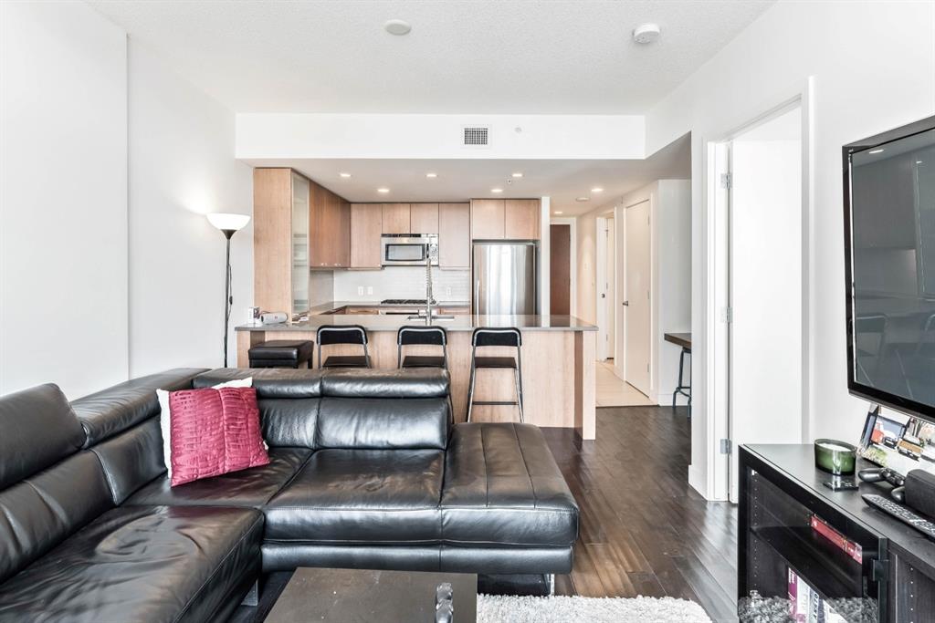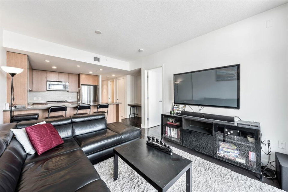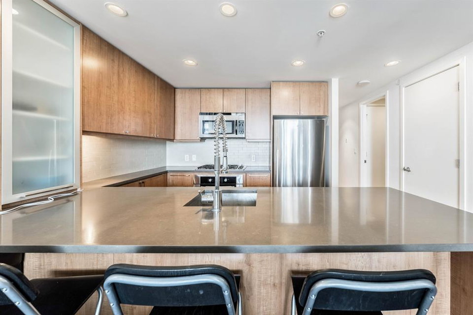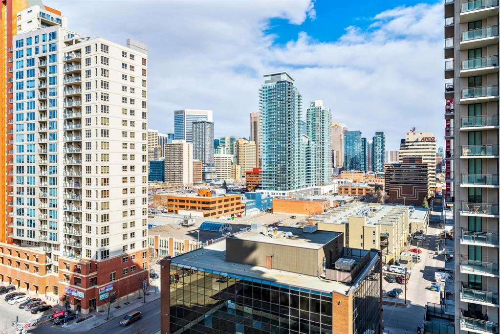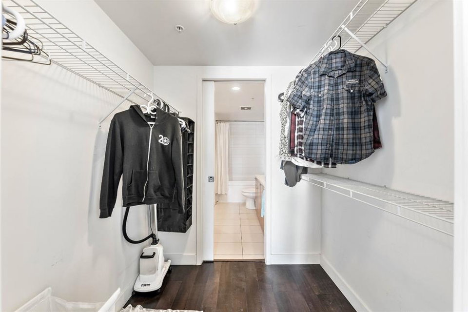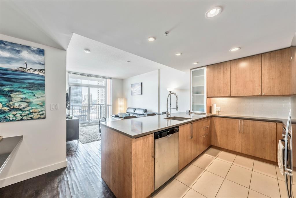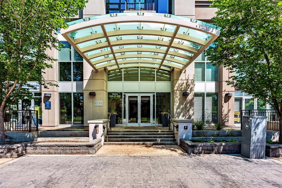 Modern vibes throughout this well maintained his North facing 1 bedroom condo in the Nova! Seamless gourmet kitchen with undermount lighting, quartz counters, gas cooktop, convection oven, garburator and full height cabinets offering plenty of storage. Overlooking the spacious living area and balcony with river views. Convenient office nook as well, great for those working from home! King size bedroom with tons of natural light with full length windows, his & her walk-through closet with newly installed storage solutions. The spacious 4 piece cheater ensuite offers a soaker tub, an extra long vanity and convenient in-suit laundry. There is in-suite storage area that could be used as a den. The Nova offers a variety of amenities including a fully equipped fitness room, steam rooms with private change rooms and showers, lounge with wet bar, fireplace and courtyard. It also offers guest suites that are available to rent, which is perfect for out of town guests. Incredible location in heart of downtown and walking distance to shops, cafes, restaurants and just a few minutes walk to 17th Ave! Book your private viewing today!