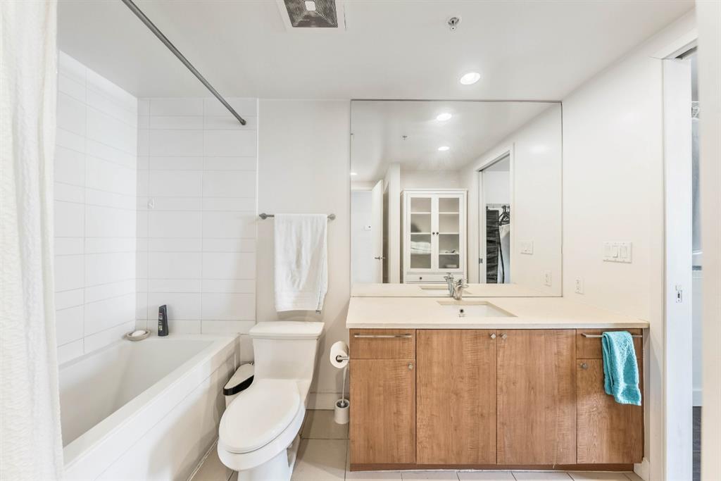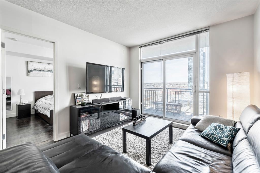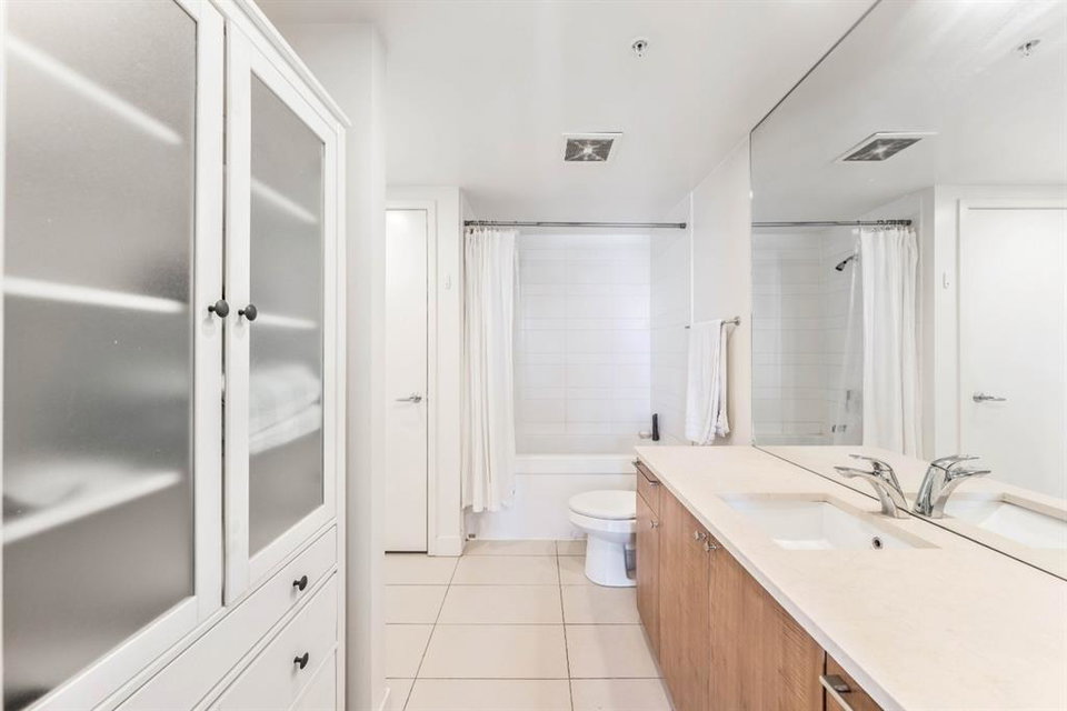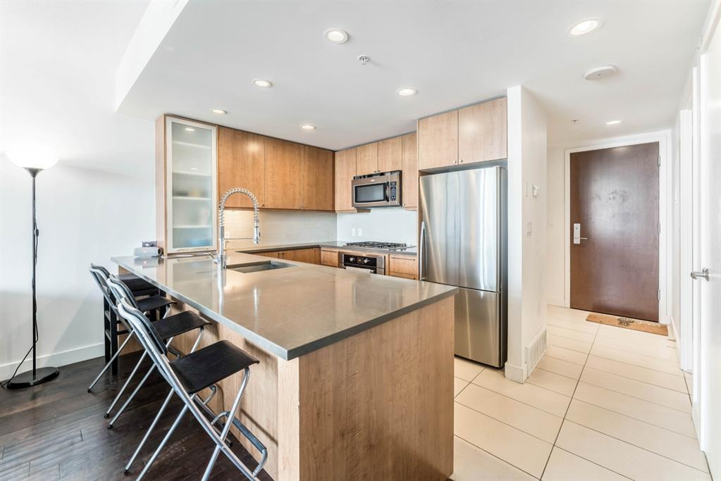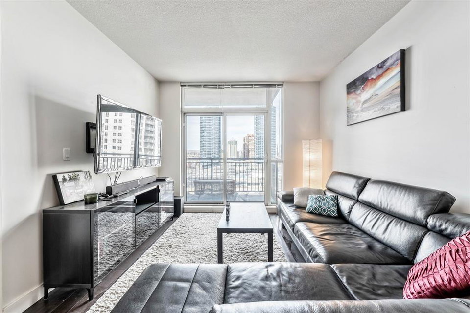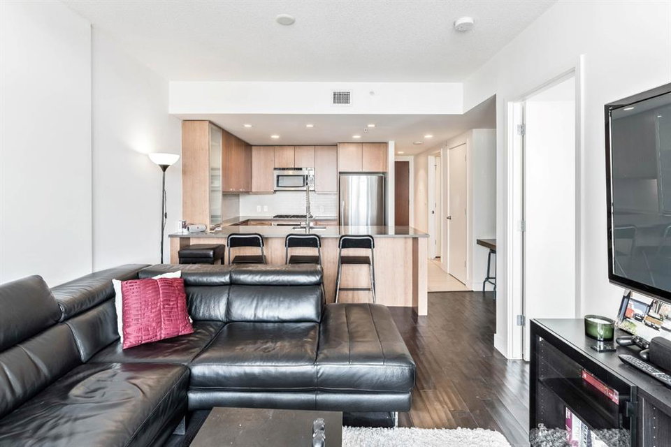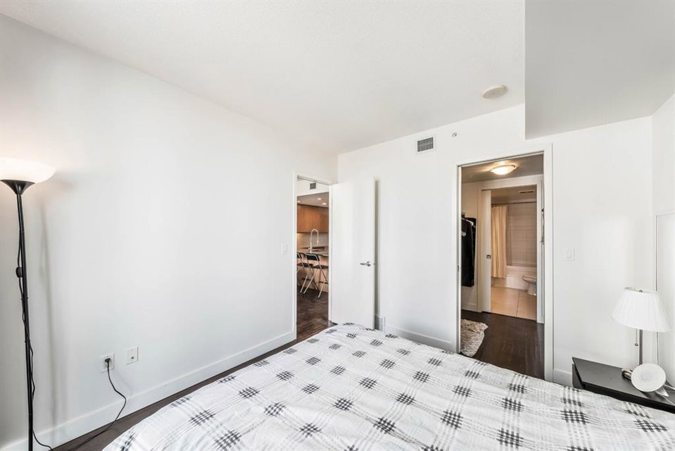 Modern vibes throughout this well maintained his North facing 1 bedroom condo in the Nova! Seamless gourmet kitchen with undermount lighting, quartz counters, gas cooktop, convection oven, garburator and full height cabinets offering plenty of storage. Overlooking the spacious living area and balcony with river views. Convenient office nook as well, great for those working from home! King size bedroom with tons of natural light with full length windows, his & her walk-through closet with newly installed storage solutions. The spacious 4 piece cheater ensuite offers a soaker tub, an extra long vanity and convenient in-suit laundry. There is in-suite storage area that could be used as a den. The Nova offers a variety of amenities including a fully equipped fitness room, steam rooms with private change rooms and showers, lounge with wet bar, fireplace and courtyard. It also offers guest suites that are available to rent, which is perfect for out of town guests. Incredible location in heart of downtown and walking distance to shops, cafes, restaurants and just a few minutes walk to 17th Ave! Book your private viewing today!