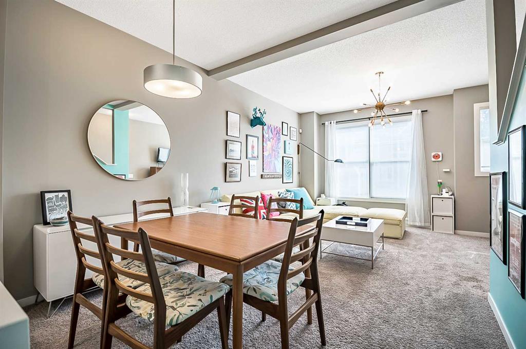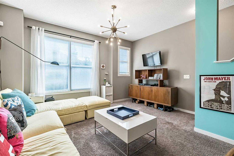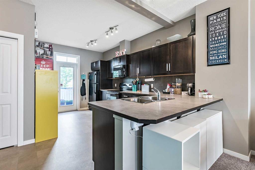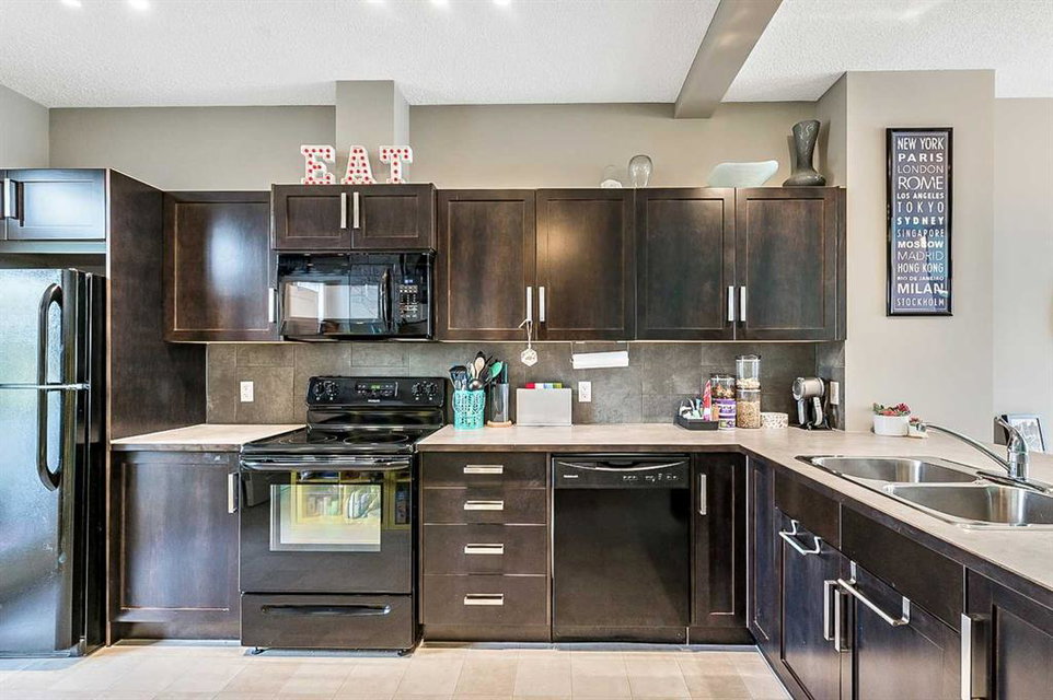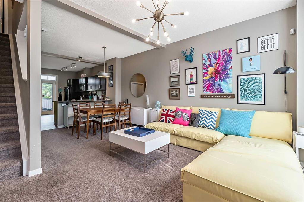 Beautiful modern and inviting two-bedroom townhouse nestled in the vibrant community of New Brighton. This fabulous home presents a chic, two-bedroom unit that is perfect for first-time buyers, downsizing, or as a savvy investment. This townhouse boasts an open concept floor plan filled with abundant natural light. Soaring 9-foot ceilings on the main floor enhance the spacious feel, complementing the large kitchen equipped with black appliances, “Shelf Genie” cupboard organizers and an inviting island – ideal for hosting and daily function. Each bedroom is designed as a primary suite, complete with its own private bathroom, ensuring privacy and convenience. Added household efficiency comes from the upstairs laundry facilities. The west-facing rear deck, equipped with a barbecue gas hook-up, offers a perfect outdoor retreat for relaxation or entertaining friends and family. Not only is the interior welcoming, but the location is also exceptional. Positioned near the upcoming C-Train Green Line, New Brighton Athletic Park, and major shopping destinations at South Trail Crossing, this home ensures ease of access to essential amenities. The local community center offers exclusive access to a variety of recreational and social activities year-round. The attached tandem garage and central air conditioning cater to both your storage and comfort needs. Whether you’re starting out, scaling down, or investing, this townhouse offers a blend of lifestyle and convenience that’s hard to beat!