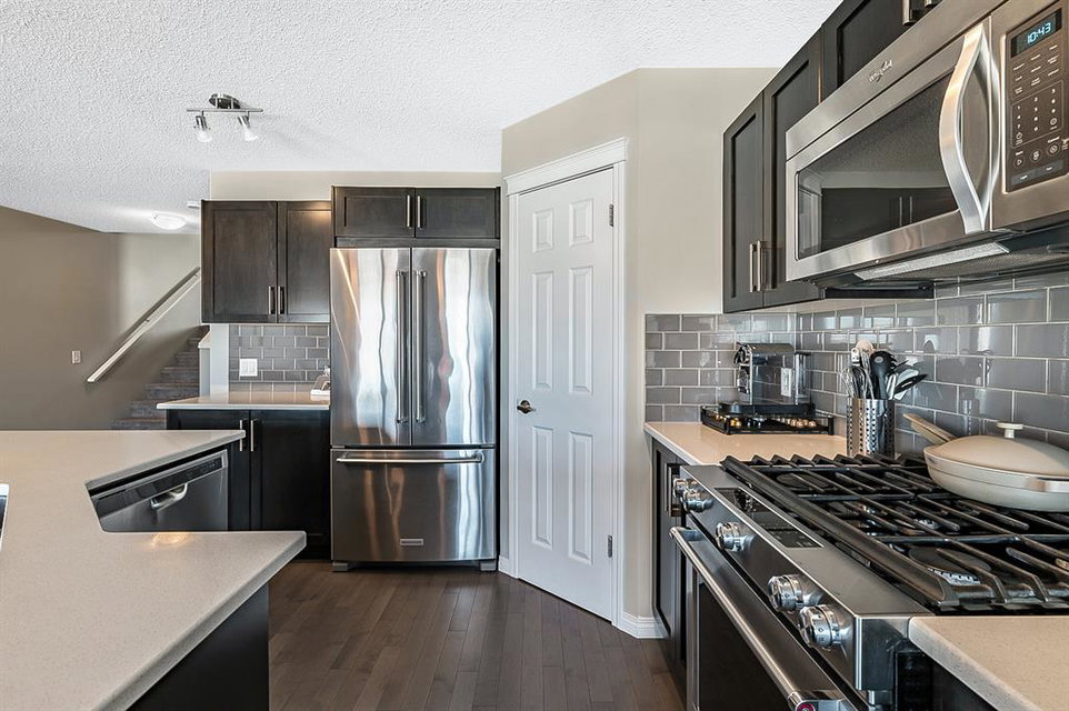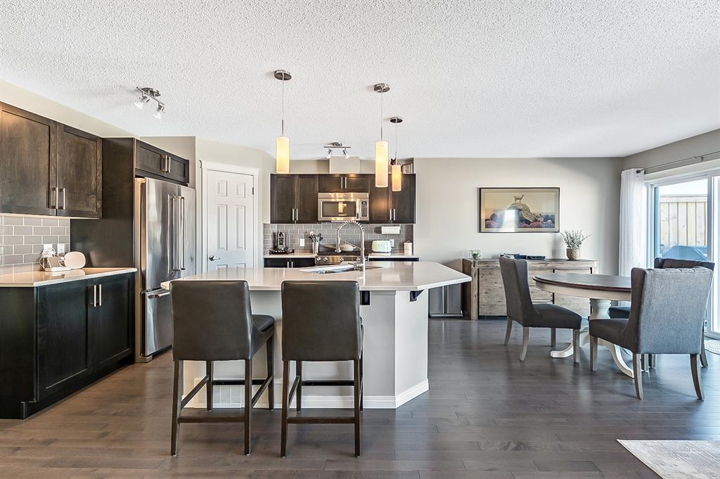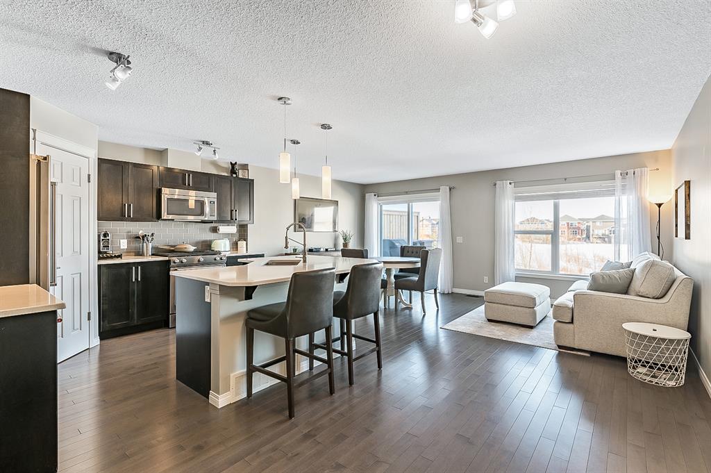 Back On The Market ….Anything else is a COMPROMISE! Beautiful “Walk-Out” four level split, located in desirable Auburn Bay, backing onto pond, greenspace and walking paths. Main floor features gleaming hardwood floors, open concept kitchen boasts stainless steel appliances, gas stove, walk-in pantry, oversized island, quartz counter-tops and trendy backsplash. Large dining area & living room perfect for everyday living with easy access to deck. Upper floors include a huge bonus room (vaulted ceilings), laundry room and three generous sized bedrooms with a full ensuite off the primary bedroom & walk-in closet. Basement is fully finished walkout with oversized windows allowing abundance of natural light, storage area and patio door to west facing backyard. Note: Central air conditioning, fully fenced yard, single attached garage, oversized driveway that accommodate two vehicles and central vac. Walking distance to schools, public transit, dog park, clubhouse, lake, parks, playgrounds, shopping, and trendy restaurants. Quick access to South Campus Hospital, major roadways, YMCA and theatre. Home shows extremely well with pride of ownership!!
