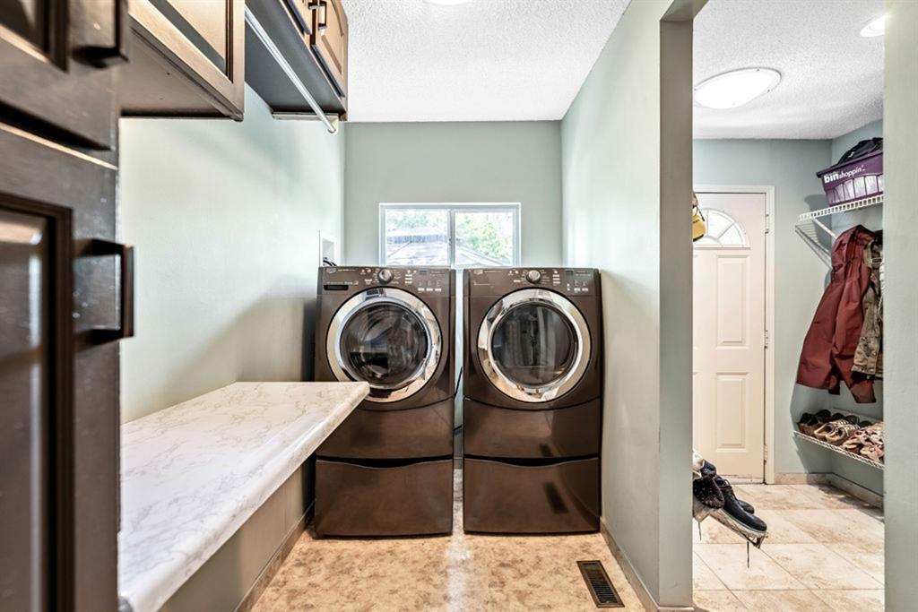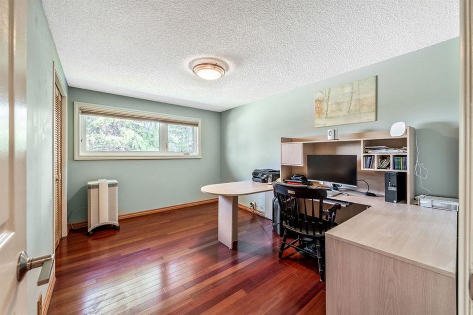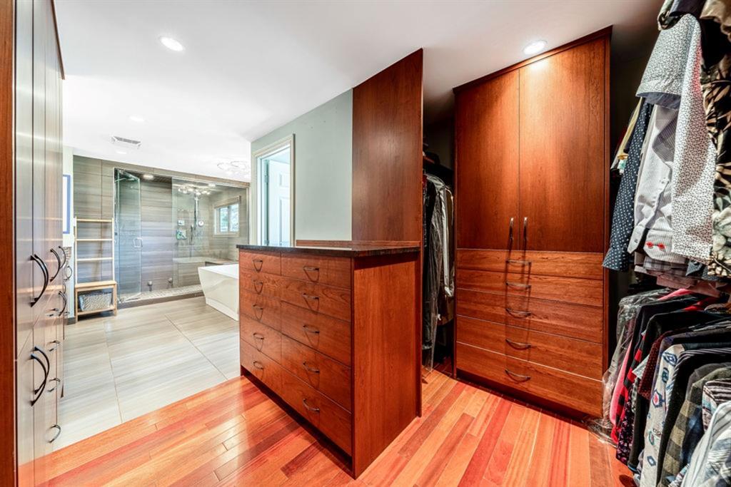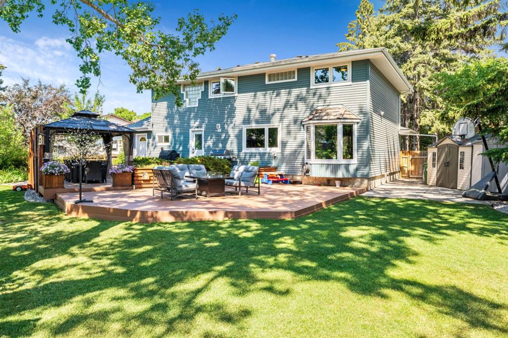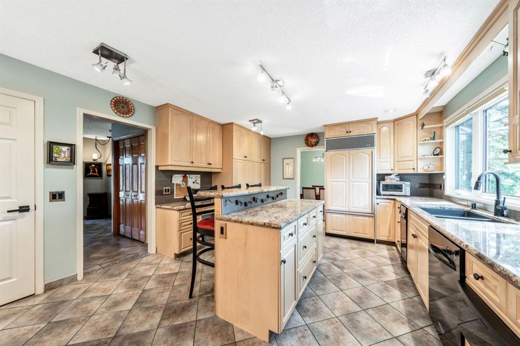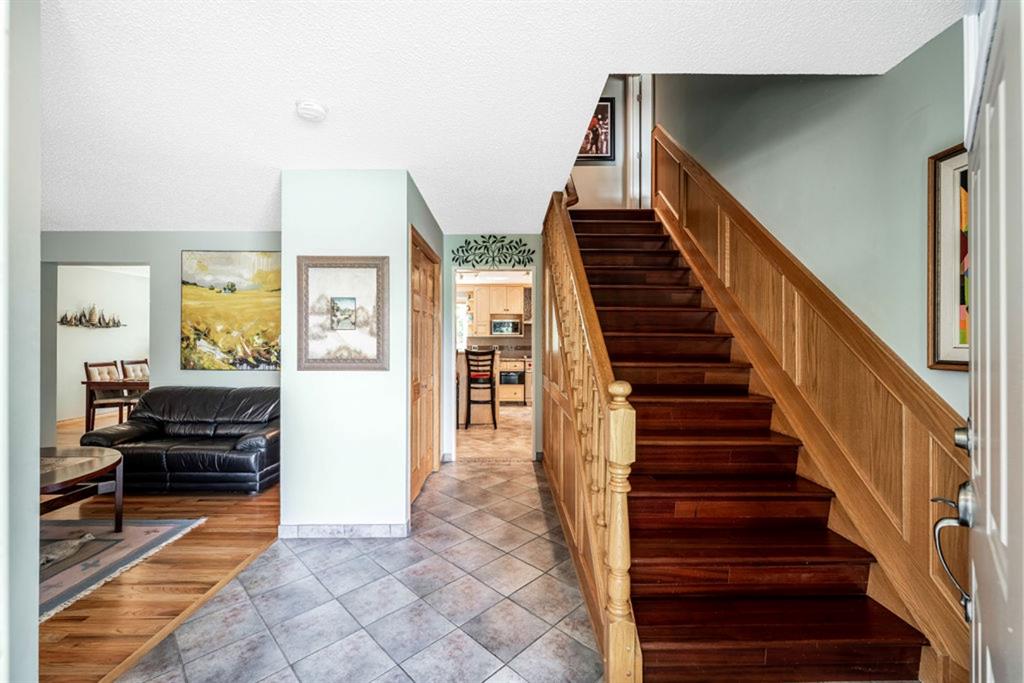 Located in the fabulous community of Canyon Meadows Estates, on a quiet cul-de-sac, this warm and inviting 2 story home shows pride of ownership throughout. With over 3560 sq ft of livable space, this upgraded home has so much to offer! Highlights include the beautiful Brazilian cherry hardwood and tile flooring throughout, neutral colour palette, 2 family rooms, gas fireplace with stone wall surround, breakfast area, as well as separate dining room, an abundance of natural light with newer triple pane windows, main floor laundry and mudroom with entrances to the garage and backyard. The sizeable gourmet kitchen has light maple cabinetry, granite countertops, upgraded appliances w/ Wolf dual fuel oven/cooktop, Sub Zero fridge, Navien water installation, custom tile backsplash, raised eating bar, plenty of storage, a computer station and prime view of the backyard!