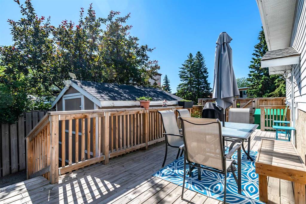 Welcome to this stunning half duplex nestled in the highly sought-after Canyon Meadows neighborhood. This exceptional property offers four spacious bedrooms and two full bathrooms across two thoughtfully designed levels. The main floor showcases a generous kitchen, complemented by a charming breakfast nook for casual dining. The expansive living room features an oversized window that floods the space with natural light and includes attractive custom built-ins for added functionality. Two well-appointed bedrooms and an updated 4pc bathroom complete the upper living space. The finished basement extends your living options with two additional bedrooms, a full 4pc bathroom, convenient laundry facilities, and versatile recreation and games rooms. A practical storage room ensures all your belongings have their place. The outdoor space truly shines with a fully fenced yard featuring an impressive deck ideal for entertaining and relaxation. A storage shed provides additional utility for your outdoor equipment and seasonal items. Location benefits are exceptional in this desirable neighborhood. Families will appreciate the proximity to quality schools at all educational levels. Commuting is effortless with nearby public transit connections and LRT access. Shopping conveniences, recreational facilities including outdoor hockey rinks and tennis courts, the Canyon Meadows fitness center, and the natural beauty of Fish Creek Park are all within comfortable walking distance, making this property perfect for active lifestyles.