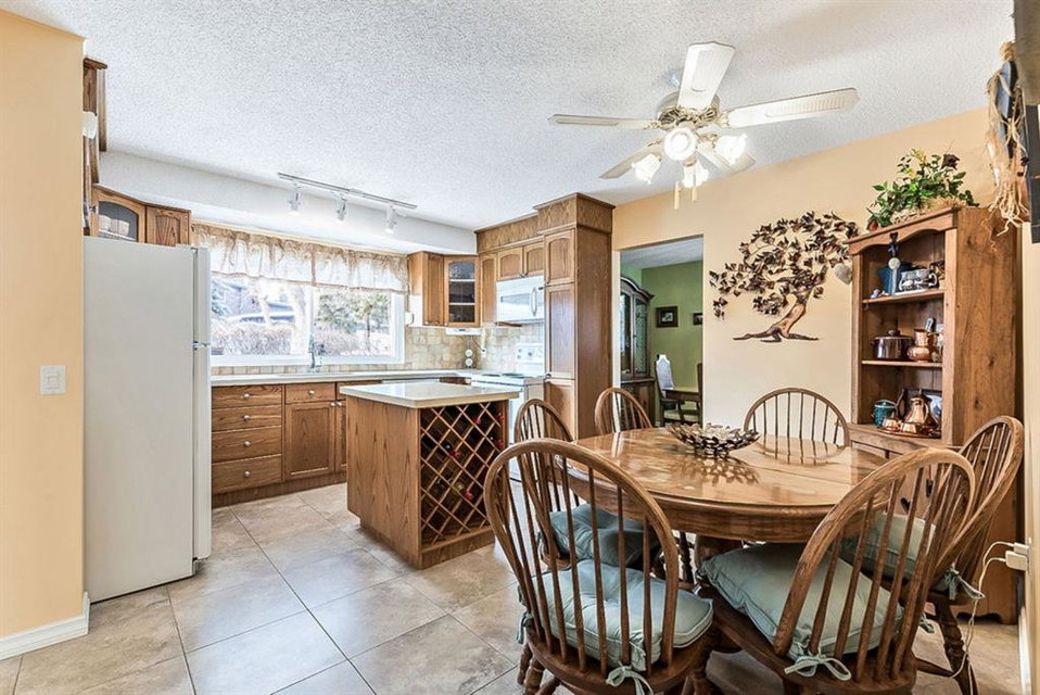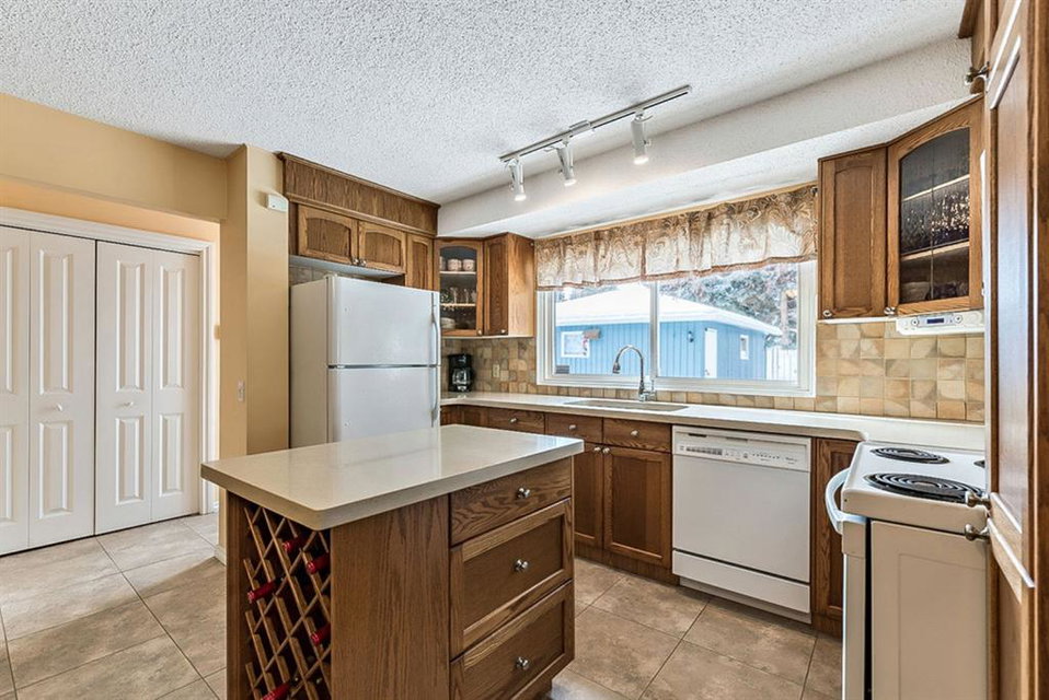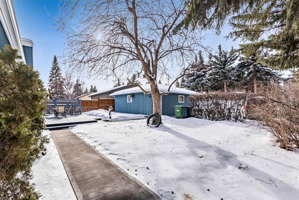 Looking for the perfect place to call home? Here is your chance to live in Canyon Meadows Estates! With over 2175 sq ft of developed living space, this updated 4 level split home shows pride of ownership throughout. Highlights include an oak kitchen with plenty of storage, quartz counters and tile floors, kitchen breakfast nook as well as spacious separate dining room, 4 bedrooms, bright atmosphere with an abundance of newer triple pane windows, wood burning fireplace, newer furnace and hot water tank. Laundry has been moved to the basement, but can easily be moved back to original location on upper level. The exterior features a fresh coat of paint, huge West facing backyard (1235 sq m) with mature trees and a generous sized wood deck, newer concrete work, RV pad and an oversized double detached garage backing onto a wide paved alley. Close to schools, shopping and transit. Take advantage of nearby Canyon Meadows Aquatic/Fitness Center and Fish Creek Park! Non-pet/non-smoking home.