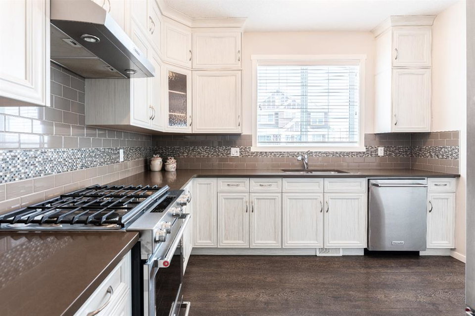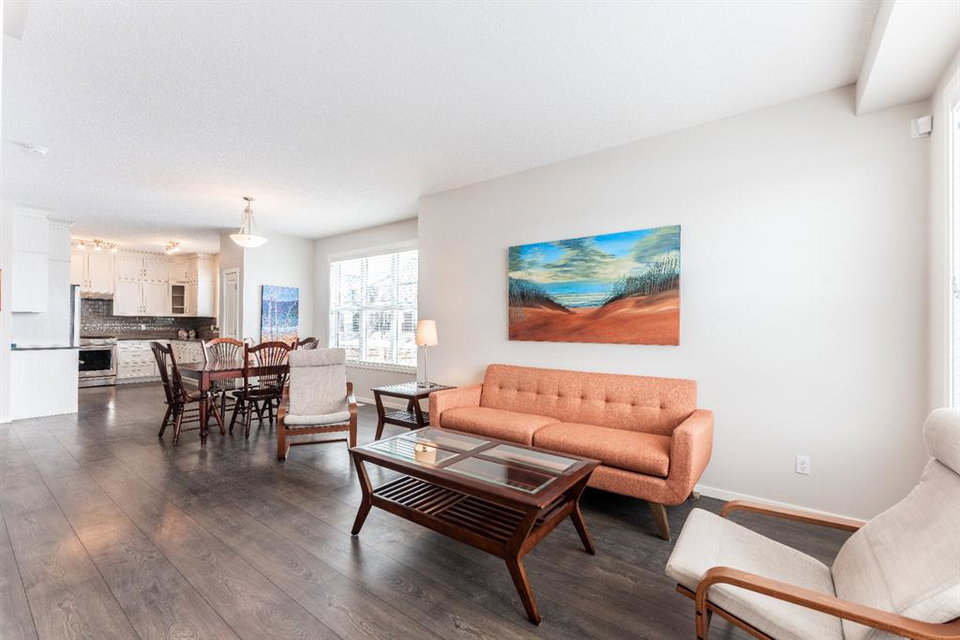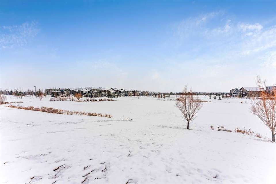 Welcome to this beautifully appointed home built by Avi with NO CONDO FEES! Perfectly situated across the street from a park, walking paths and playground with unobstructed views of the fountain pond! This upgraded home shows like new and offers an open concept living with luxury upgrades such as flooring and quartz counter tops in the kitchen and bathrooms. The main level has a large sunny south living area with pond views, beautiful engineered hardwood plank flooring, raised ceilings, powder room, easy access to the backyard that is fully fenced and features concrete patio and a large oversized double garage (25’x22′). The gorgeous functional kitchen offers plenty of cabinets, stone counter tops, upgraded Kitchen Aid stainless steel appliances (brand new stove), backsplash and full height cabinetry . The upper level master bedroom has a walk-in closet & 3 piece ensuite. You will also find an additional two spacious bedrooms, a full bathroom, and an upstairs laundry that completes this level. Basement is fully developed by the builder and features a fourth bedroom, a third full bathroom and a large rec/family room. Other features of this home include central air conditioning, Kinetico water system, BBQ gas line, massive lot with tons of additional parking. Fantastic opportunity to live in Legacy, voted Calgary’s Community of the Year 2 years in a row! Amazing location and value!