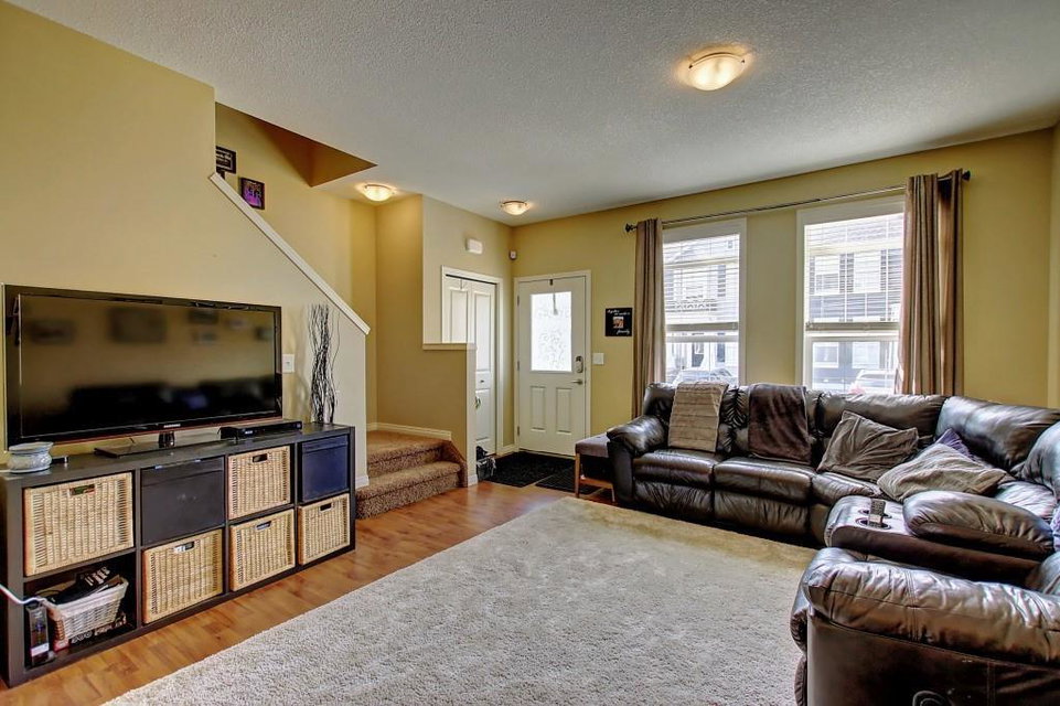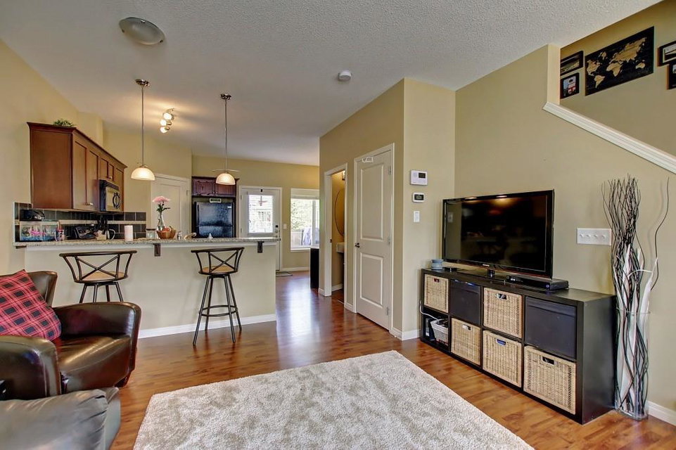 Best priced unit in the complex! This bright 3 bedroom, 1 1/2 bathroom unit is located in the wonderful community of Williamstown. Upon entering you are greeted by a cheery open living room. The main floor features 9 ft ceilings and laminate throughout, with the kitchen boasting dark cabinets, black appliances and a corner pantry. Also on main level are a dining room and breakfast nook, with patio doors leading onto a deck and views of abundant green space. Upstairs you’ll find 3 generous sized bedrooms, with the master having a cheater ensuite 4 pc bath and generous walk-in closet. A playground is just a stone’s throw away for the little ones. Located conveniently near an Environmental Reserve with walking paths, schools and shopping, as well as transportation. Don’t let this unit pass you by!