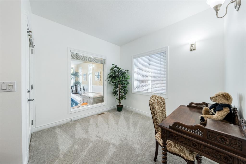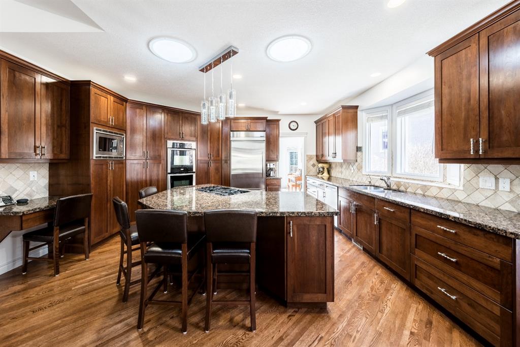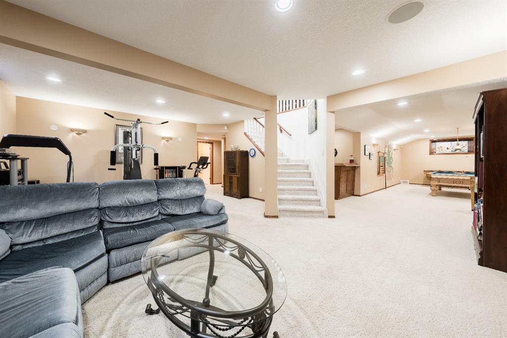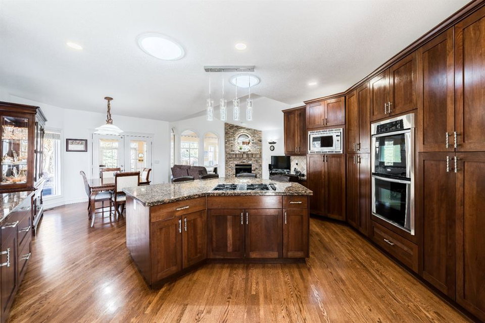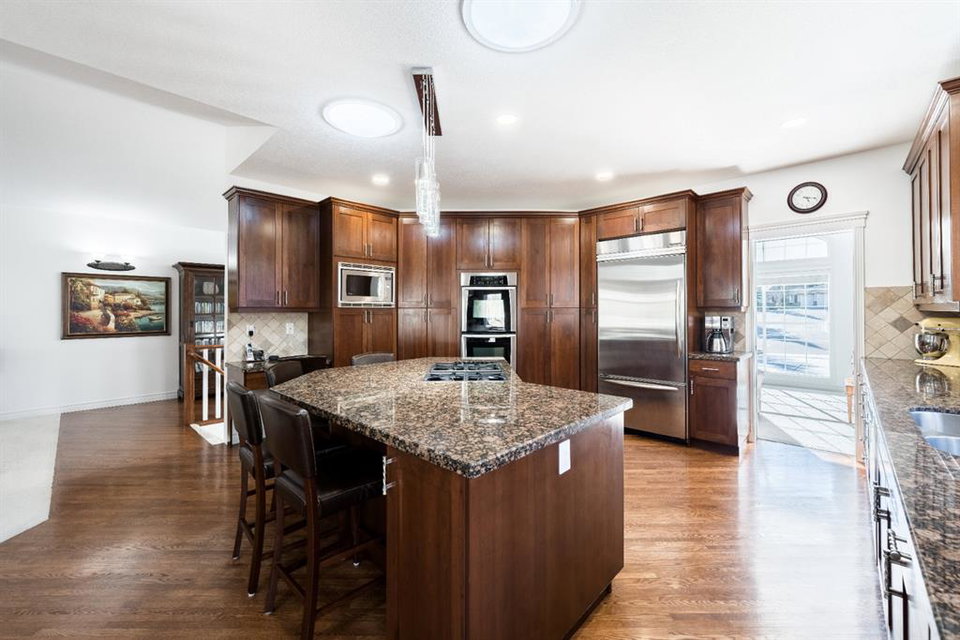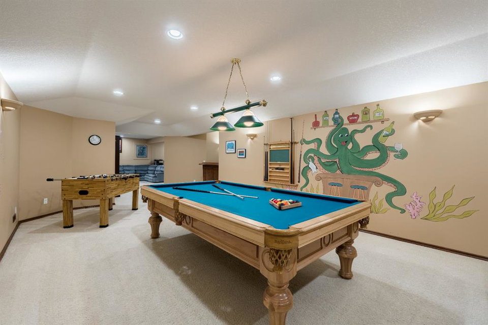 Enjoy your own piece of Paradise in this executive custom-built bungalow featuring a gorgeous “indoor low maintenance salt water pool” and hot tub – ideal for family and friends entertaining. Situated in one of Calgary’s premier communities just steps from Fish Creek Park and the Private Canyon Meadows Golf and Country Club with easy access to downtown and all amenities. This truly is a rare find! Open, bright, modern concept floorplan. Highlights include vaulted ceilings, front sitting room, gourmet kitchen/huge working island/breakfast bar, loads of granite counter tops and custom cupboards, large dining area. Family room has a stunning Old Chicago Brick gas fireplace. French doors open onto an expansive primary bedroom suite/sitting area with 5pc ensuite and walk-in closet. There is a second bedroom with 4pc guest bathroom and large laundry/mudroom equipped with sink, cupboards and closets on the main floor. Professionally developed lower level has a wonderful layout, under slab heated floors, oversized windows. Large open areas featuring TV sitting space with second fireplace, exercise equipment room area, games room that can accommodate a pool table plus other sports tables, wet bar with built-ins – creating a fabulous setting for family living, fun and entertaining. Third massive bedroom and fourth bedroom share a 4pc bathroom, den/office/hobby room, storage room and utility room complete the basement development. The enormous beautifully treed and landscaped yard offers great outdoor living spaces featuring a deck that is the full length of the home and a quiet retreat area with garden swing. Triple attached heated garage with numerous built-ins and extra parking space on a long driveway. Spectacular Home! Spectacular Location! Once in a lifetime Opportunity!