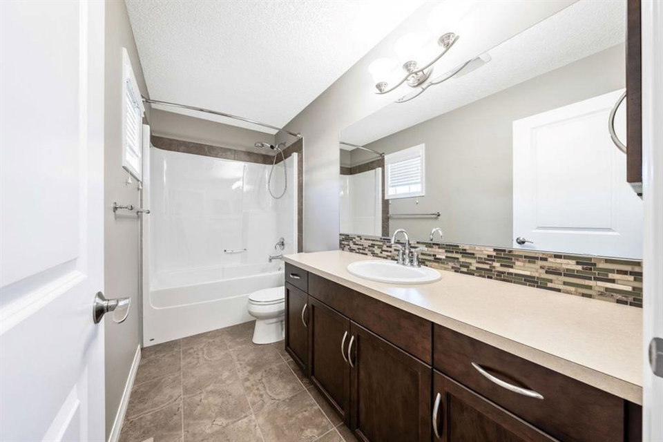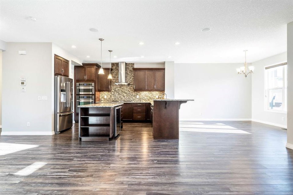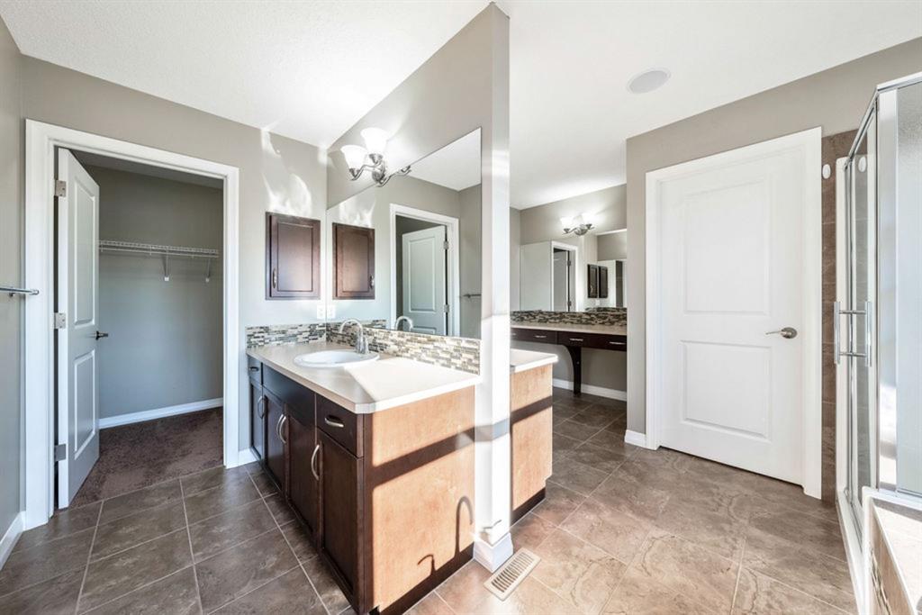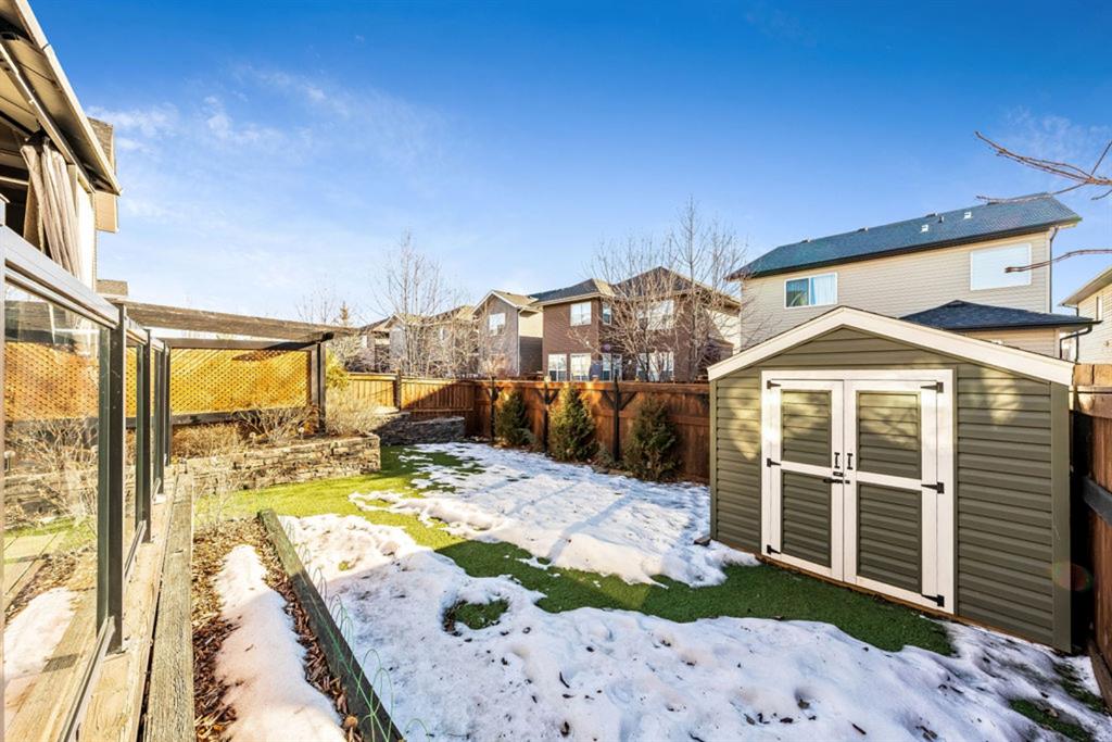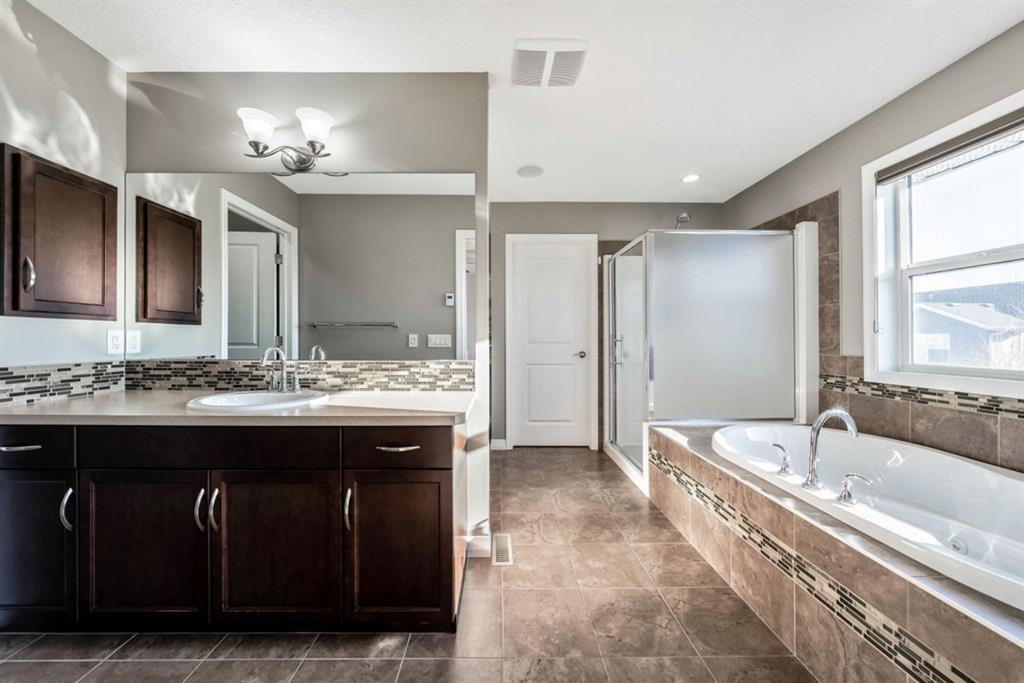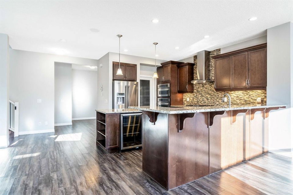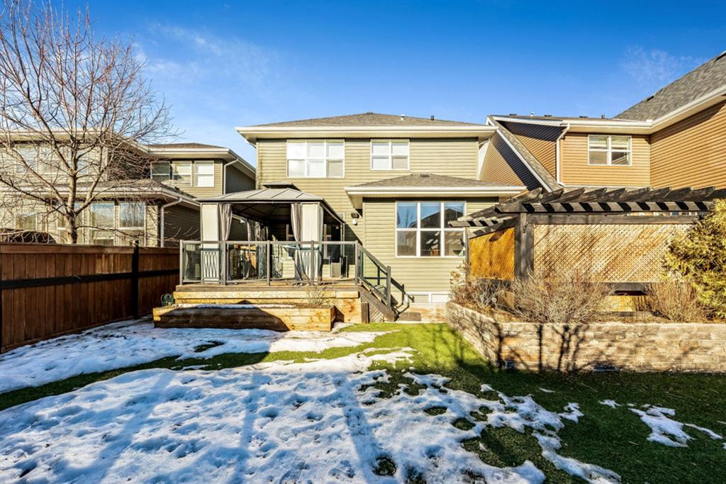 Located in the prestigious community of Auburn Bay, this 2-story Estate home is sure to impress! Highlights of this 3600+ sq ft (developed living space) home include the open concept layout c/w 9′ ceilings on the main, luxury vinyl plank flooring, gas fireplace w/ tile surround and a gourmet kitchen boasting maple cabinetry, granite countertops, eating bar, wine fridge, walk-in pantry and s/s appliances, including a 5 burner gas stove and double oven. Upstairs hosts laundry and 3 large bedrooms, with master featuring a dream 5 pc ensuite w/ heated floors, back-to-back vanities, makeup area, jetted tub and dual his & her walk-in closets! Fully finished basement has 4th bedroom, 3 pc. ensuite with custom oversized tiled shower & 10mil glass and an abundance of storage. Fully landscaped, South facing backyard is accessible by a French door off dining room, leading onto a large wooden deck, surrounded by glass railing, and continuing to the concrete pad/hot tub, under a private pergola. Other great additions are the custom shed, stone planters and low maintenance “artificial grass” yard. Stay cool in the hot summer months with 2 A/C units! Attached oversized double garage, drywalled and insulated, has lots of room AND pre-wiring for an electric vehicle! Enjoy all that this Lake community has to offer!