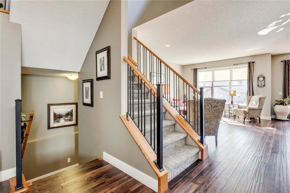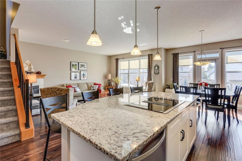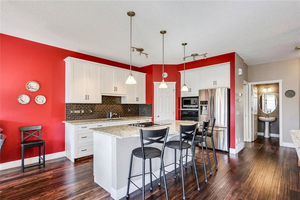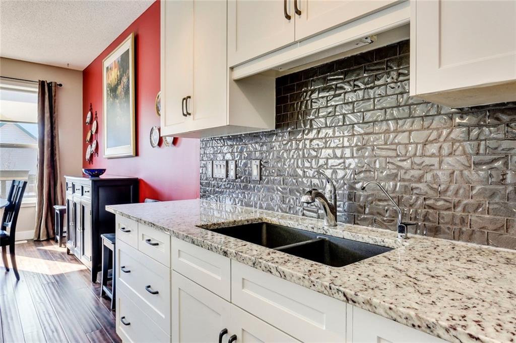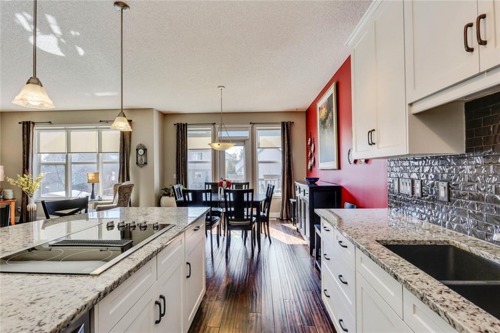 Fantastic family home in an excellent location! This large two storey home has been tastefully updated to include a beautiful open concept white kitchen with granite counter tops, large eating area, walk-in pantry, 9′ ceilings, living room w/ gas fireplace, main floor den, dark rich stressed hardwood, large south facing deck, massive pie shaped lot, beautifully landscaped with loads of trees (including fruit trees), gorgeous stamped concrete with custom fire pit, and a storage shed. The upper level boasts a very functional laundry room, three generous bedrooms – large master bath features a jetted tub, separate shower, granite counters, heated floors, walk-in closet. The fully developed lower level has two additional bedrooms (5 total) – both with large windows, a third full bathroom that also has heated floors, family room with a second gas fireplace, and storage area. Situated in a quiet cove and walking distance to schools & public transit. Shows pride of ownership, a great place to call home.