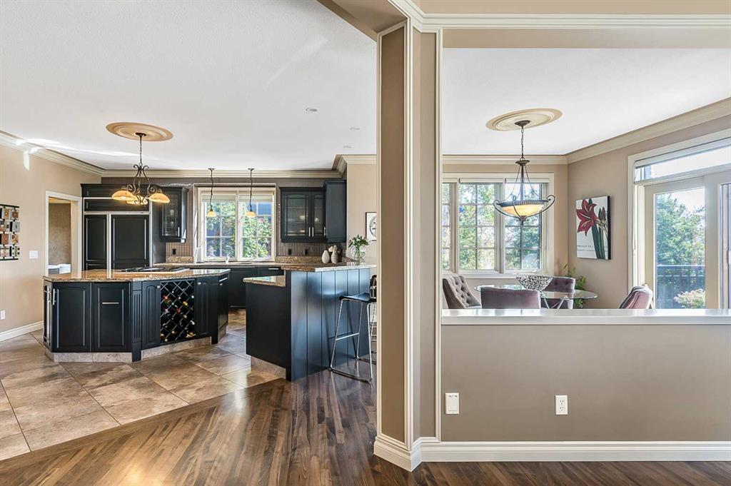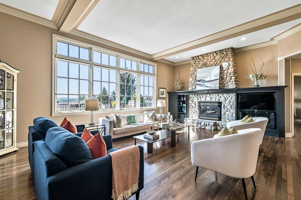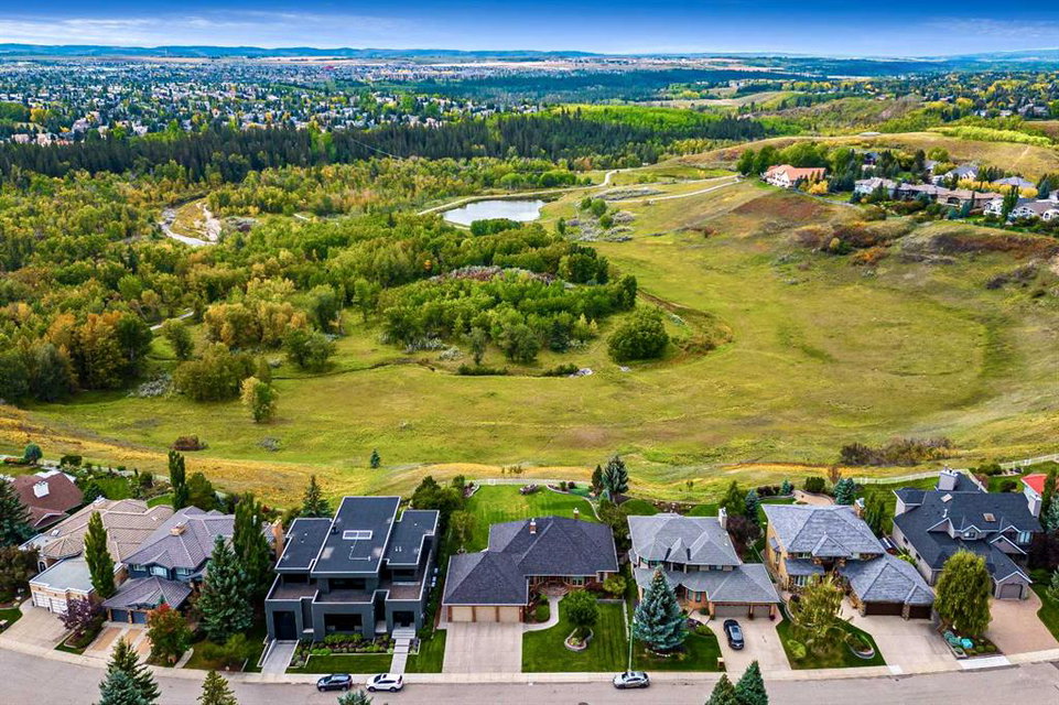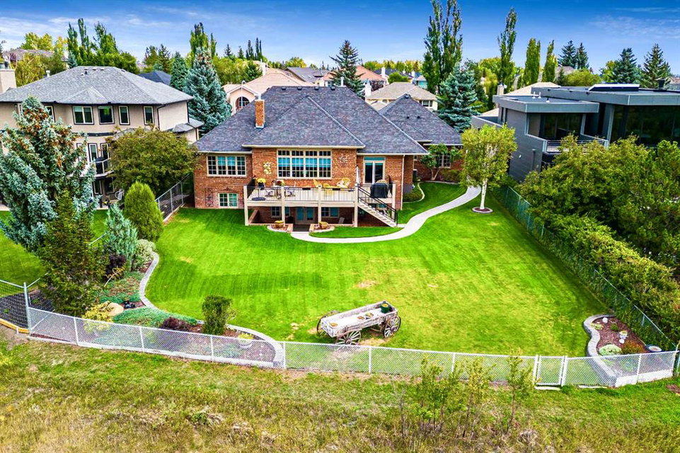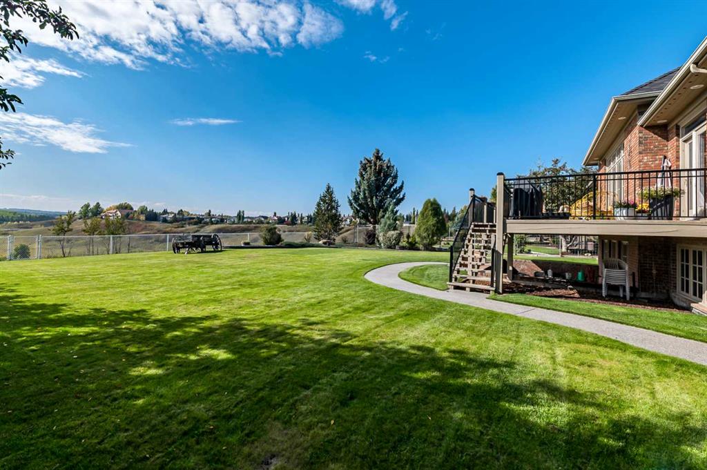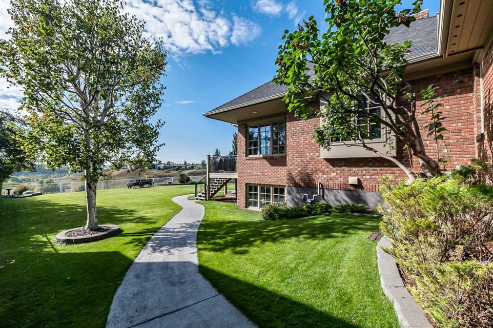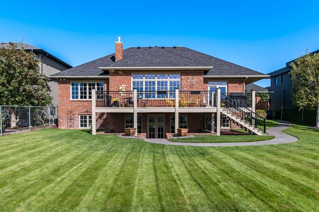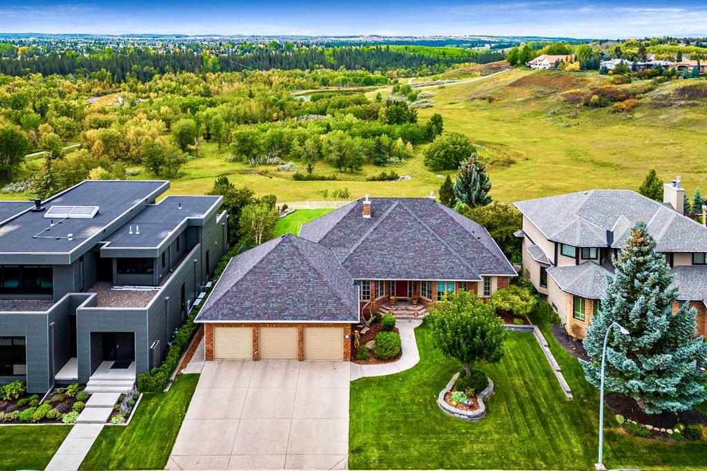 This breathtaking property is situated perfectly on the Ridge of Candle Crescent offering never ending sweeping valley views of Fish Creek Provincial Park, and spectacular vistas of the Majestic Rocky Mountains unlike any other. Feels like Heaven on Earth! Custom built by “Granville” this all brick bungalow walkout is in meticulous condition, move-in ready for you to live the lifestyle you’ve earned. Home sits on a huge 15,317 sqft lot, (over 1/3 acre), large west facing deck for entertaining or just relaxing enjoying the tranquility and sounds of wildlife and Fish Creek Park. Featuring 4180 ft.² of well appointed development. This stunning one-of-a-kind home is wrapped entirely with a full brick exterior, has four car attached garage with epoxy finished in slab heating. The interior features 9 to 11 foot coffered ceilings, on-site finished hardwood flooring exude unmistakable sense of estate quality. Upon entering the foyer you’ll be emerged by the open concept design that seamlessly combines the formal dining room, custom designed kitchen with granite countertops, breakfast bar and working island, and a cozy breakfast nook. The focal great room with purposeful design large windows to capture the views and floor to ceiling spectacular stone fireplace (all the stone was brought up from Fish Creek). The serene primary bedroom continues to focus on the valley view and showcases a 5pce luxurious ensuite, customize walk-in closet. There’s also a private den/office with full wall cabinetry in built-ins, 2pce powder room, walk-in pantry, family sized mudroom that completes the main level. A graceful, curved staircase leads to the lower walkout level that offers 9 foot ceilings and in-floor heating to allow for very comfortable space year round. Oversize windows flood this level with natural light. This development leads itself to entertaining with a huge rec room complete with entertainment centre, wet bar, two additional bedrooms, 1-4pce and 1-3pce bathrooms, plus an exercise room with shower/steam room and tons of storage area. This is a home that sets the stage for a memorable gatherings. A rare opportunity to own this one of a kind incredible view lot. Don’t miss this once in a lifetime opportunity to experience the grandeur and beauty that awaits you and your loved ones.