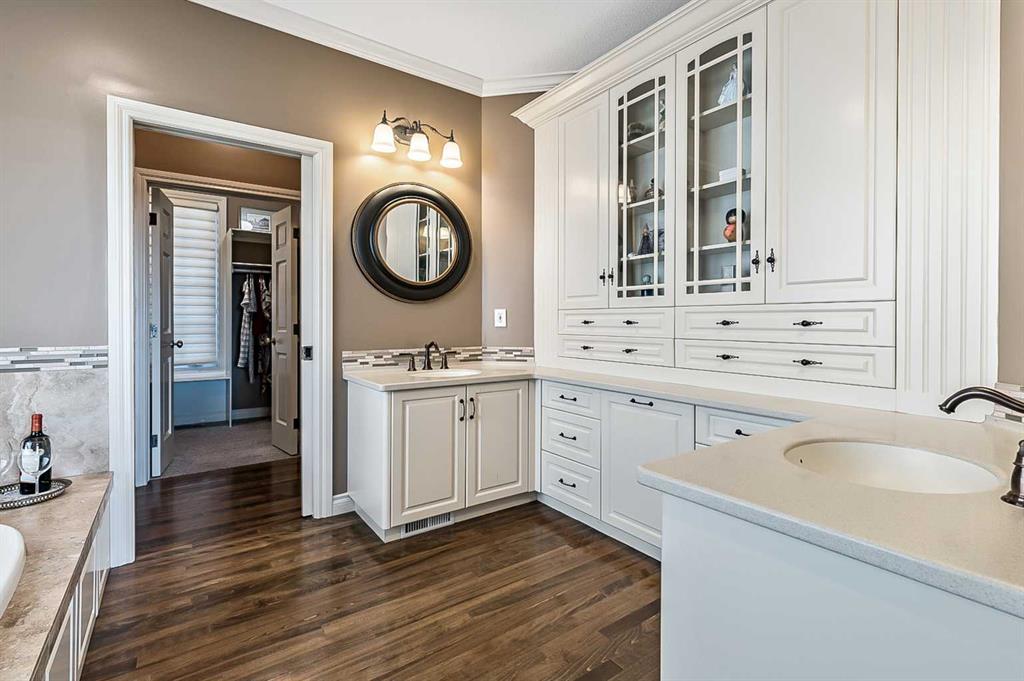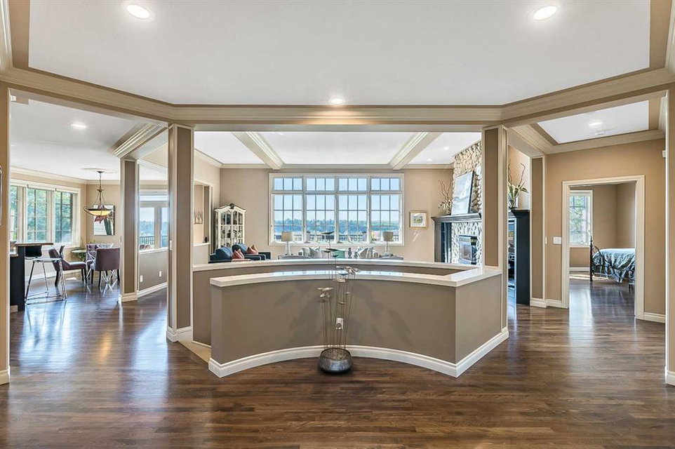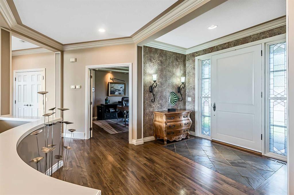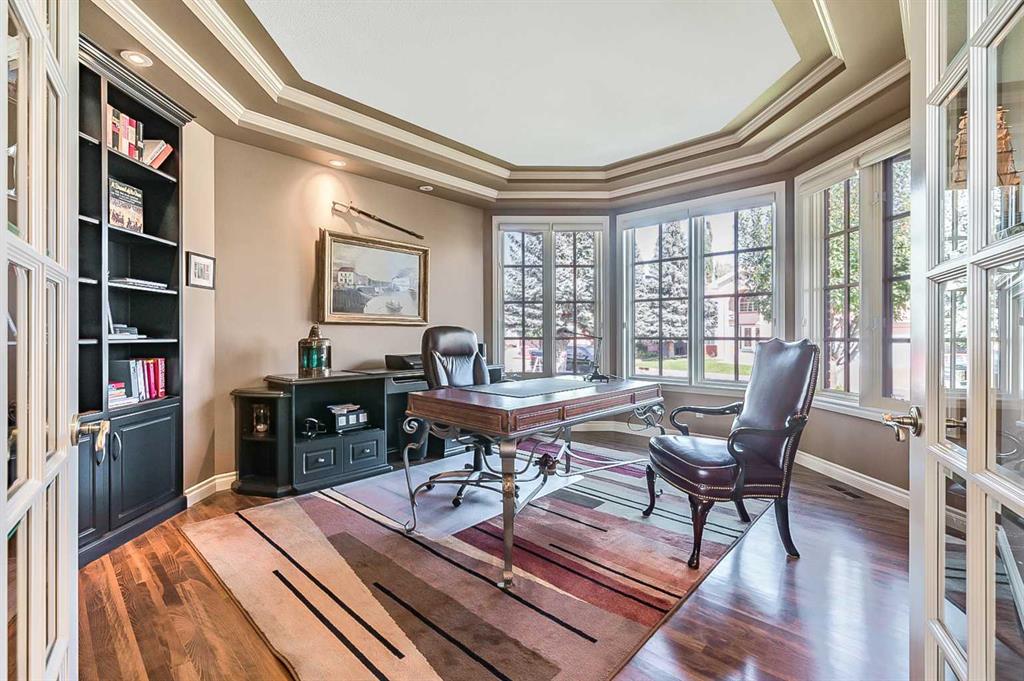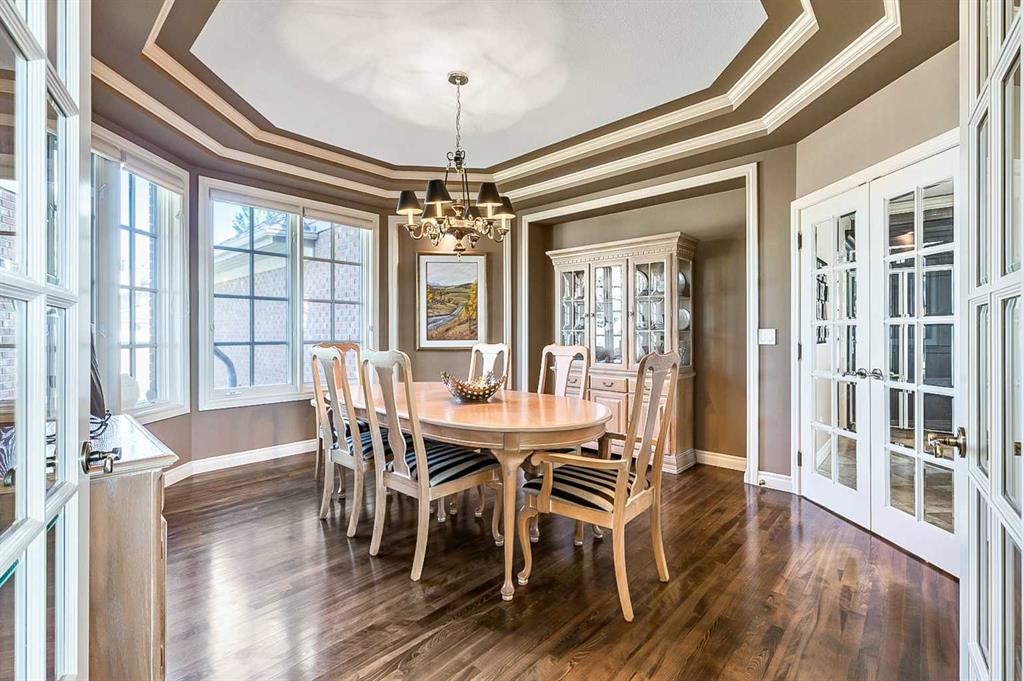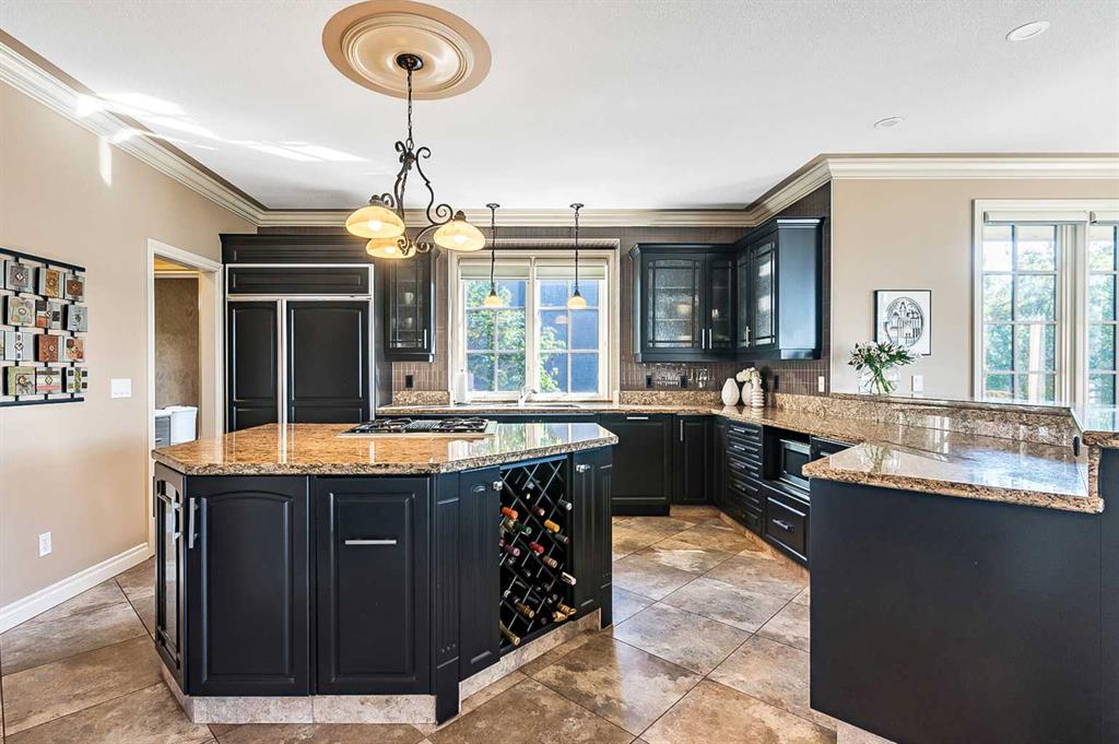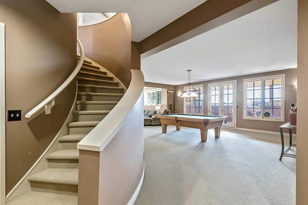 This breathtaking property is situated perfectly on the Ridge of Candle Crescent offering never ending sweeping valley views of Fish Creek Provincial Park, and spectacular vistas of the Majestic Rocky Mountains unlike any other. Feels like Heaven on Earth! Custom built by “Granville” this all brick bungalow walkout is in meticulous condition, move-in ready for you to live the lifestyle you’ve earned. Home sits on a huge 15,317 sqft lot, (over 1/3 acre), large west facing deck for entertaining or just relaxing enjoying the tranquility and sounds of wildlife and Fish Creek Park. Featuring 4180 ft.² of well appointed development. This stunning one-of-a-kind home is wrapped entirely with a full brick exterior, has four car attached garage with epoxy finished in slab heating. The interior features 9 to 11 foot coffered ceilings, on-site finished hardwood flooring exude unmistakable sense of estate quality. Upon entering the foyer you’ll be emerged by the open concept design that seamlessly combines the formal dining room, custom designed kitchen with granite countertops, breakfast bar and working island, and a cozy breakfast nook. The focal great room with purposeful design large windows to capture the views and floor to ceiling spectacular stone fireplace (all the stone was brought up from Fish Creek). The serene primary bedroom continues to focus on the valley view and showcases a 5pce luxurious ensuite, customize walk-in closet. There’s also a private den/office with full wall cabinetry in built-ins, 2pce powder room, walk-in pantry, family sized mudroom that completes the main level. A graceful, curved staircase leads to the lower walkout level that offers 9 foot ceilings and in-floor heating to allow for very comfortable space year round. Oversize windows flood this level with natural light. This development leads itself to entertaining with a huge rec room complete with entertainment centre, wet bar, two additional bedrooms, 1-4pce and 1-3pce bathrooms, plus an exercise room with shower/steam room and tons of storage area. This is a home that sets the stage for a memorable gatherings. A rare opportunity to own this one of a kind incredible view lot. Don’t miss this once in a lifetime opportunity to experience the grandeur and beauty that awaits you and your loved ones.