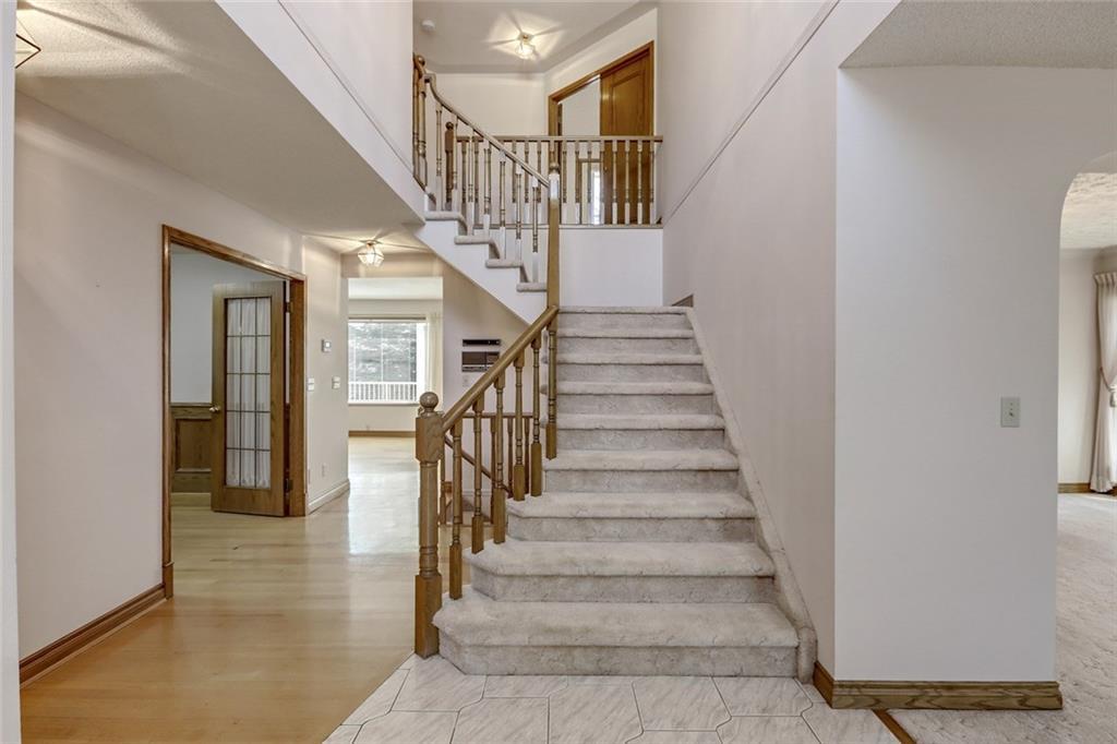 OPPORTUNITY is knocking in Canyon Creek Estates!! This executive home features gleaming hardwood floors, open concept kitchen with large island area, breakfast nook & walk-in pantry. Formal dining room overlooking living room, family room that enjoys gas burning fireplace & custom build-ins, den/office and laundry. Three generous sized bedrooms on the upper floor with a full ensuite off the master, patio door to private balcony and walk-in closet. Other bedrooms share “Jack & Jill” ensuite. Walkout basement is fully developed that boasts extra bedroom, 3 pc bath, huge rec. room with 2nd fireplace and storage room. Note: Newer vinyl windows, two high efficient furnaces, water softener, Vacuflow, upgraded deck, underground sprinkler system, south backyard, heated oversized triple garage etc. Only steps away from Fish Creek Park, shopping, schools, LRT, transit and fitness center. This BEAUTIFUL home has been looked after by the original owner!! Open House Sat May 5th 2-4pm and Sun May 6th 2-4 This home is on a Shake Pro Maintenance contract for the CEDAR SHINGLES!! APPLIANCES AND INTERCOM AS IS !!