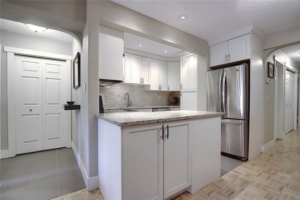 Beautiful bungalow in fabulous condition! This unit has been renovated from top to bottom and enjoys a sunny west patio. Open concept kitchen with newer cabinets, granite counter tops, stainless steel appliances, island & dining area. Spacious living room with a electric fireplace perfect for everyday living. Two generous sized bedrooms with his & her closets off the master bedroom, newer 4 pc bathroom, laundry area and storage room. Note: Condo fees are $306 plus special assessment of $215 per month and one assigned parking stall. Walking distance to all levels of schools, public transit, LRT, all major amenities and Fish Creek Park! Home is a pleasure to show with pride of ownership. Turn-Key property!