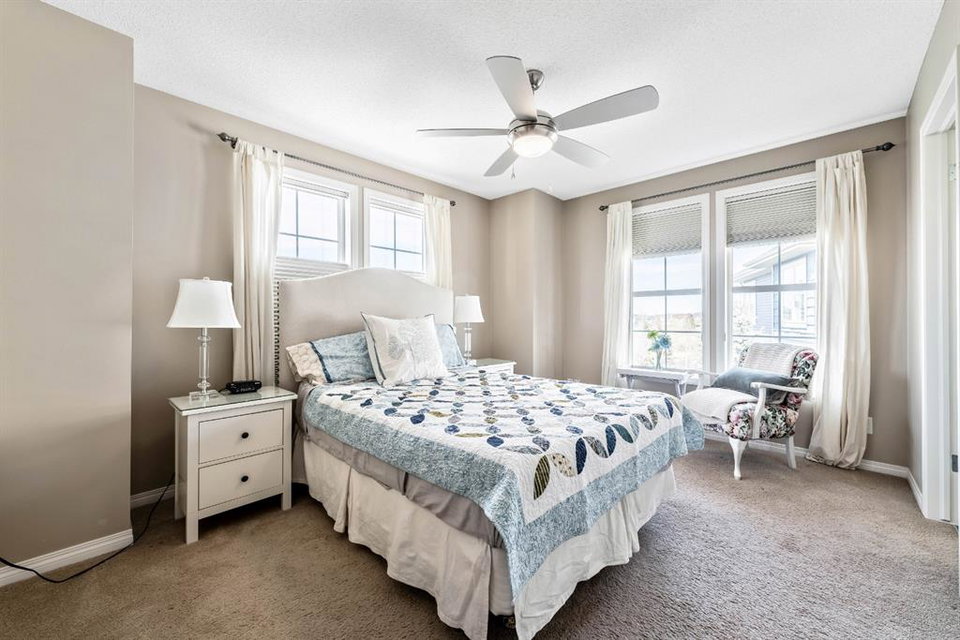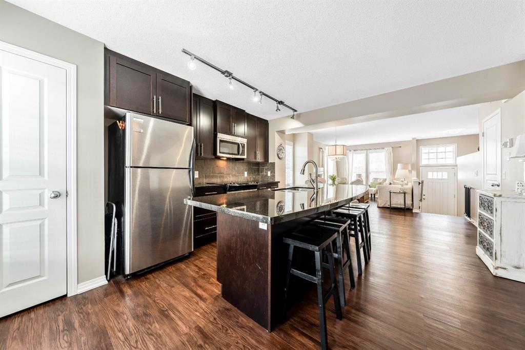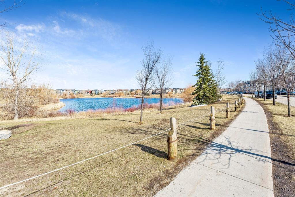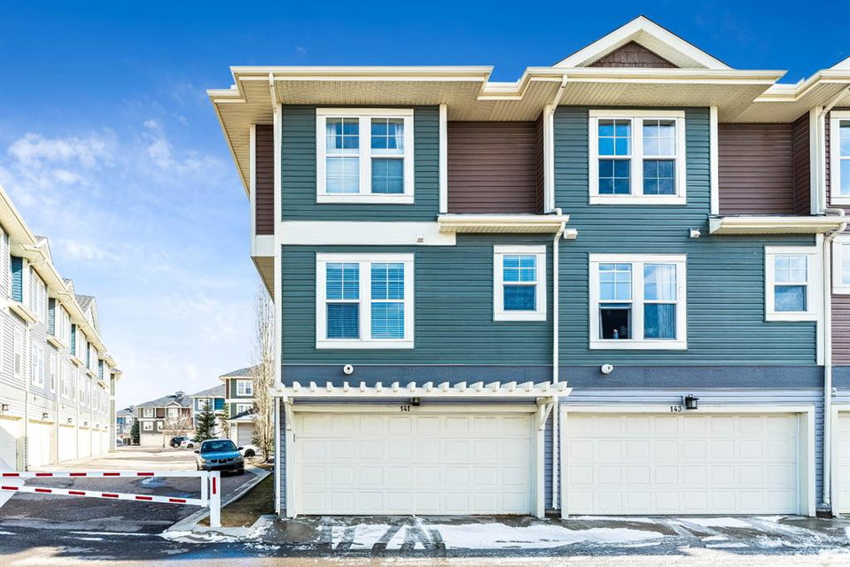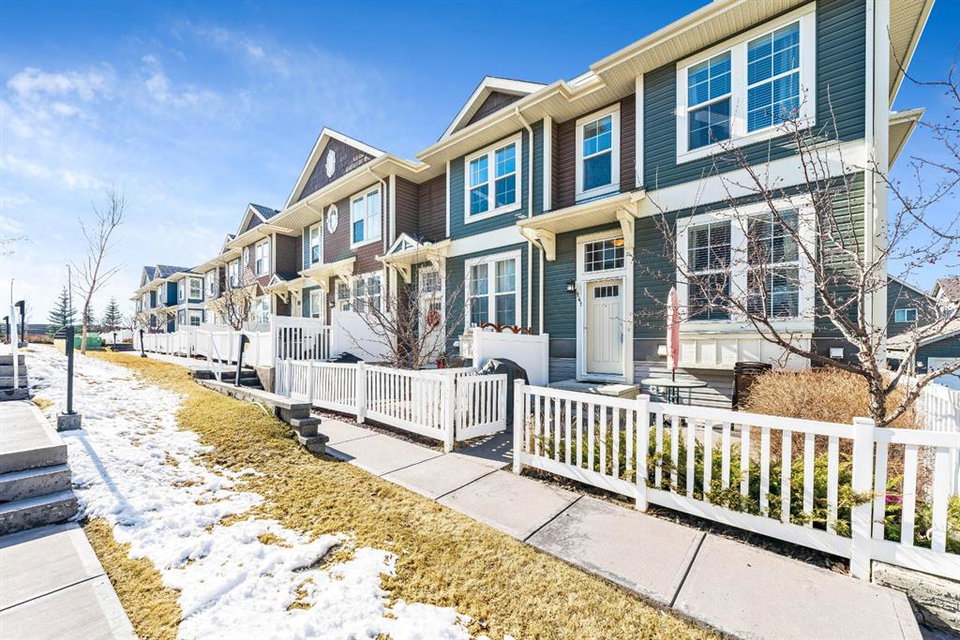 Fantastic location in the highly desirable lake community of Auburn Bay! Great end unit with over 1134 sqft of developed living space, double attached garage, 3 bedrooms and supper low condo fees! This lovely upgraded home features a beautiful kitchen with granite counters, huge island with seating, stainless steal appliances, espresso cabinets, pantry, neutral decor throughout, Hunter Douglas blinds, and tons of big windows allowing for lots of natural light. The bright and open concept main floor has a large living room, generous dining area, and a half bath powder room. Upstairs you will find a king sized primary bedroom with views of the wet pond, walk-in closet and 4pce ensuite! Two further good sized bedrooms and main family bathroom complete the upper level. Downstairs is a utility/laundry area with extra storage and leads to the double attached garage! Enjoy year round lake activities at the beach & club house! Close to shopping, schools, transit, and hospital. One of the best locations in the complex and shows pride of ownership!