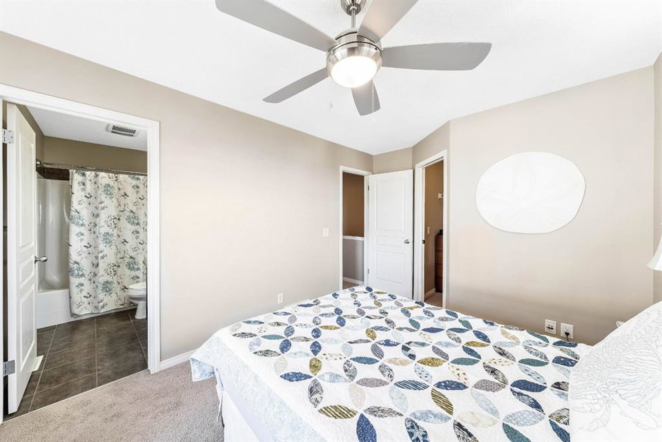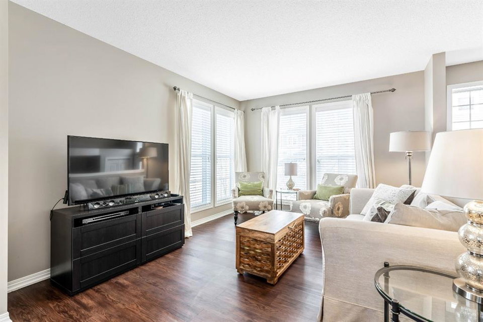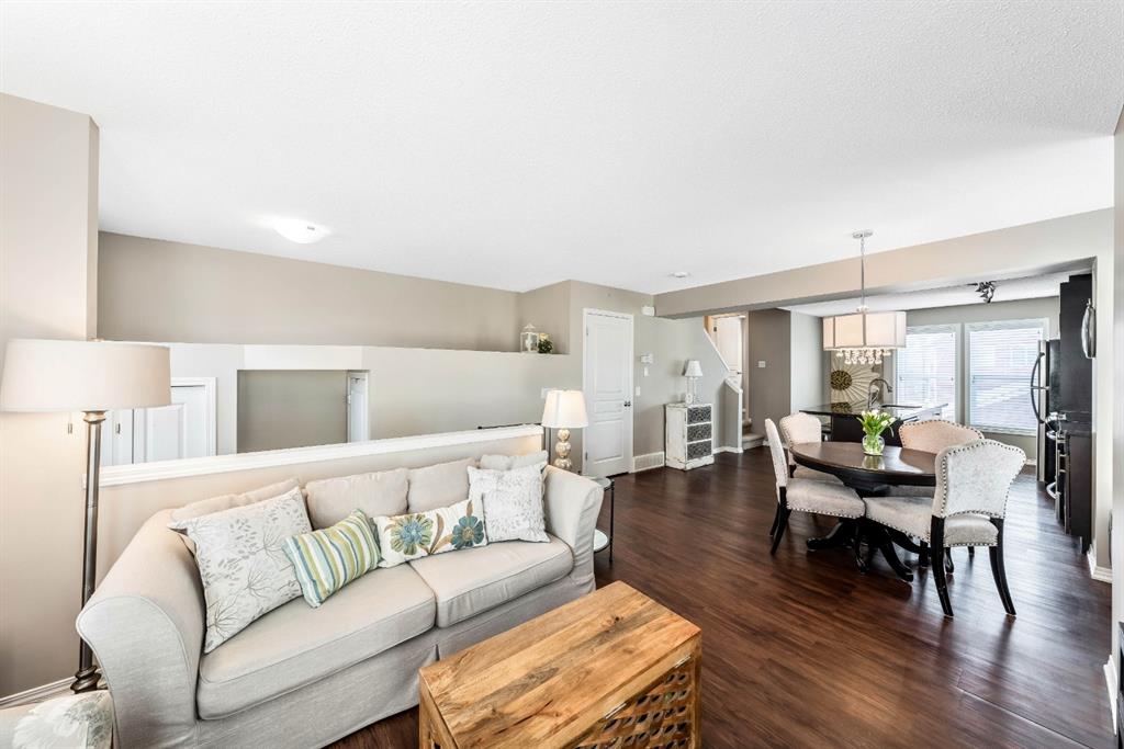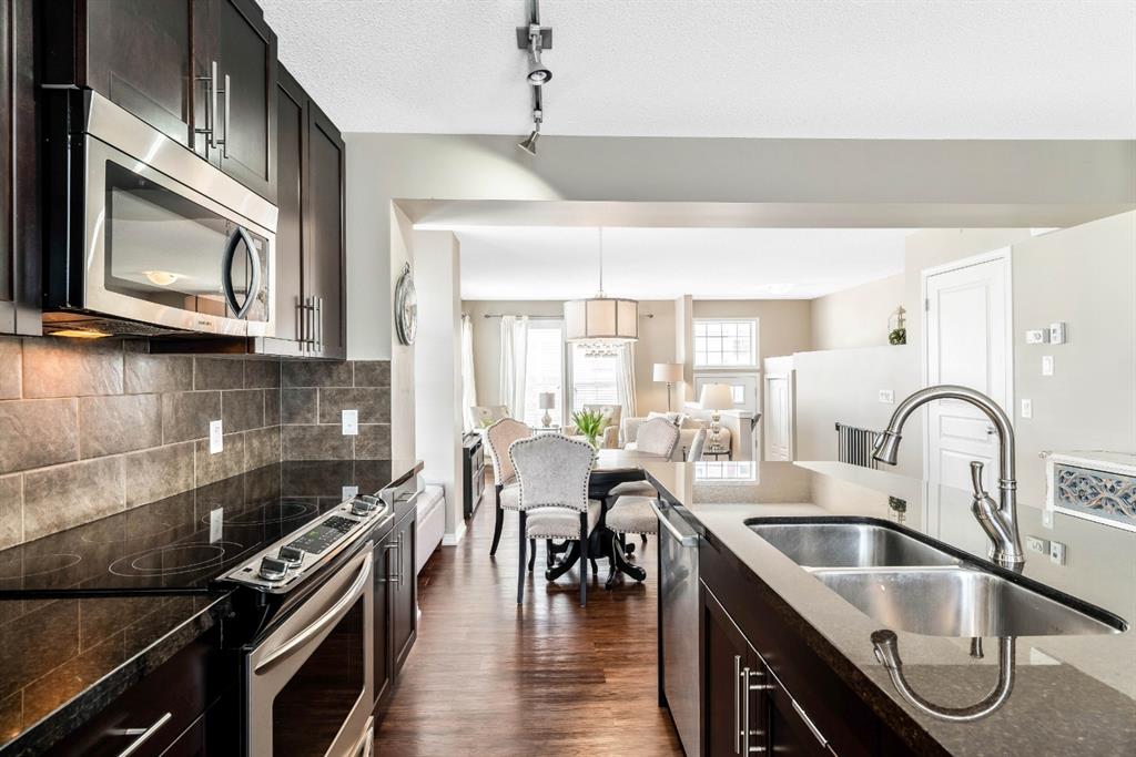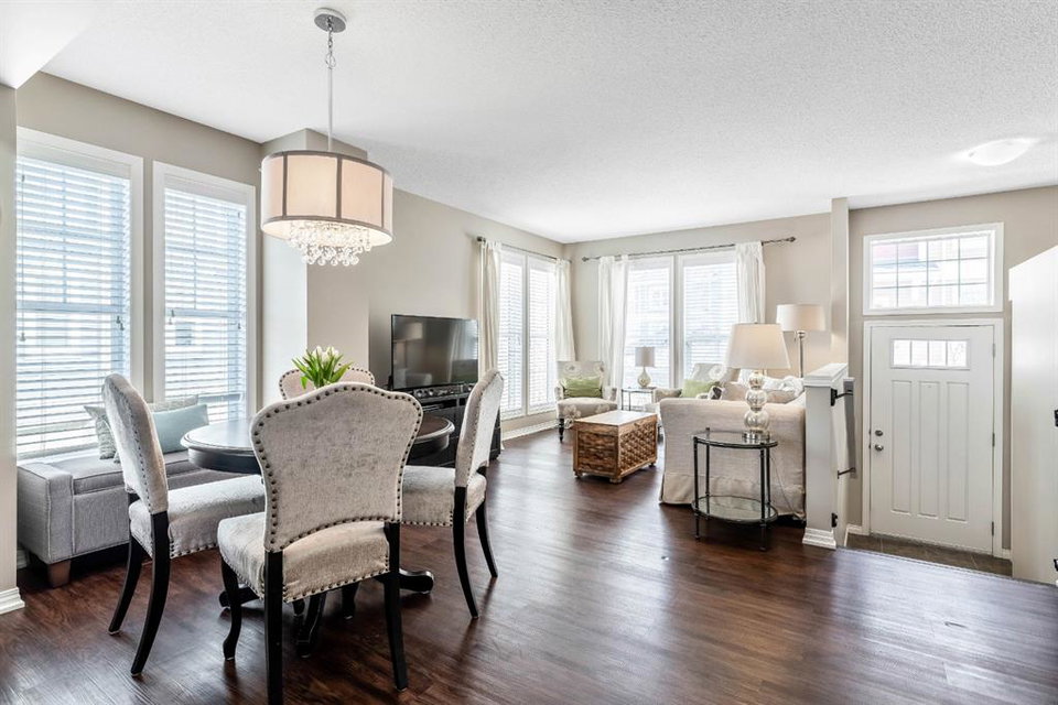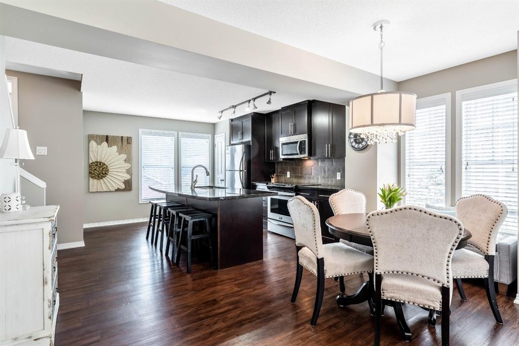 Fantastic location in the highly desirable lake community of Auburn Bay! Great end unit with over 1134 sqft of developed living space, double attached garage, 3 bedrooms and supper low condo fees! This lovely upgraded home features a beautiful kitchen with granite counters, huge island with seating, stainless steal appliances, espresso cabinets, pantry, neutral decor throughout, Hunter Douglas blinds, and tons of big windows allowing for lots of natural light. The bright and open concept main floor has a large living room, generous dining area, and a half bath powder room. Upstairs you will find a king sized primary bedroom with views of the wet pond, walk-in closet and 4pce ensuite! Two further good sized bedrooms and main family bathroom complete the upper level. Downstairs is a utility/laundry area with extra storage and leads to the double attached garage! Enjoy year round lake activities at the beach & club house! Close to shopping, schools, transit, and hospital. One of the best locations in the complex and shows pride of ownership!