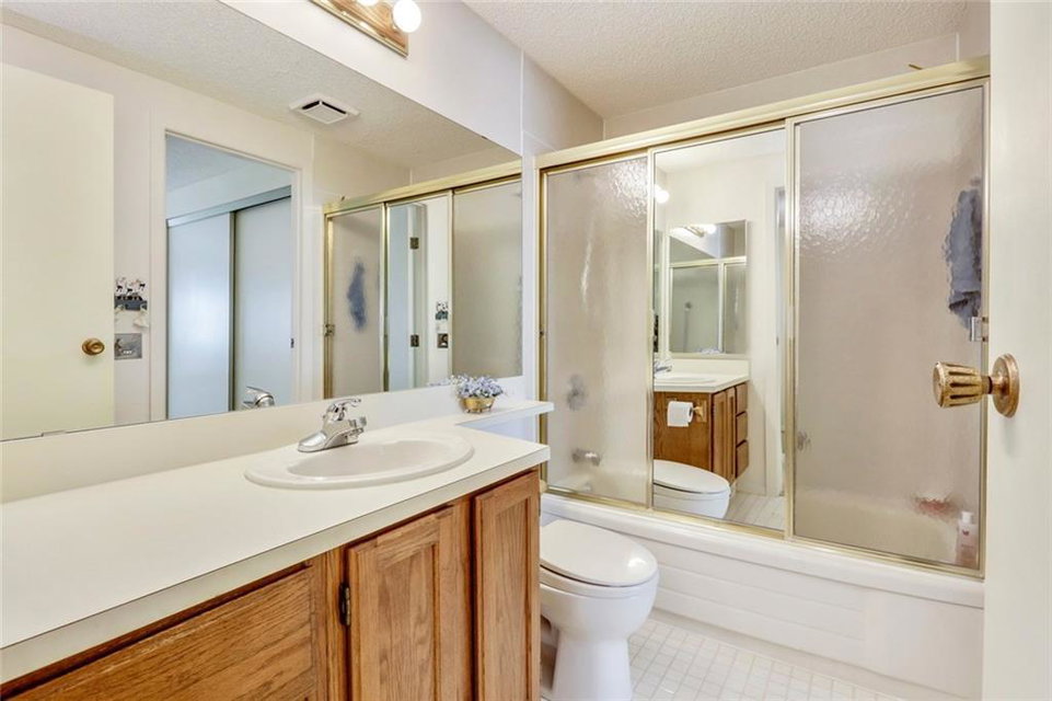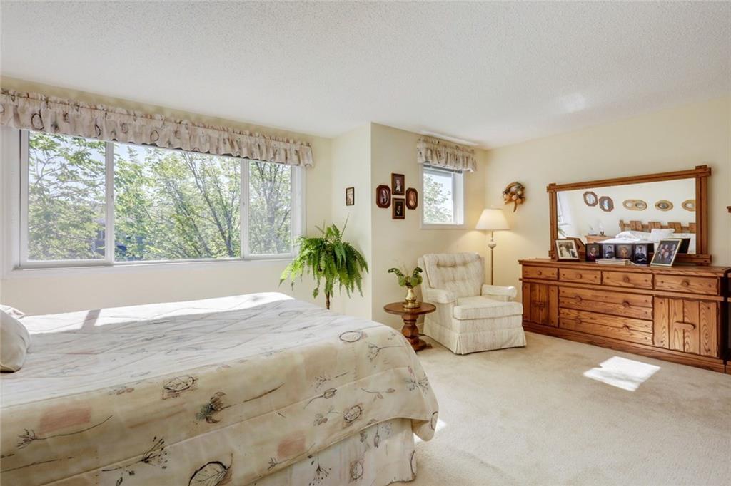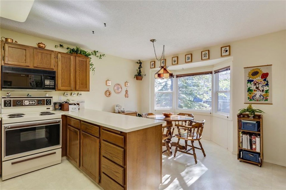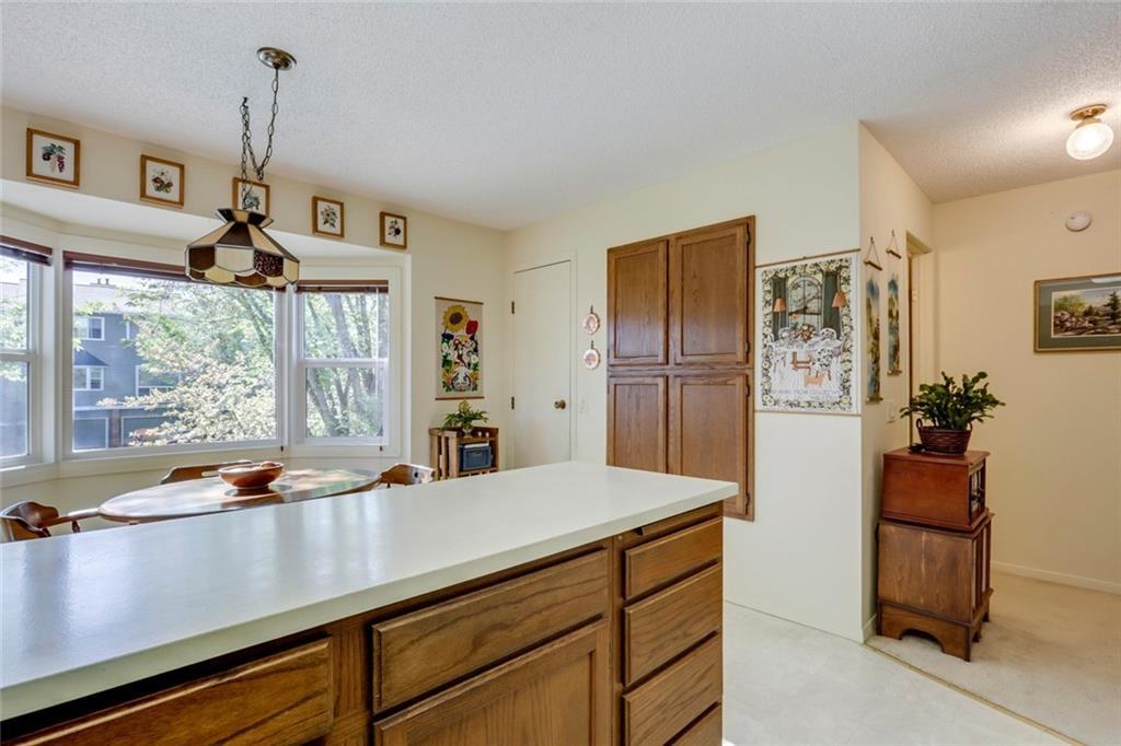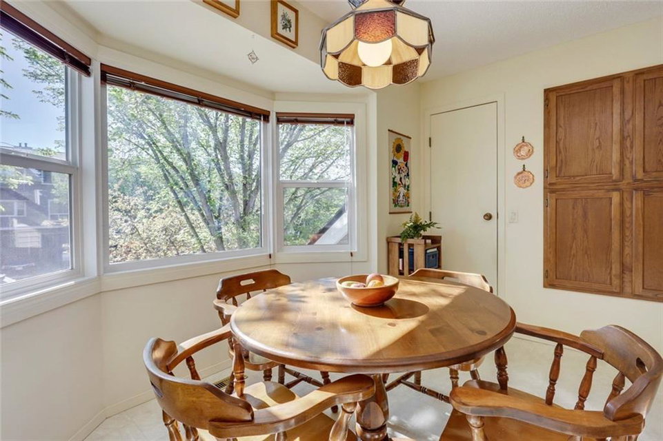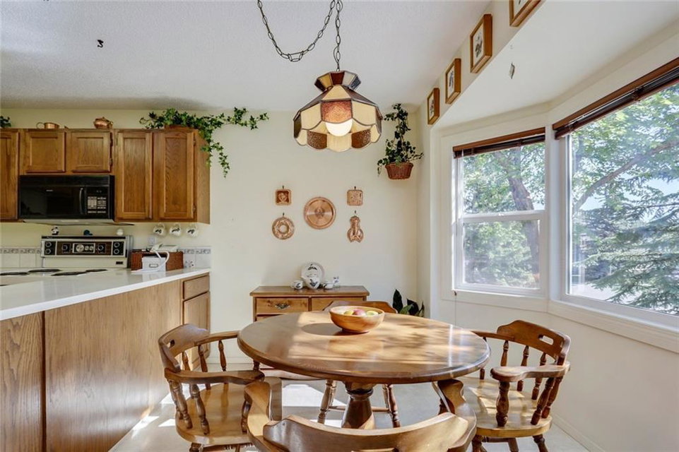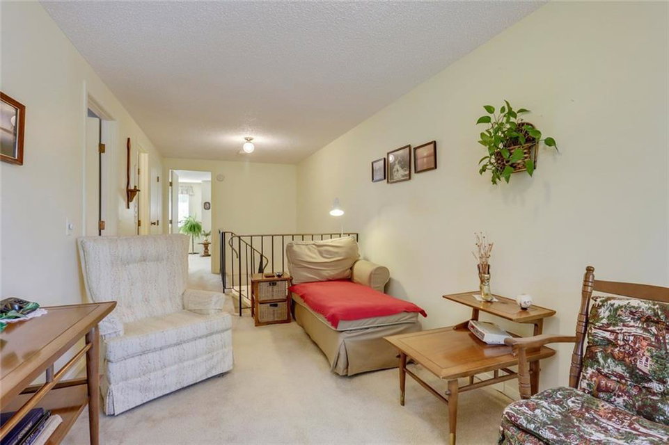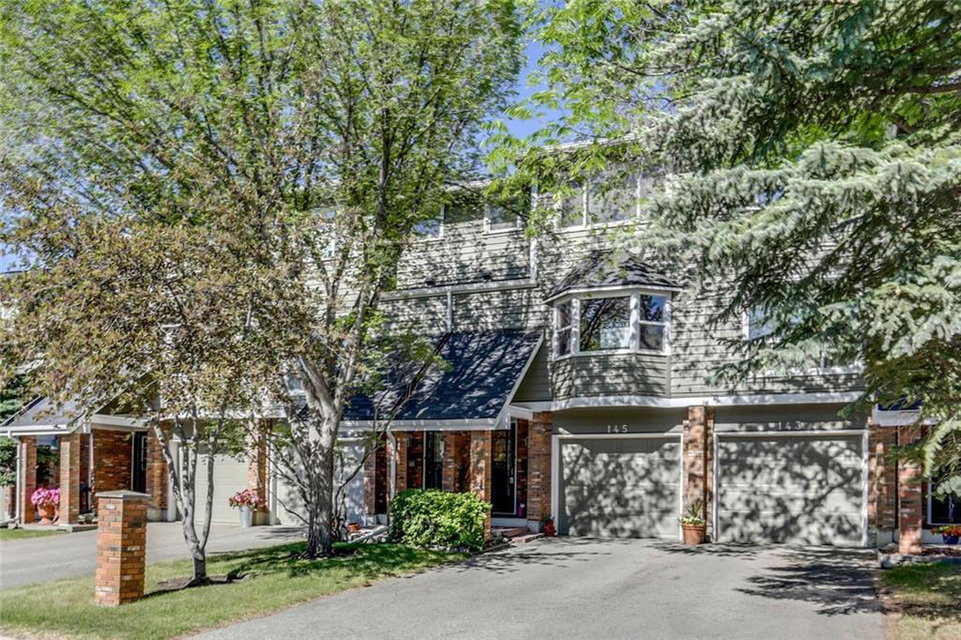 FANTASTIC WOODBINE LOCATION! Pristinely kept 1300+ sq. ft. 2 bedroom + den (easily converted to 3rd bedroom) Wonderful spacious tiered open concept floor plan features a cozy living room with gas fireplace, Large formal dining room overlooking living room and sunny country kitchen with eating nook – flooded with east morning sun. Enjoy lazy sunny days on your west facing lovely deck/patio area with convenient access from the living room. The upper level includes a very generous sized master bedroom with room for a lovely sitting area, dual entrance 4 pc ensuite + 1 more good size bedroom and very spacious open den area. The lower level is developed with a very functional office featuring a fabulous built-in desk area for two, extra storage, the furnace room including a very handy utility sink as well. All this with access to the oversized single attached garage. Extra updates for the new buyer include: roof, siding, windows and fencing! Located close to shopping and public transportation. Call for your own private viewing of this wonderful Townhouse located in a ‘boutique’ complex in Woodbine!