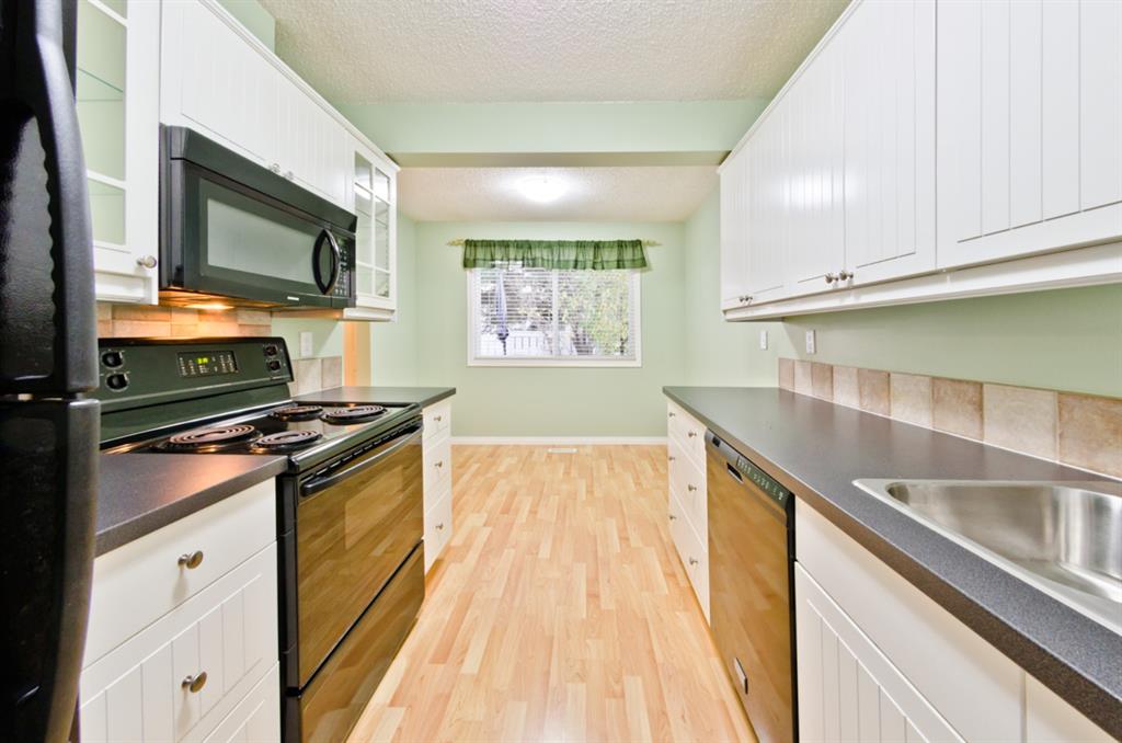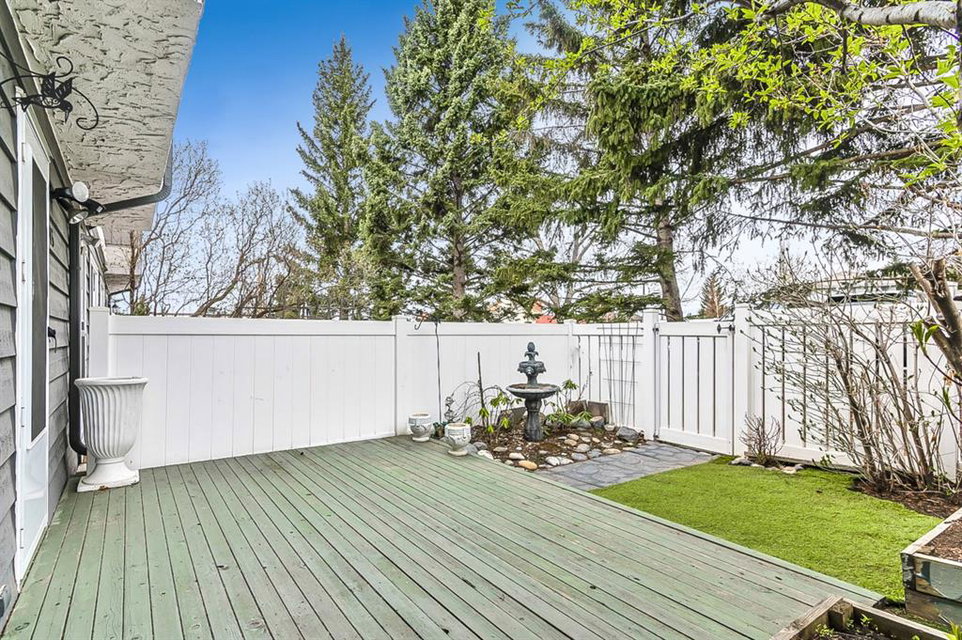 Absolutely beautifully and in MINT CONDITION. This bright unit was completely remodeled and features 3 good sized bedrooms. Renovations include a new kitchen with white shaker style cabinets/ ample counter space, pantry, lots of cupboards, sunny breakfast nook, gleaming laminated floors, remodelled 4pce bath, vinyl windows with Hunter Douglas Blinds. There is a west facing fully fenced “PRIVATE” backyard complete with a large deck, flower beds, and an artificial turfed area. Lower level is partially developed and features some pleasant and unique wall art, laundry area with front load washer & dryer. This is an excellent well run complex and is just steps away transit, short walk to LRT, and of course a stone’s throw away from Fish Creek Provincial Park with miles of hiking and bike trails. Shows Pride of Ownership! Vacant with early possession available.