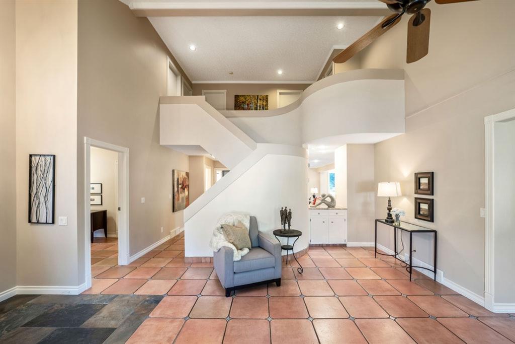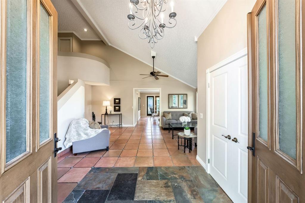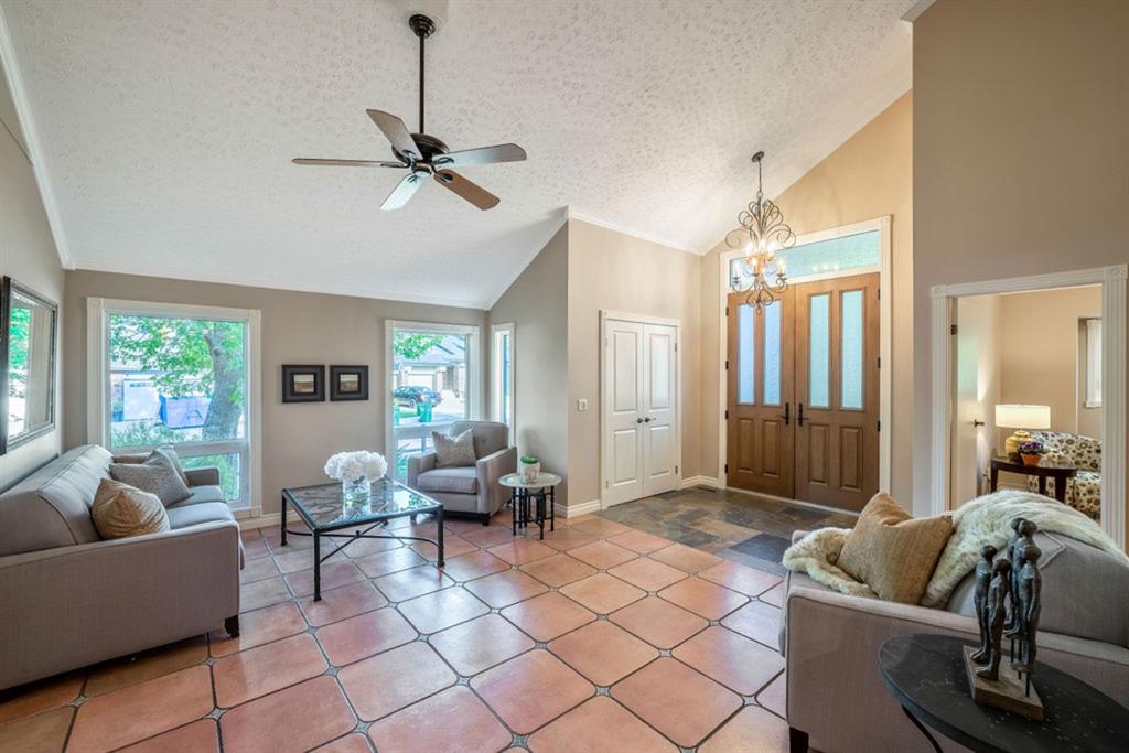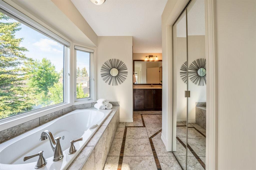 OPEN HOUSE SATURDAY OCT.29th 2-4pm !!PRICE adjustment !!Super Home at a Great Price !!This beautifully renovated Custom Built Estate home with 4 bedrooms on the upper floor is a Rare Find, located in the heart of Canyon Meadows Estates!! It’s stunning open and bright contemporary floor plan, with upgrades, is sure to please. Modern tile and stone flooring throughout, the main level boasts an oversized, chef’s caliber kitchen with an abundance of granite countertops, gas counter-top range, s/s appliances, eating bar and walk-in pantry. On either side of the kitchen, the breakfast nook and additional entertainment sized dining room, each open up to a stone stairway and extensive stone patio in the park-like backyard, with mature landscaping, hot & cold water taps and a custom brick Argentinian BBQ! The formal sitting area enjoys the focal point of the modern and unique staircase design, and the living room features a gas fireplace with matching tile surround. The den/office, has built in shelving in the orginal closet and this room can be a main floor bedroom if needed and is conveniently located just off the foyer. The upper level consists of 4 large bedrooms and laundry. The luxurious master bedroom has a custom designed walk-in closet and 4 pc ensuite with spa tub and walk-in shower. The spacious 2nd bedroom has a bonus 2 pc ensuite, perfect for a teenager or guest. Basement is fully developed featuring a very large rec room, 3 pc bath with oversized walk-in shower, large illegal bedroom( very easy to install an eggressed window) and huge storage area with shelving. All newer mechanicals – 2 energy efficient furnaces, 2 hot water tanks and 2nd electrical panel added. A/C, shingles and front door newer as well. Situated on an oversized mature treed lot, on a quiet street, this home is close to all amenities – all levels of school, shopping, transit, parks, Canyon Meadows Pool & Fitness Centre, tennis courts, golf and Fish Creek Park!! Immediate possession available!! Truly an outstanding home in the most desirable of neighborhoods!