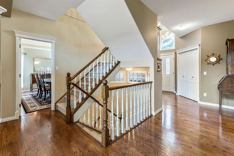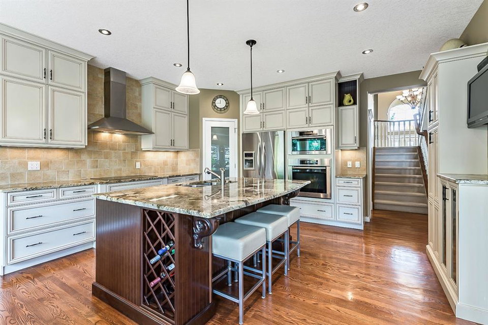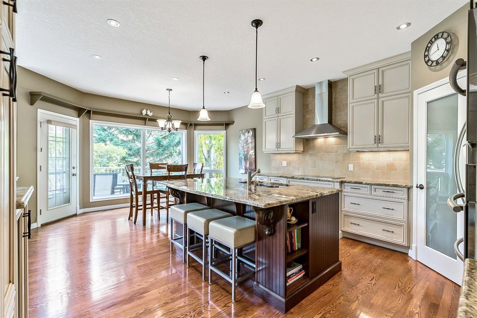 ANYTHING ELSE IS A COMPROMISE. Backing onto Fish Creek Park! This elegant 3025sqft two storey home has been meticulously updated and renovated. Main floor features gleaming hardwood floors, open concept floor plan, vaulted ceilings, stunning kitchen includes granite counter-tops, stainless steel Miele appliances (induction cooktop, oven, microwave & dishwasher), island area, under cabinet lighting, walk-in pantry and spacious breakfast nook. Gorgeous family room is complemented by a 3-sided fireplace, oversized windows and build-in cabinetry. Formal dining & living room perfect for entertaining. Main floor den, 2pc powder room and massive laundry/mud room. Upper level enjoys three generous sized bedrooms. Master retreat can easily accommodate king sized furniture and includes a private balcony, renovated “spa like” 5 pc ensuite, his & her walk-in closets with custom built organizers, heated tile floors, free standing tub, dual sinks & walk-in shower. The other two bedrooms are huge with walk-in closets and large 4pc bath complete this level. Basement is fully finished with 9’ ceiling, games & rec. room, 3 pc bath, 4th bedroom and fitness/storage room. Note: Extensive renovation of $200,000, central air conditioning, two furnaces, two hot water tanks, underground sprinkler system and oversized double attached garage. Fabulous backyard with walking paths of Fish Creek Park. These types of homes rarely come on the market with his level of care, quality and location. Home is a pleasure to show!