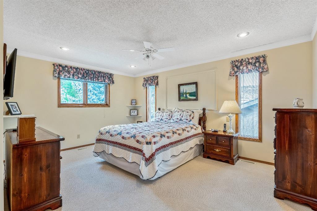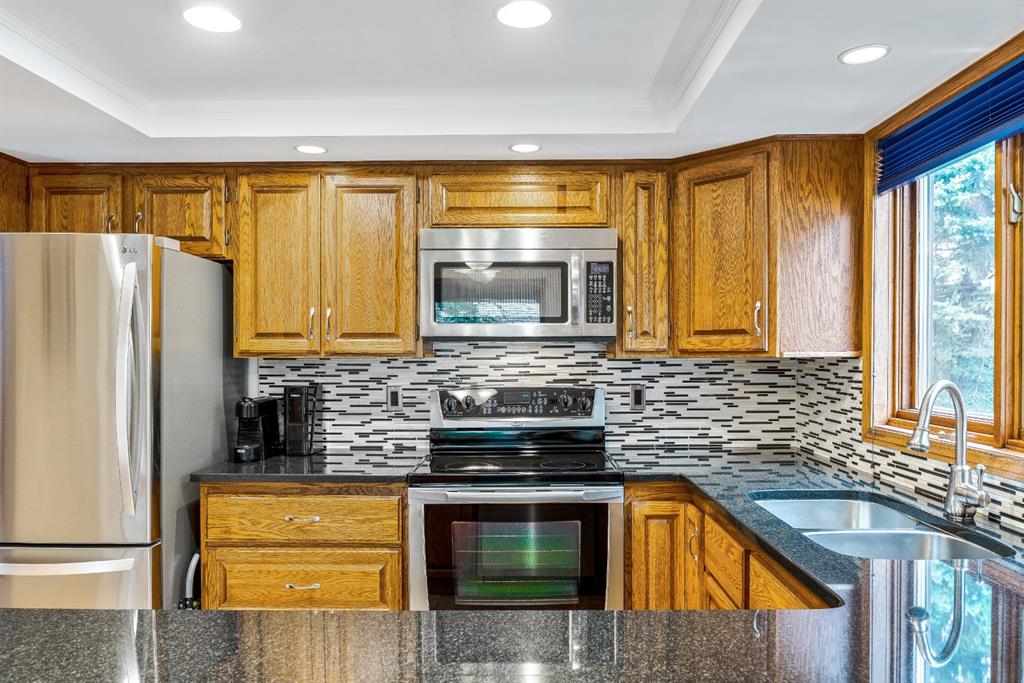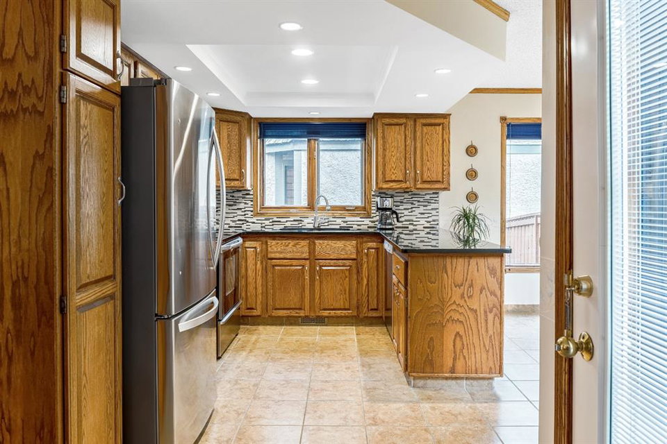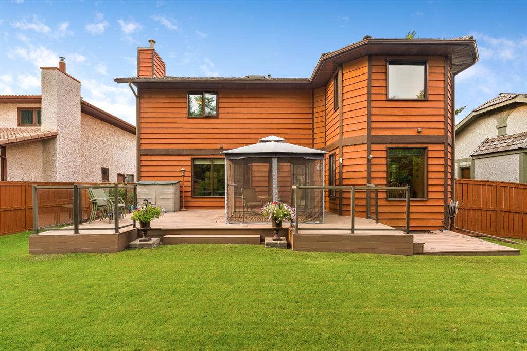 Woodbine Estate – Fantastic opportunity to own this beautiful updated family home, just steps from Fish Creek Park! Fabulous newer renovated kitchen includes custom cabinetry with designer pull-outs, granite counter-tops and stainless-steel appliances. Huge windows from the breakfast nook and family room offers a gorgeous view of a large south facing backyard, which is a gardener’s delight. Step out the conveniently located back door for easy BBQing that leads to a family sized deck with enclosed netted gazebo ideal for enjoying those warm summer evenings. Stunning hardwood floors grace most of the main level plus the staircase leading to the upper level. Entertaining sized living room and raised dining room, family room with a rock ledged gas fireplace surrounded by custom shelves & cabinetry, laundry/mud room plus a 2pc powder room complete this level. Upper floor boasts a grand king-sized bedroom with walk-in closets, 5pc ensuite, jetted tub and walk-in shower. Two generous sized bedrooms with one bedroom presently being used as an office. Lower level has 9’ ceilings, huge 4th bedroom, 3pc bath, rec. room, great storage area with a small workshop. Home has been meticulously maintained, triple pane windows, outstanding landscaping and shows mint. Mr. & Mrs. Clean live here. Easy access to new ring road and 5mins to Costco. Close to shops, public transit, Safeway, Starbuck, neighborhood pub and other major amenities. Flexible possession, this is a must see!!