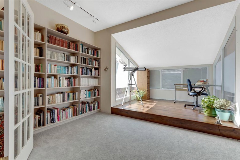 What a fabulous opportunity to own this 2921 sqft family home located in desirable Canyon Meadows Estates. Upon entering through the double front door, you are greeted by a stunning dual showcase stairwell leading to the second floor. The main level enjoys a central hall floorplan, formal living room, french-doors, bay window, gas fireplace and formal dining room (presently being used as a home office). Cozy family room with a wood burning fireplace & custom bookshelves, oversized kitchen includes island, breakfast nook, 3-sided window atrium overlooking a large south facing backyard. Main floor laundry, garden window box and 2pc powder room. Upper floor boasts a beautiful library/study/den with french doors and custom built-ins. Primary bedroom is king-sized with 3rd fireplace and 5pc ensuite featuring separate walk-in shower, spa tub, his & hers sinks plus a walk-in closet. Lower level could be a “mother in-law” suite or a teenagers dream since it has it’s own separate entrance. Extra bedroom (not egressed window), rec. room with wet bar, studio, wine cellar, 3 pc bath, sauna and plenty of storage areas. Large flat yard that once had an outdoor pool, old pool house (additional storage), delightful playhouse, gazebo and massive patio areas for great outdoor living. Canyon Meadows has so many amenities and all levels of schools including Spanish bi-lingual programs. City owned indoor pool/fitness center, tennis courts, two active community halls, two outdoor skating rinks, short distance to LRT, Fish Creek Park and a easy commute to downtown!