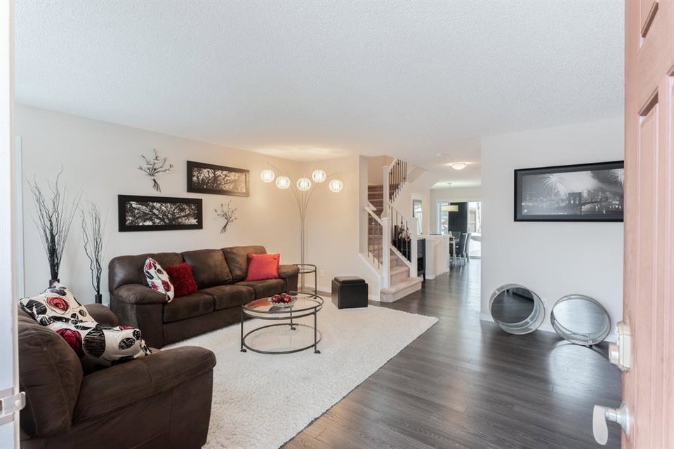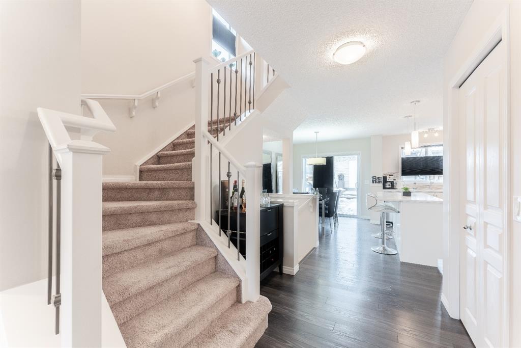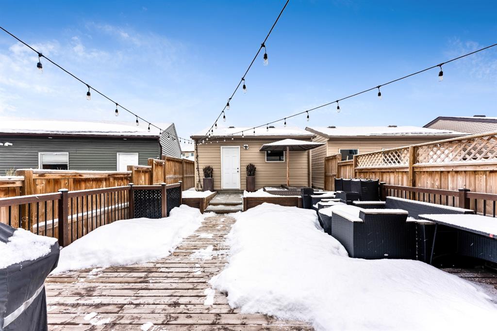 Incredible opportunity to own this 1314 sqft two storey home in the fabulous community of Cranston! Home features gleaming laminate flooring, bright spacious modern design, open concept kitchen, large island, upgraded stainless steel appliances with a gas stove, trendy tile backsplash, corner pantry and extra windows making this perfect for everyday living. Upper floor boasts three generous bedrooms with a 4pc main bath. Spacious master bedroom offers walk-in closet, 4pc ensuite with soaker tub and separate shower. Basement is unspoiled ready for future development. Note: Fully finished landscaped yard, oversized deck, central air conditioning, no condo fees and double detached garage. Close to hospital, shopping, theatre, restaurants, YMCA, schools, Fish Creek Park, public transit and Deerfoot & Stoney Trail. Beautiful “Turn-Key” property!!