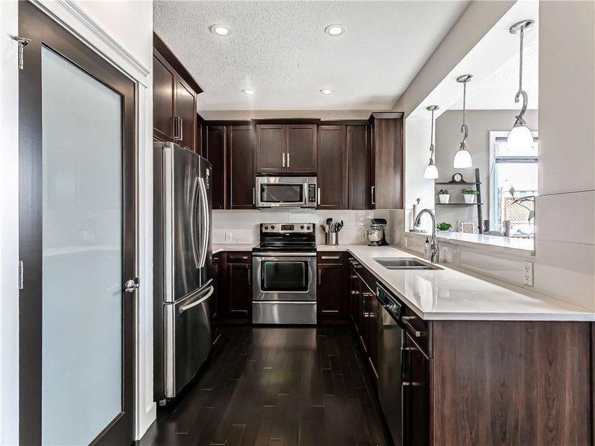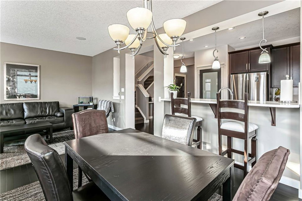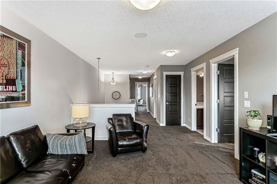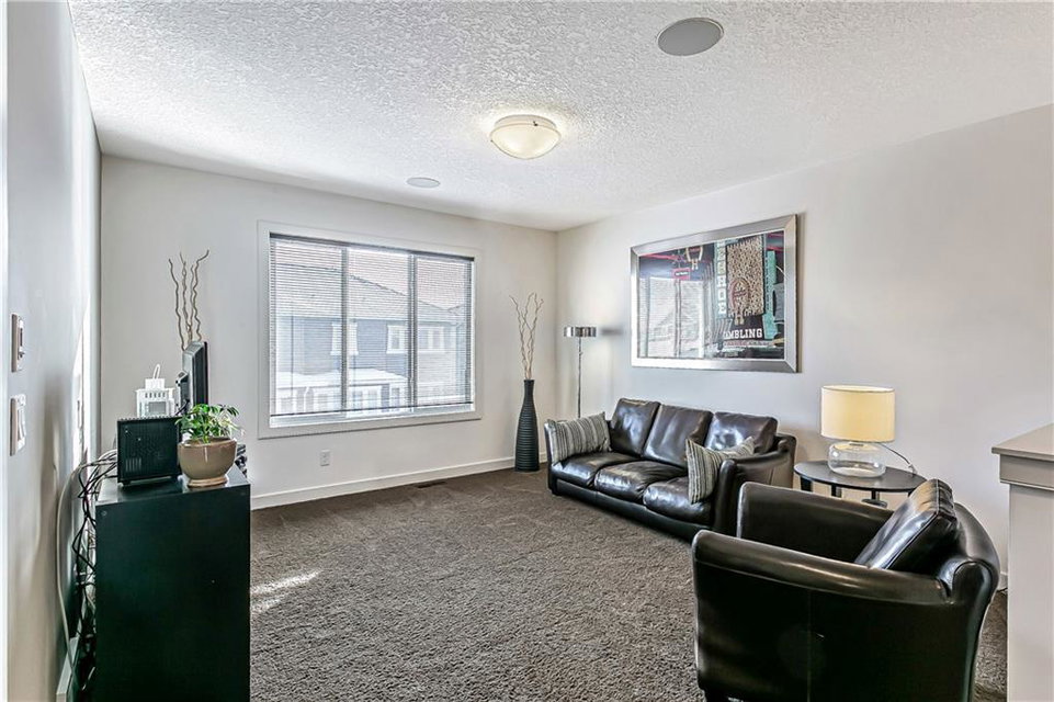 Fantastic opportunity in Evanston! This beautiful former showhome by Pacesetter Homes enjoys numerous upgrades. Main floor features gleaming hardwood floors, 9′ ceilings, open concept floorplan, 2 pc bath, large kitchen with quartz countertops, full height cabinets, pantry & stainless steel appliances. Large living boasts gas burning fireplace (stone), built-in speakers, spacious dining area with access to the deck and backyard. Upper floor offers three generous sized bedrooms, huge bonus room, 4pc bath & laundry. Master bedroom is fabulous with a 5 pc ensuite that includes soaker tub, separate shower and extra closet space. Basement is unspoiled ready for future development that as two large windows and rough-in bath. Note: Central air conditioning, double attached garage and fully fenced & landscaped yard. Perfect location looking onto field with amazing access to Stoney Trail, airport, schools, shopping and all major amenities. Pleasure to show!