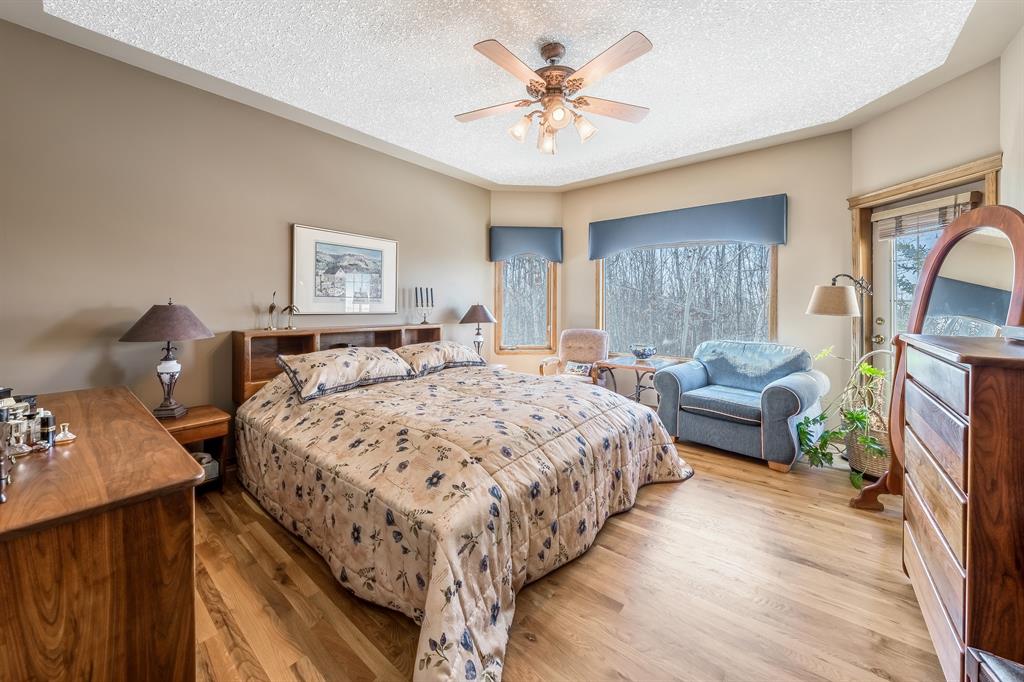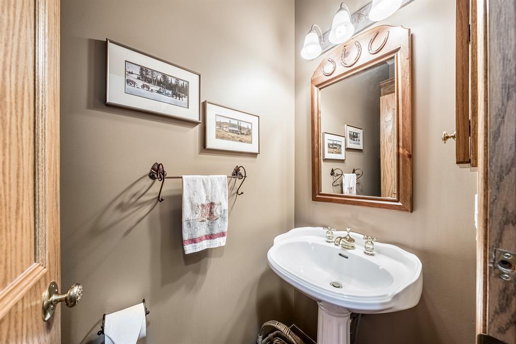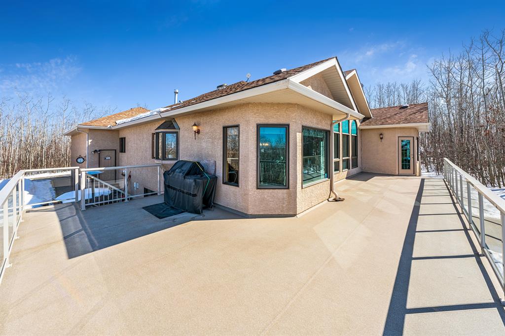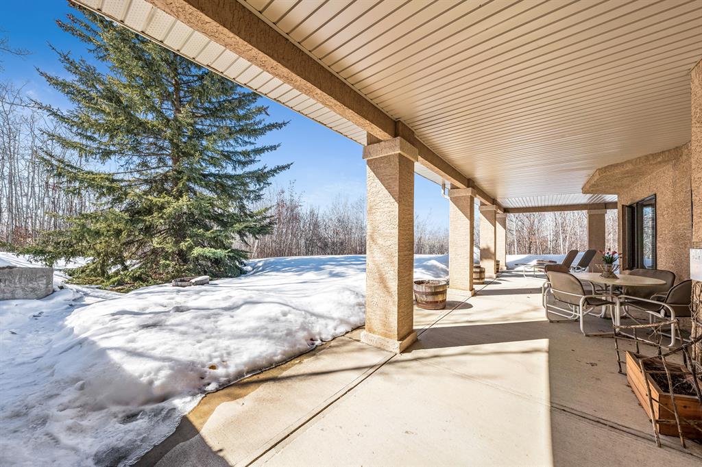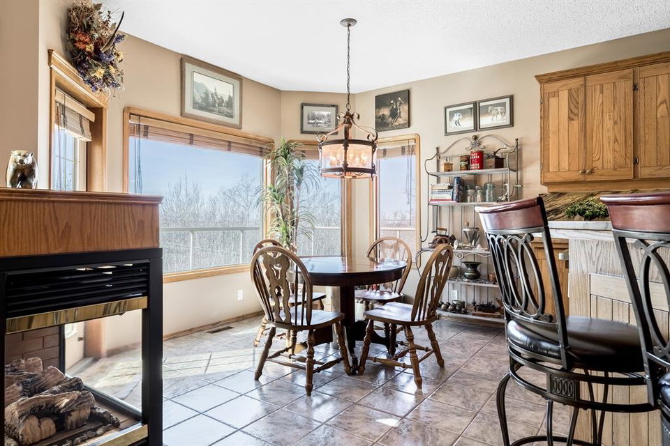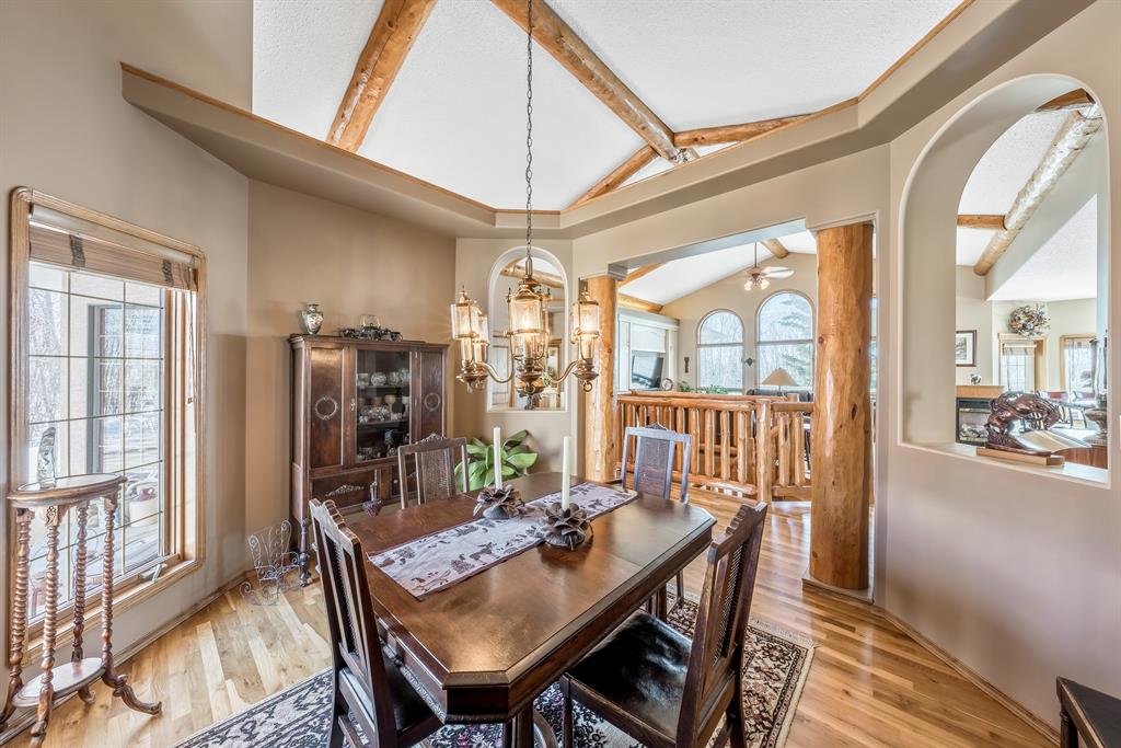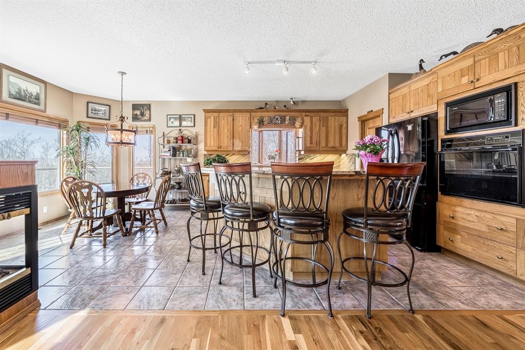 Dreaming of country life with a mountain view? This 4 acre parcel is the perfect spot to soak in all the peace and privacy of the country while being only minutes away from all the conveniences of Okotoks. This property has everything you need for a thriving hobby farm. The circle drive takes you past the two horse corrals, a round pen, 3-stall horse barn offering 900sqft of space for livestock on those cold days (includes electricity, water & rubber mat flooring). There is also an additional exterior water feeder, and 2 horse shelters. This is the perfect setup for all your equestrian needs. Kick off your boots in this gorgeous 1879sqft bungalow with an impressive 23ft soring ceilings with solid wood log beams throughout the great room. The high ceilings allow for a ton of natural light all day long. The open concept features hardwood floors, an island kitchen with granite counter tops and raised breakfast bar, walk-in pantry, gas stove, formal dining area, and large sunny nook with the gorgeous mountain views. The large 12ft wraparound dura-deck with glass railings is wonderful and ideal for entertaining or family gatherings. The office and primary bedroom both have 10ft ceilings. Primary bedroom also has views, generous closet, spa like ensuite with a double vanity. The walk-out lower level has in-floor heating to keep you warm, two more bedrooms, a third bathroom, lots of storage and even an unheated insulated wine/cold room. There is a walk up from the basement to the oversized triple garage with in-floor heating. This is such an incredible piece of land and must be seen to be truly appreciated.