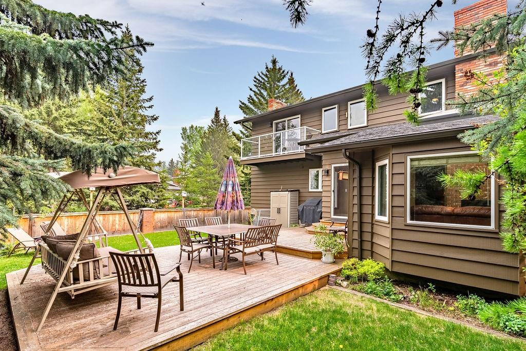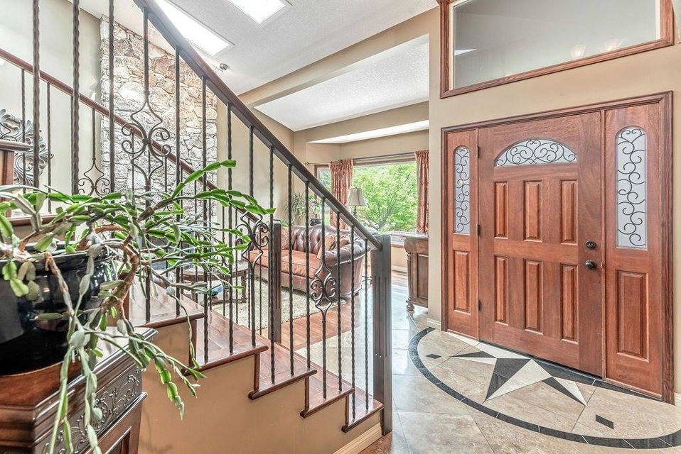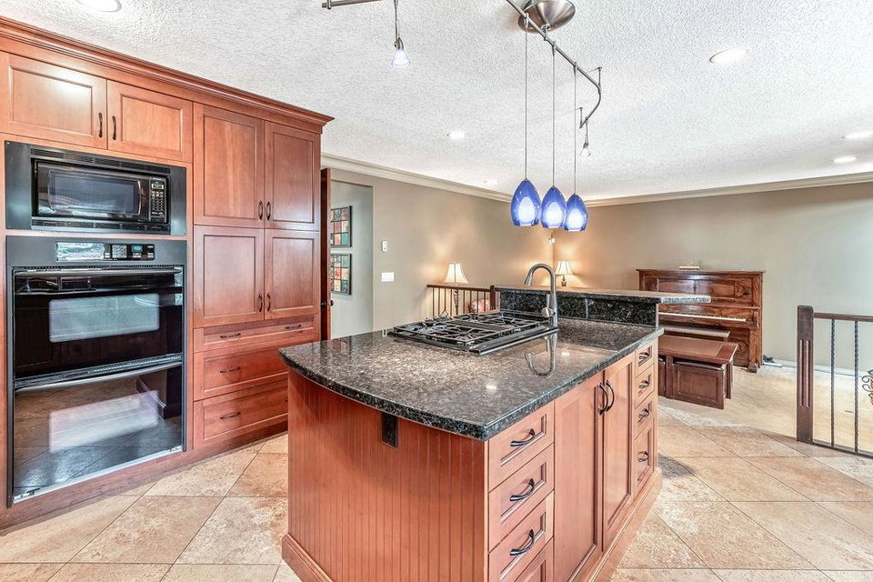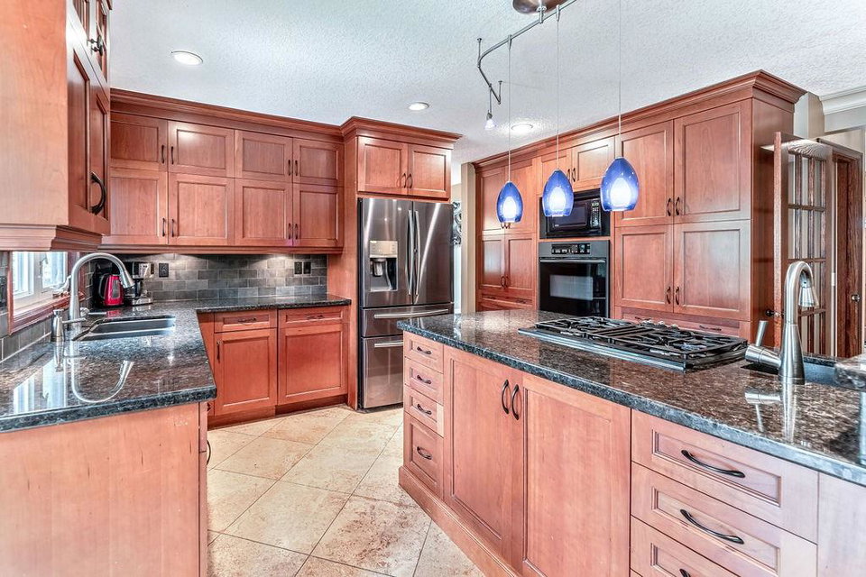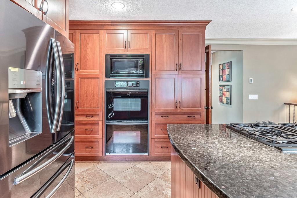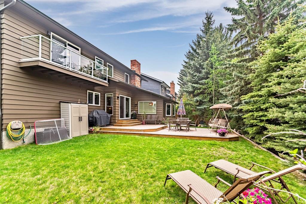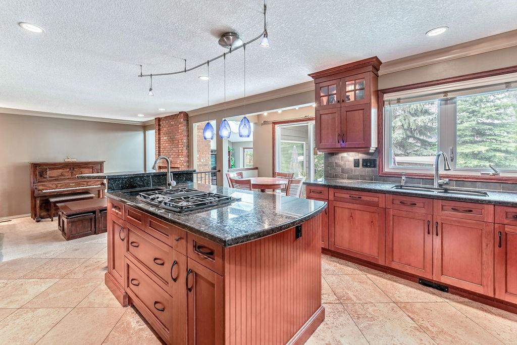 This beautiful upgraded home with 2697sqft of finished living space is located in one of the city’s most sought after communities of Canyon Meadows Estates. Extensively upgraded over the years, this home boasts vaulted ceilings on the main floor, gleaming hardwood floors, chef inspired kitchen that features heated floors, granite countertops, island area with prep sink, dual ovens, gas countertop stove, 2 Meile dishwashers and dual ovens. Open dining room and living room features a lovely stone fireplace with extra windows. Family & flex room enjoys 2nd fireplace making this perfect for everyday living. Upper level incorporates three generous bedrooms, bonus room, balcony and newer 4 pc bath. Large master bedroom with walk-in closet, fabulous ensuite that include heated floors, shower body jets & air jetted soaker tub. Basement is fully finished with 4th bedroom, rec room, free standing fireplace, 3 pc bath and plenty of storage areas. Note: Newer washer & dryer, newer H2O tanks & water softener.