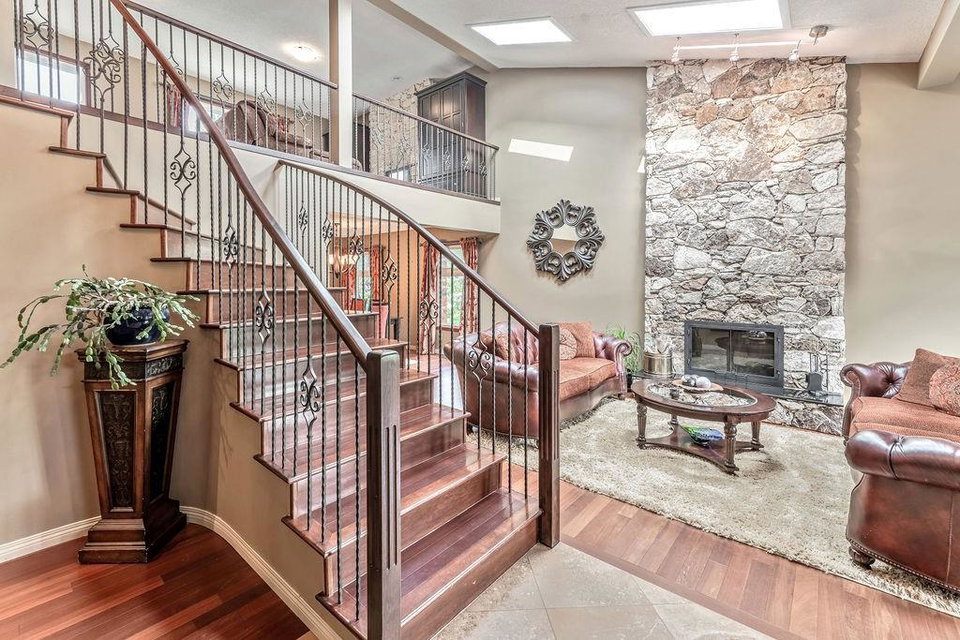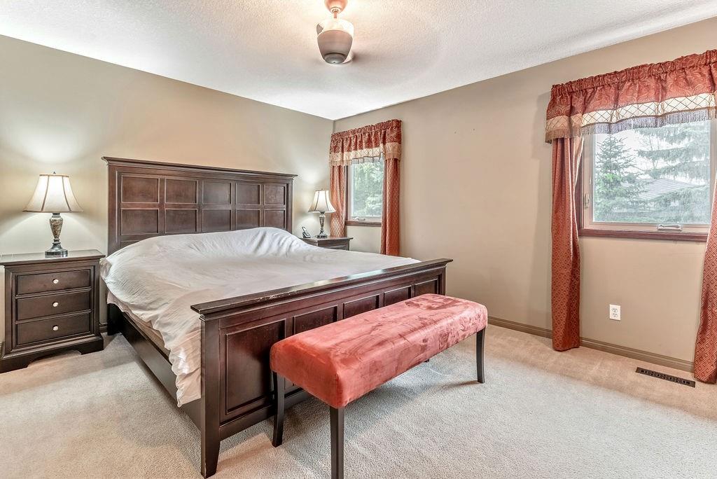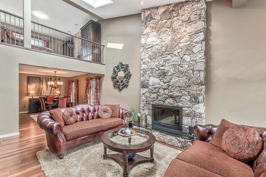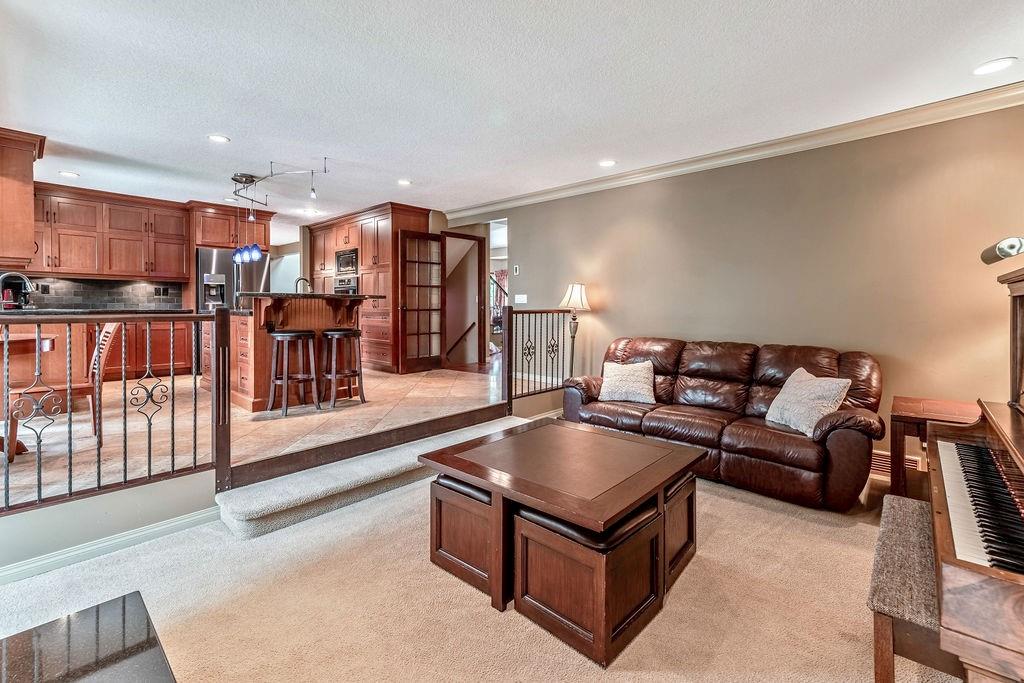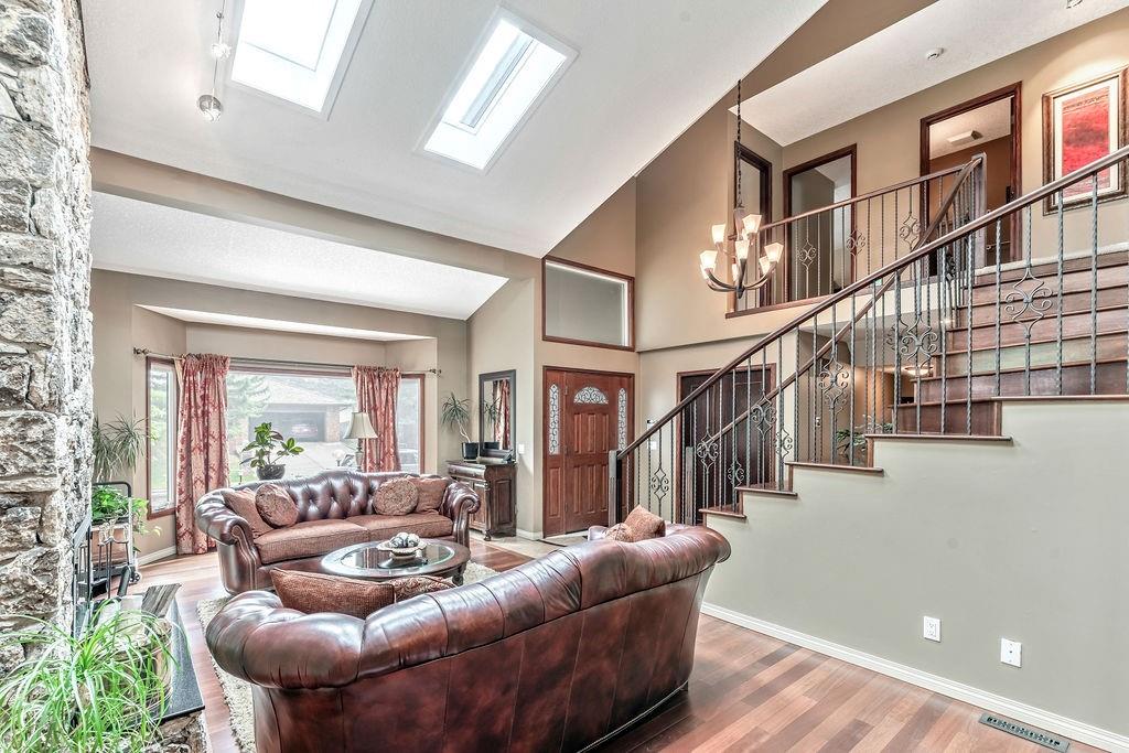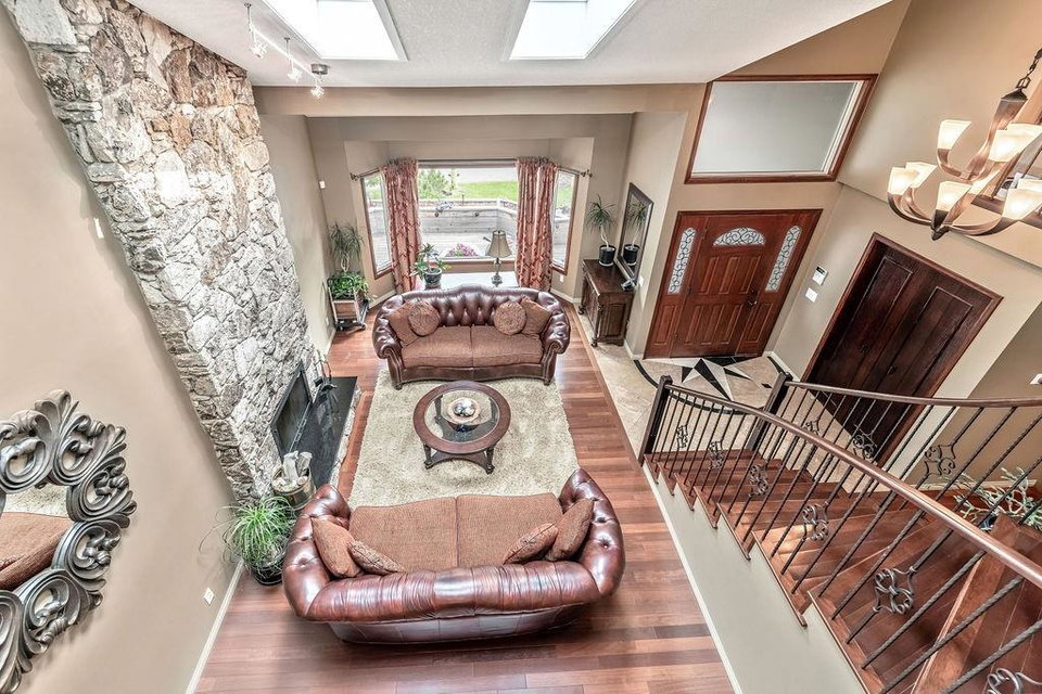 This beautiful upgraded home with 2697sqft of finished living space is located in one of the city’s most sought after communities of Canyon Meadows Estates. Extensively upgraded over the years, this home boasts vaulted ceilings on the main floor, gleaming hardwood floors, chef inspired kitchen that features heated floors, granite countertops, island area with prep sink, dual ovens, gas countertop stove, 2 Meile dishwashers and dual ovens. Open dining room and living room features a lovely stone fireplace with extra windows. Family & flex room enjoys 2nd fireplace making this perfect for everyday living. Upper level incorporates three generous bedrooms, bonus room, balcony and newer 4 pc bath. Large master bedroom with walk-in closet, fabulous ensuite that include heated floors, shower body jets & air jetted soaker tub. Basement is fully finished with 4th bedroom, rec room, free standing fireplace, 3 pc bath and plenty of storage areas. Note: Newer washer & dryer, newer H2O tanks & water softener.