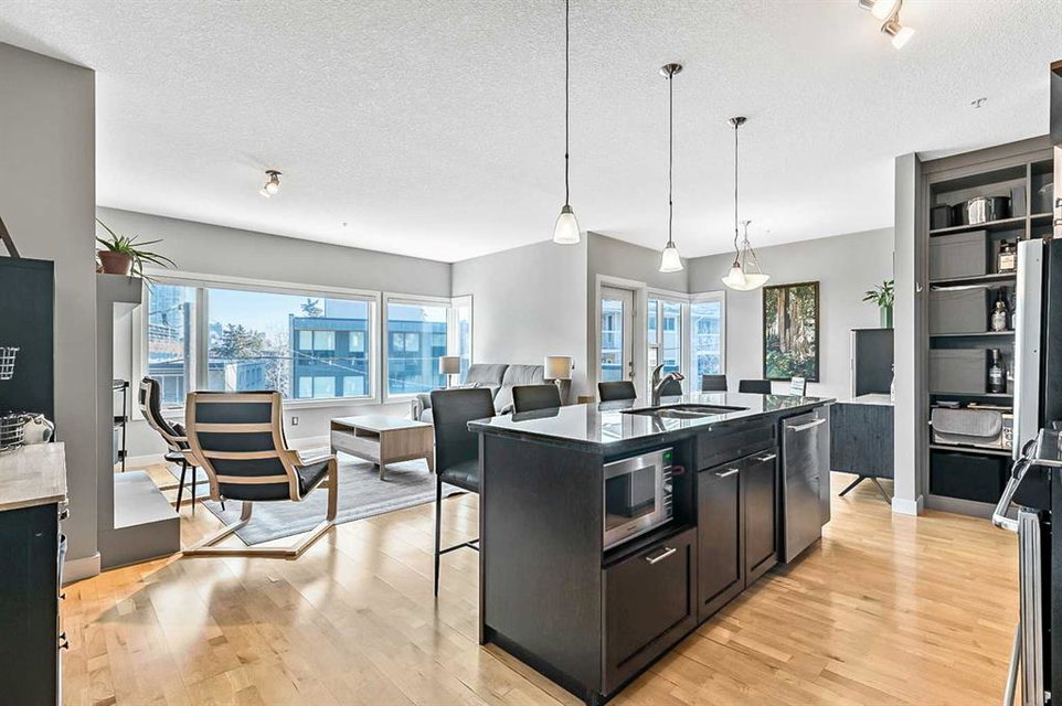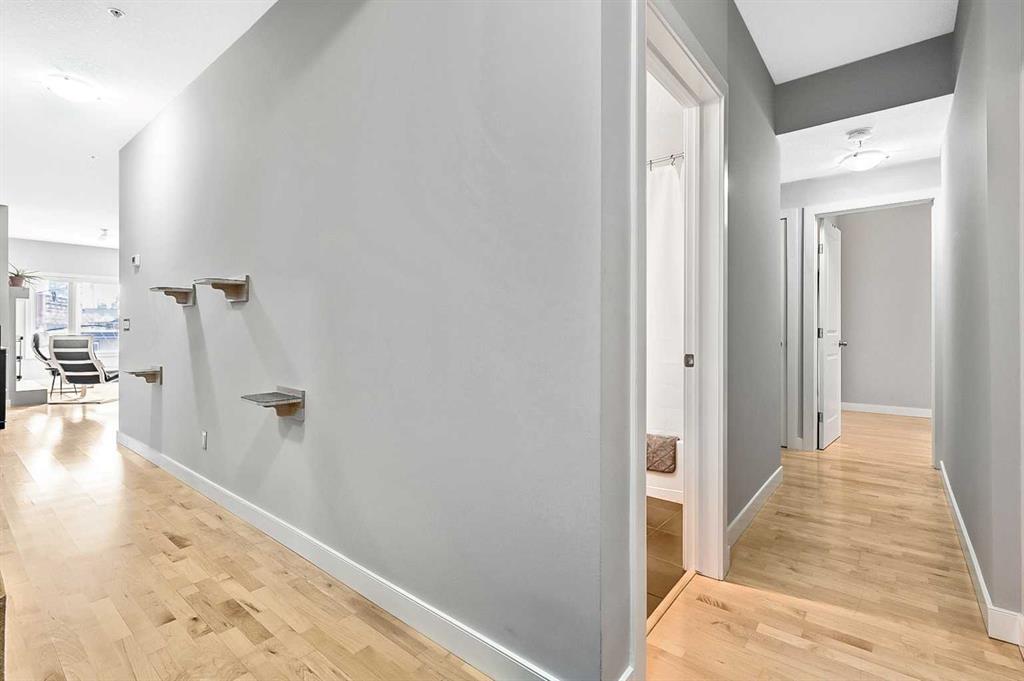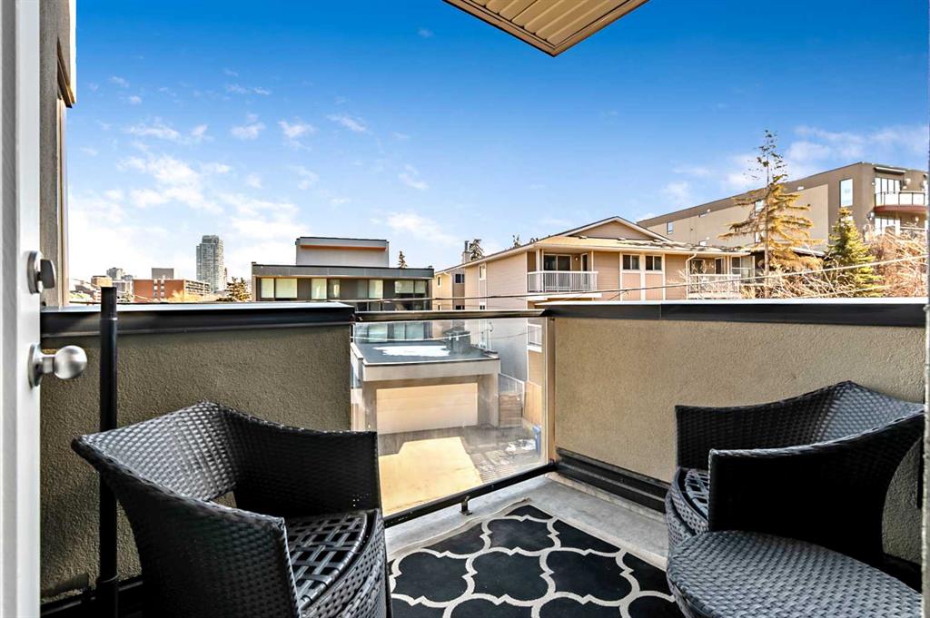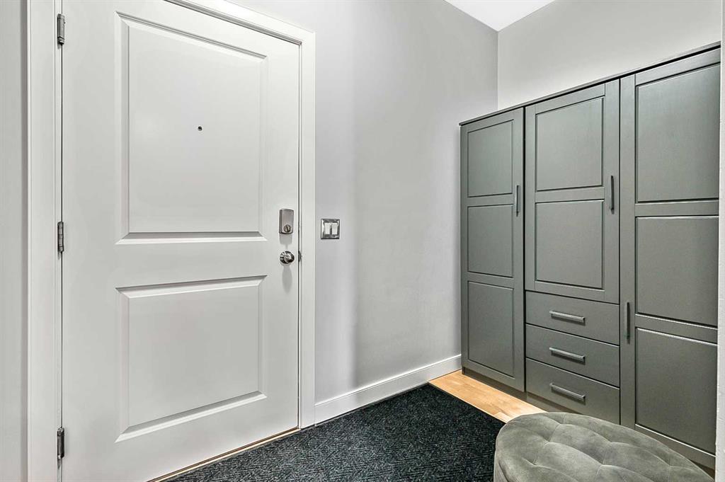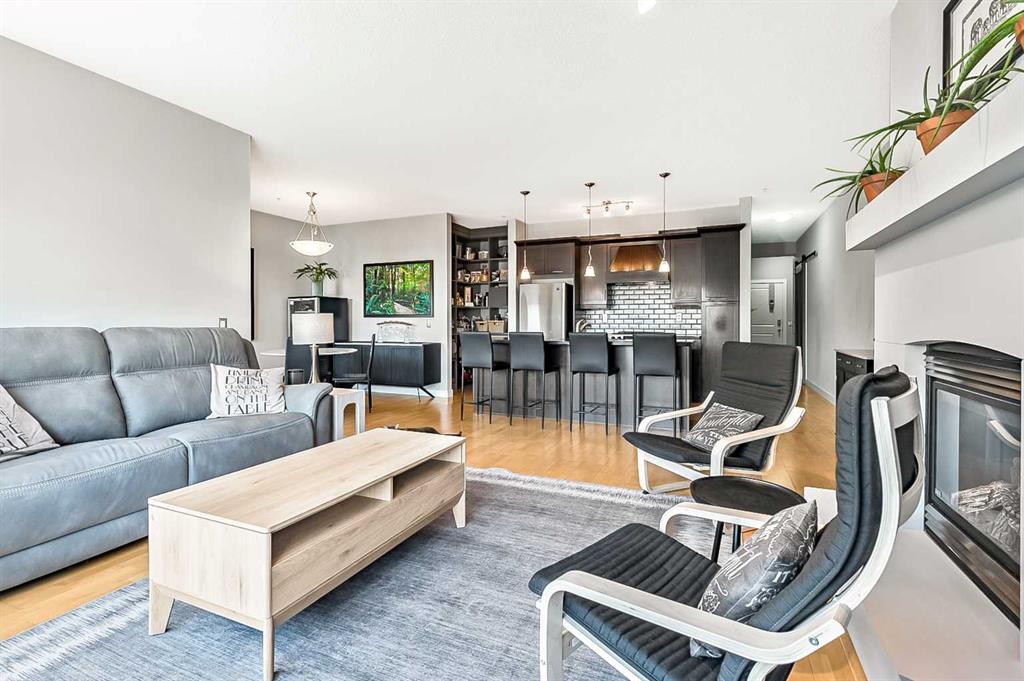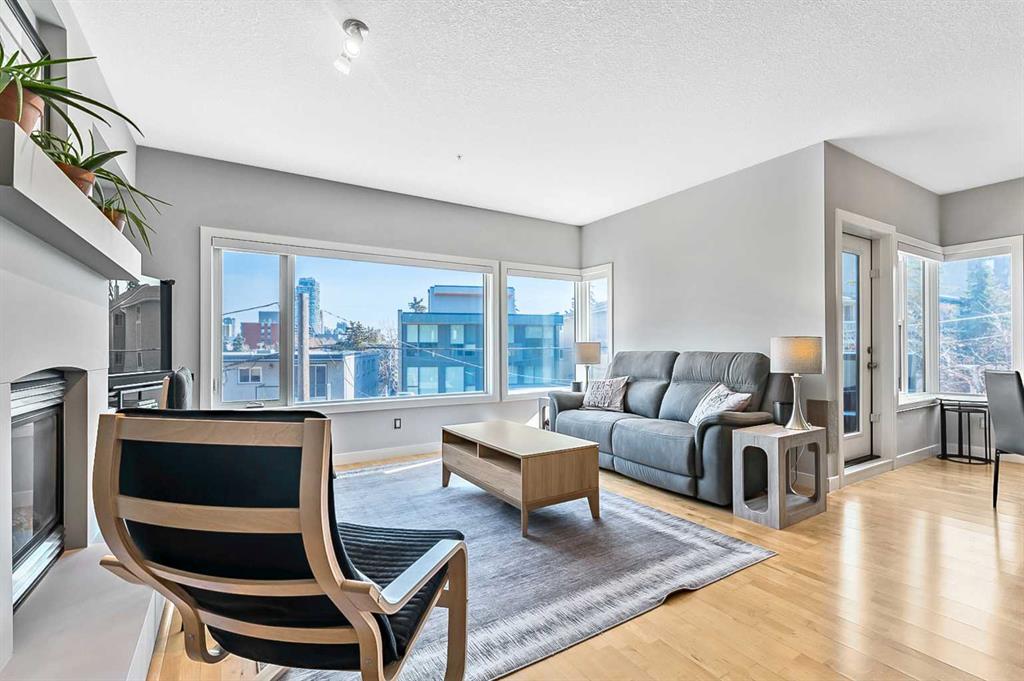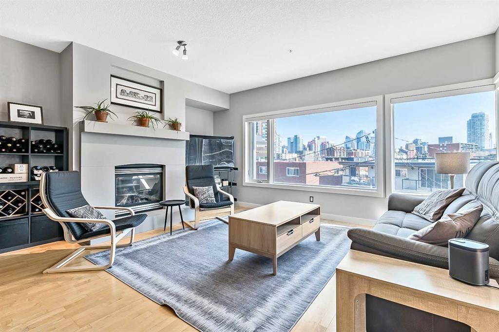 Discover elegant living in Lower Mount Royal with this thoughtfully designed condominium spanning nearly 1,100 square feet. This contemporary home features two bedrooms and two full bathrooms, showcasing an innovative layout that separates the bedrooms and bathrooms from the main living space for enhanced privacy. The home’s distinctive character shines through with high ceilings and abundant natural light streaming through large east-facing windows, offering captivating city skyline views. Additional south and west-facing windows, all equipped with modern touch-lift blinds, create a bright, welcoming atmosphere throughout the day. The inviting living area centers around a gas fireplace, perfect for creating a cozy ambiance during Calgary’s winter months. The well-appointed kitchen features a premium gas range and custom California Closet pantry, ideal for culinary enthusiasts. Convenience meets functionality with a dedicated laundry room housing brand new full-size Samsung washer and dryer. The primary bedroom accommodates a king-size bed and includes a generous walk-in closet. Storage concerns are eliminated with an exceptionally spacious locker, while the parking stall offers unmatched convenience. This urban retreat sits in a prime location, mere minutes from the vibrant amenities of the Beltline, Mission, and Marda Loop neighborhoods, where popular dining and shopping experiences await. With modern features, thoughtful design, and an enviable location, this residence presents an outstanding opportunity for those seeking a sophisticated urban lifestyle.
