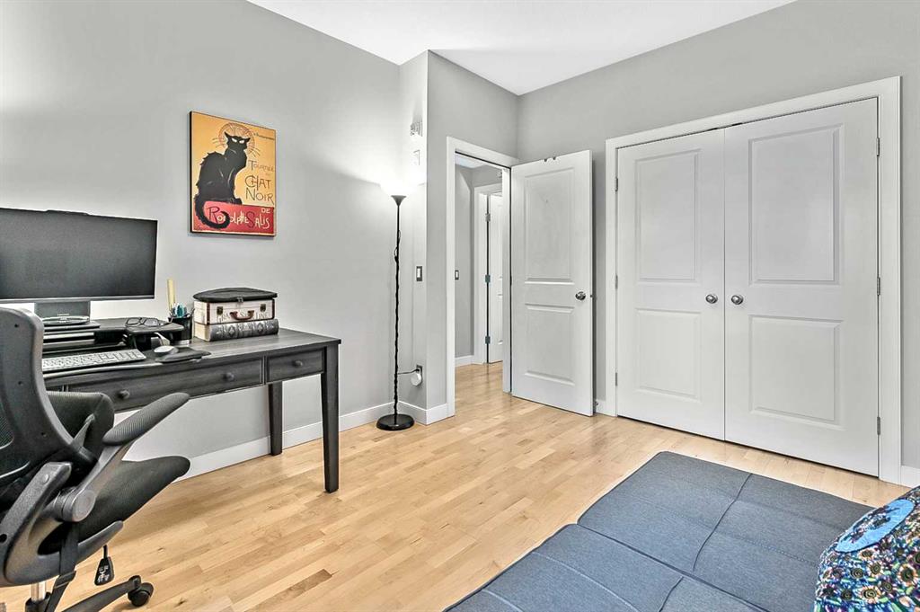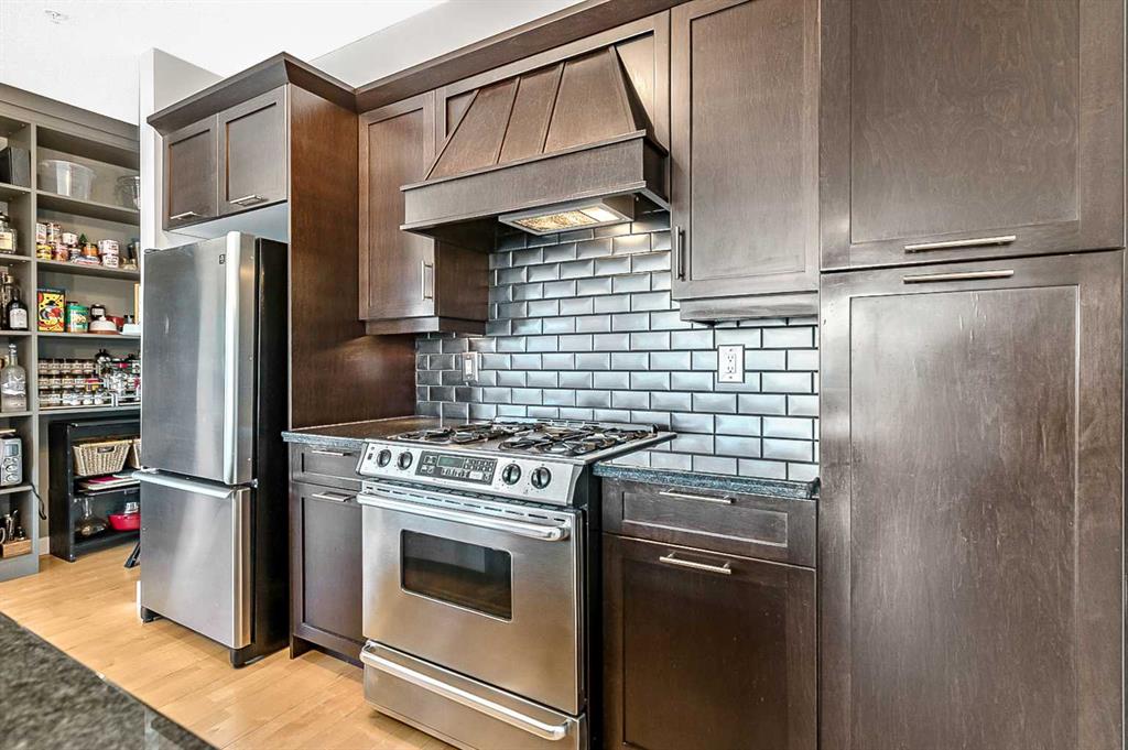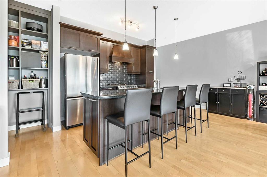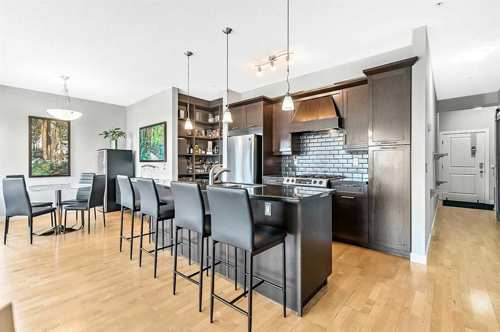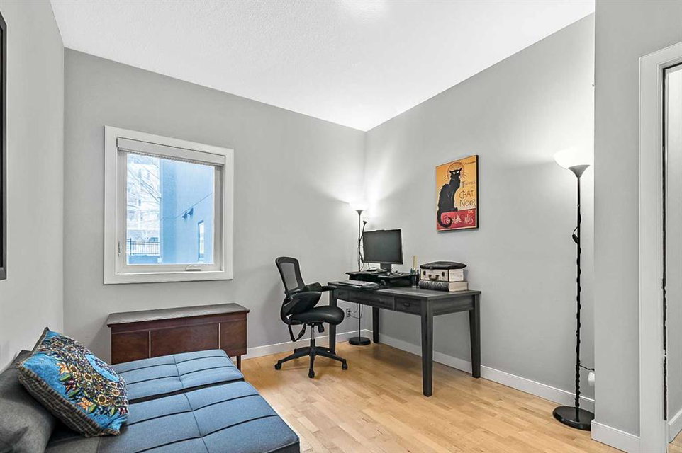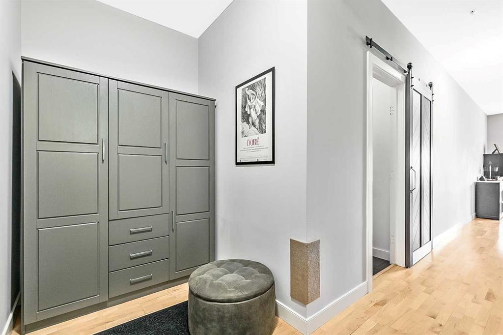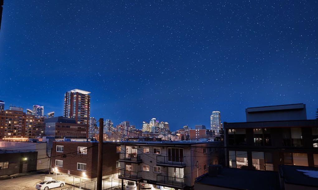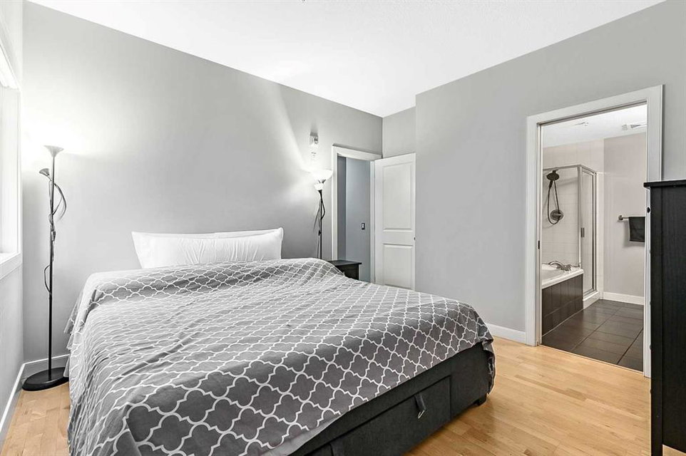 Discover elegant living in Lower Mount Royal with this thoughtfully designed condominium spanning nearly 1,100 square feet. This contemporary home features two bedrooms and two full bathrooms, showcasing an innovative layout that separates the bedrooms and bathrooms from the main living space for enhanced privacy. The home’s distinctive character shines through with high ceilings and abundant natural light streaming through large east-facing windows, offering captivating city skyline views. Additional south and west-facing windows, all equipped with modern touch-lift blinds, create a bright, welcoming atmosphere throughout the day. The inviting living area centers around a gas fireplace, perfect for creating a cozy ambiance during Calgary’s winter months. The well-appointed kitchen features a premium gas range and custom California Closet pantry, ideal for culinary enthusiasts. Convenience meets functionality with a dedicated laundry room housing brand new full-size Samsung washer and dryer. The primary bedroom accommodates a king-size bed and includes a generous walk-in closet. Storage concerns are eliminated with an exceptionally spacious locker, while the parking stall offers unmatched convenience. This urban retreat sits in a prime location, mere minutes from the vibrant amenities of the Beltline, Mission, and Marda Loop neighborhoods, where popular dining and shopping experiences await. With modern features, thoughtful design, and an enviable location, this residence presents an outstanding opportunity for those seeking a sophisticated urban lifestyle.