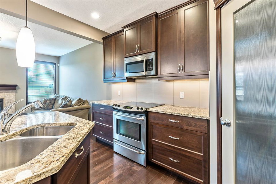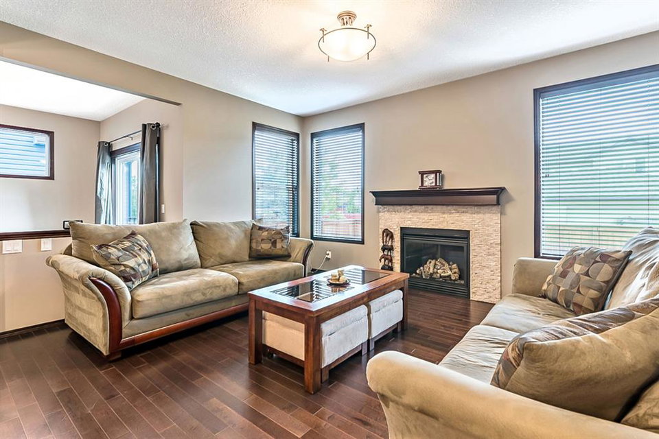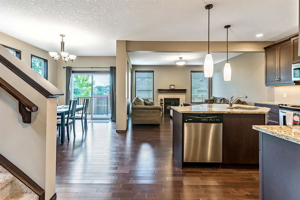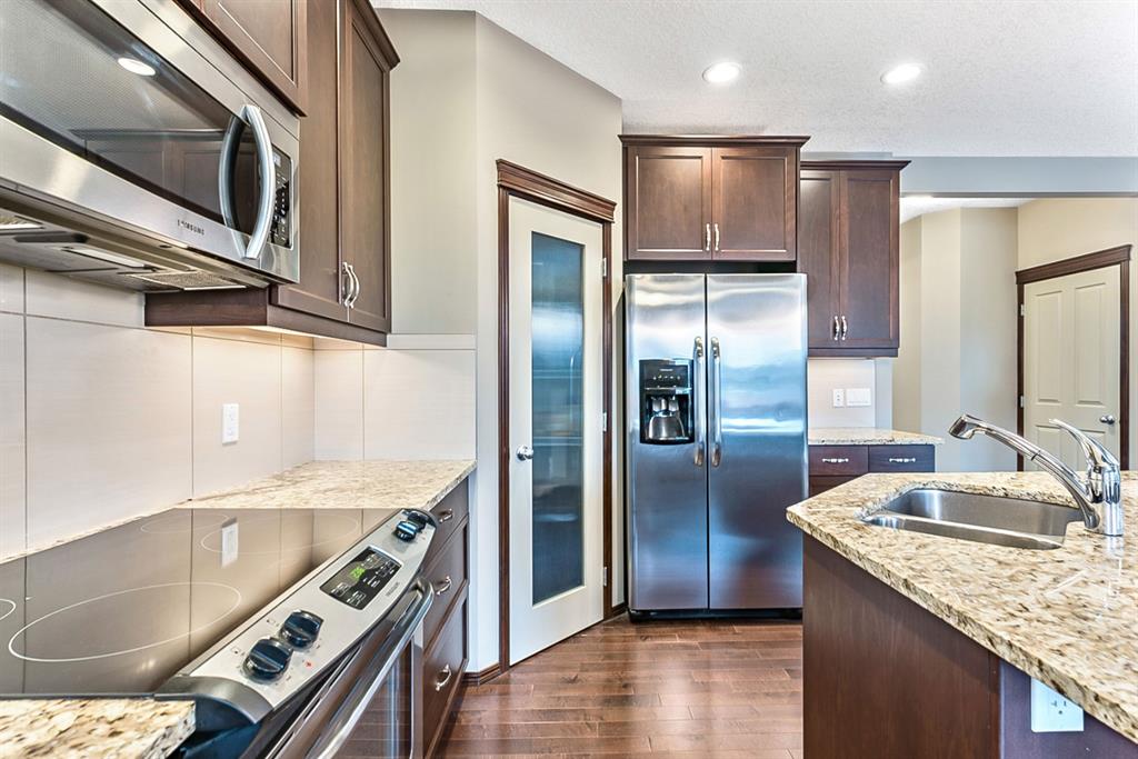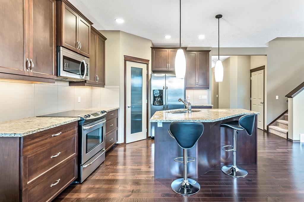 Beautiful home in the wonderful community of Chaparral Valley. Substantial upgrades throughout this stunning bright home include hardwood flooring through-out the main floor, custom cabinetry, granite counter-tops, stainless steel appliances, convenient office/den on the main floor office, walk-in pantry, and a large mudroom. Upstairs features a king sized master bedroom, a large 4 piece ensuite bathroom with separate soaker tub and shower, two more generous sized bedrooms, and a massive bright bonus room. The lower level is unfinished and a waits your personal touch. The fully maintenance free yard both front and back makes for an easy summer enjoyment. Great location facing into a green space on a quiet street. A double attached oversized garage finishes this home off nicely. Don’t forget, this home offers A/C to keep you cool this Summer. This home shows pride of ownership and is a must see!