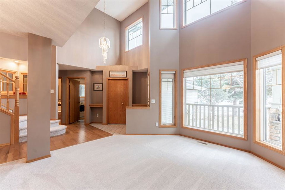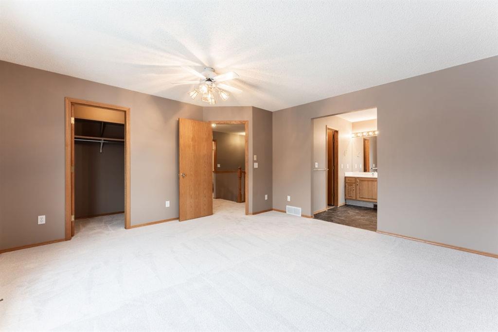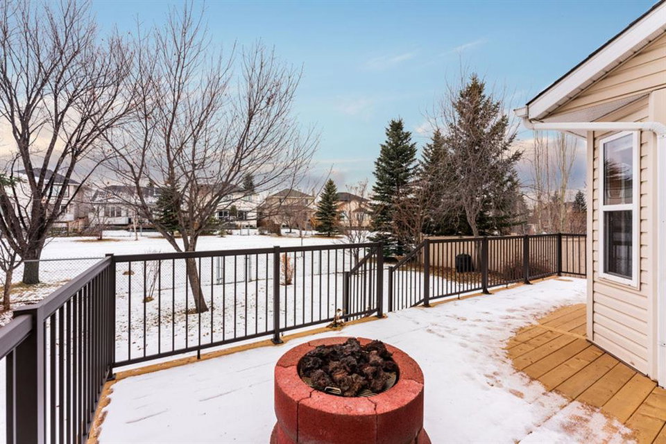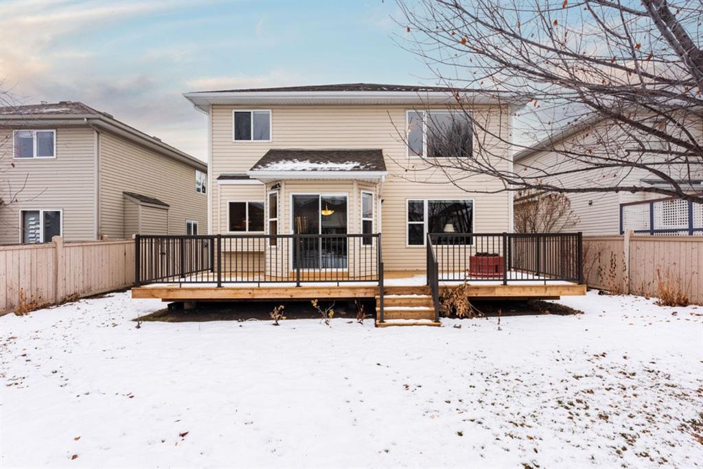 Looking for the perfect place to call home? Look no further. Original owner, this 2000+ sq ft home shows pride of ownership throughout. Highlights of this home include vaulted ceiling in entrance and sitting room, spacious dining room, main floor den, open concept kitchen, an abundance of windows for natural light and oversized master bedroom with 4pc master ensuite. Unfinished basement is yours to design and add the finishing touches. Outdoor features West facing backyard onto green space and new large deck with metal railing, expanding from one end of the house to the other, with built in gas firepit. Home also includes A/C for those hot summer nights! Take advantage of the community lake – fishing, swimming, skating and so much more!