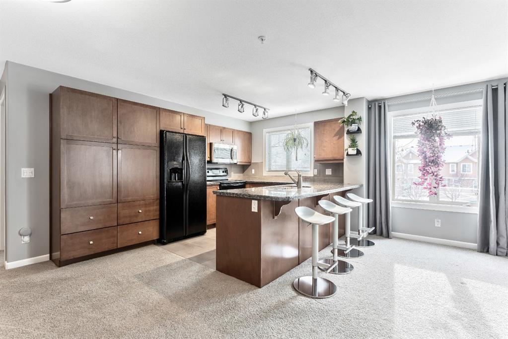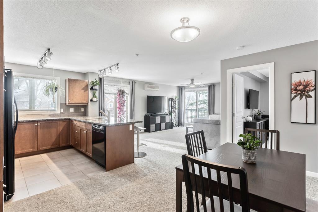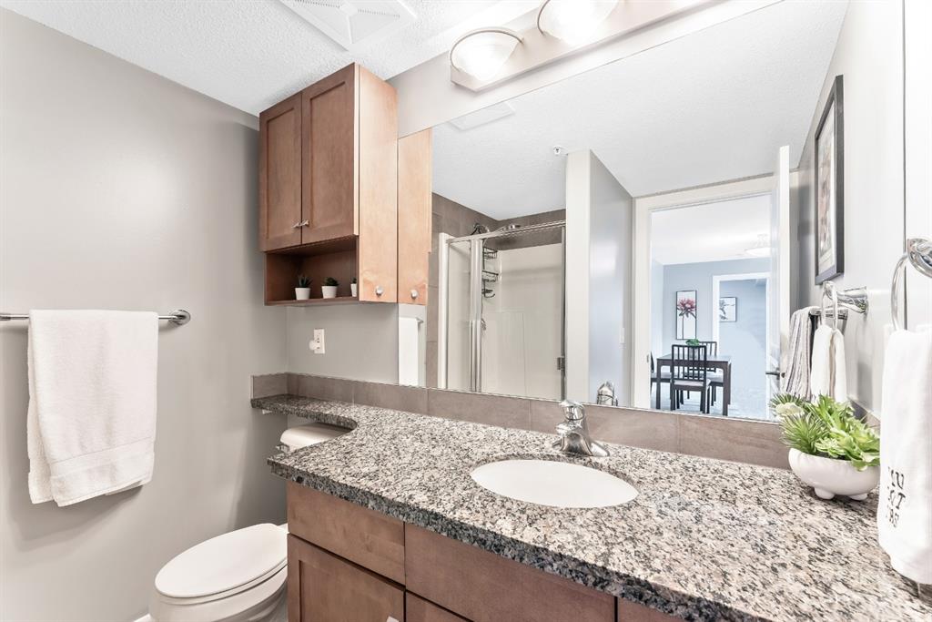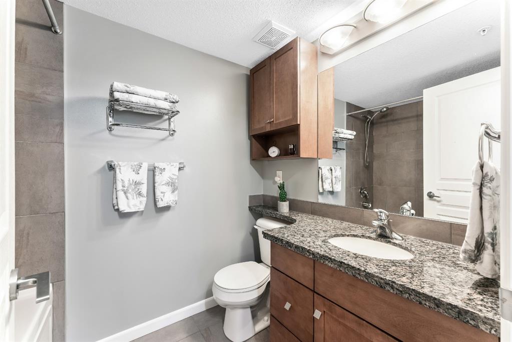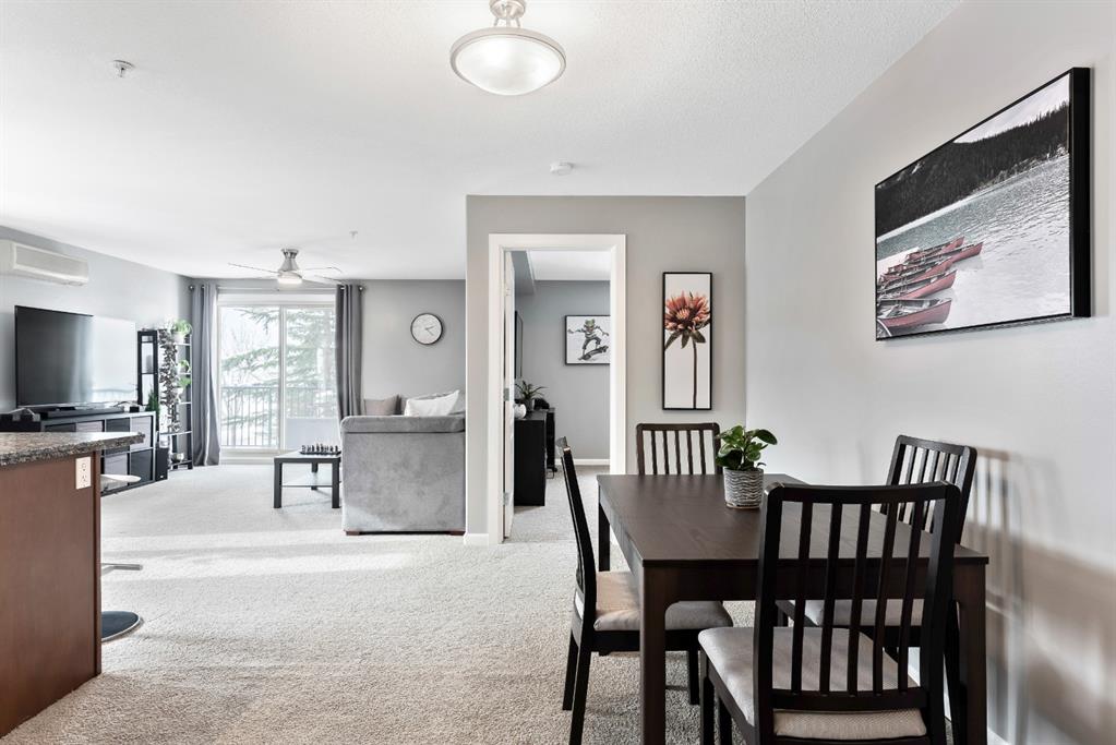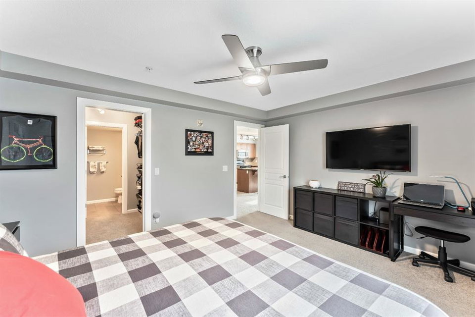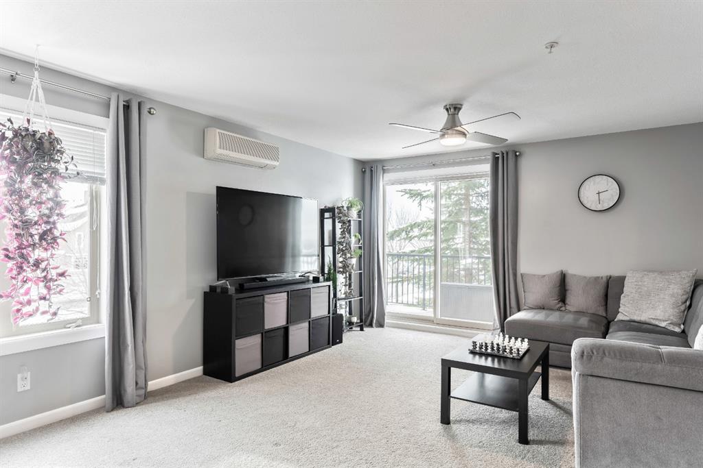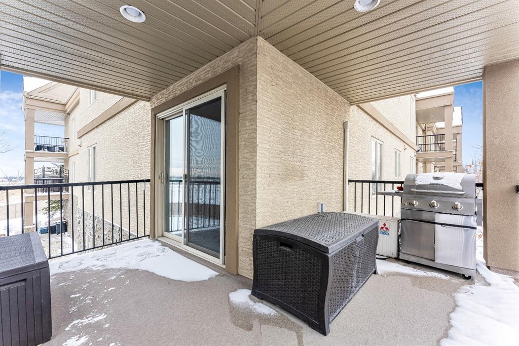 Fabulous corner end unit! This beautiful rare two-bedroom, two bathroom and two tilted heated parking with air conditioning features open concept floor plan and perfect layout. The upgraded expanded kitchen enjoys stainless-steel & black appliances, granite countertops, undermount sink, extra cabinets and island area. Large living room is perfect for everyday living with access to covered patio, northwest exposure & gas BBQ hookups. Two generous sized bedrooms on each end of the unit giving plenty of privacy. Master bedroom can easily accommodate a king-size bed, walk thru closet to a “spa” like ensuite. Building amenities are extensive, with full fitness room, steam room, hot tub, private theater room, party room (kitchen facilities), car wash and library. Condo fees include heat, water, sewer, exterior maintenance and 18+ building. Quick access to schools, shopping, public transit, Deerfoot & Stoney Trail. Home shows extremely well with pride of ownership!