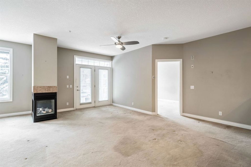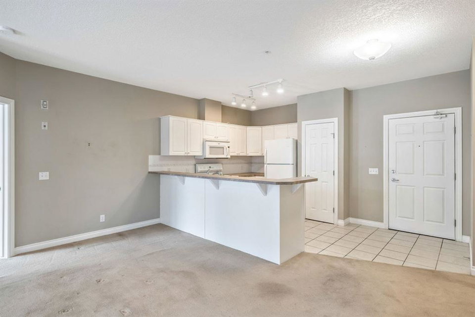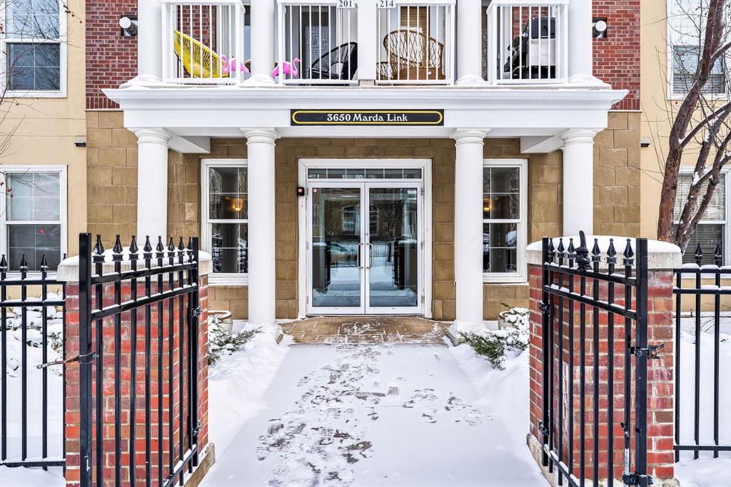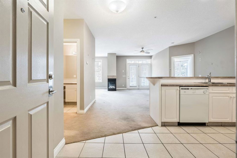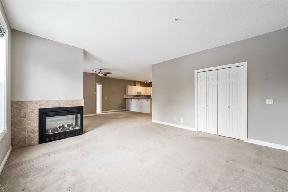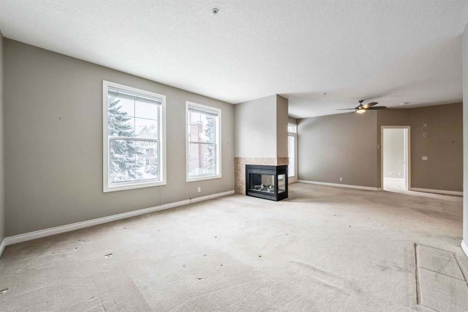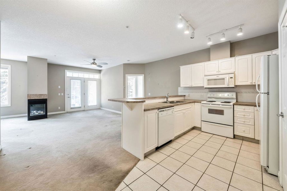 Located in the coveted area of Marda Loop, this 1000+ sq ft, second floor condo unit is most desirable! Highlights of this unit include 1 bedroom, 1 1/2 baths, open layout, white kitchen and neutral palette throughout, raised eating bar, computer nook with built in shelving, tile and carpet flooring, 3 sided gas fireplace and in-suite laundry. The spacious bedroom features a bright bay window, walk thru closet and 4 pc ensuite. Garden door off dining area leads to a South facing private balcony, c/w gas hookup. Adult (18+) building also includes pool, fitness area, social room and guest suites for out of town visitors, heated and secure u/g parking and storage unit. Enjoy inner city living at it’s finest – walking distance to all amenities that you would need!!