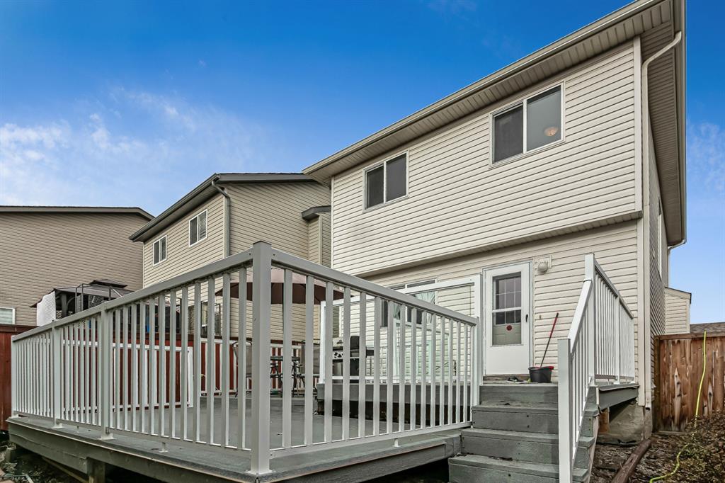 BACK ON THE MARKET…Fantastic opportunity to own four-bedroom home with a fully finished basement and oversized detached garage. Beautiful open concept layout features cozy living room with gas burning fireplace, dining nook, built-in workstation and 2 pc bath. Kitchen enjoys raised island, black appliances, closet pantry and extra counter space. Upper floor boasts three generous sized bedrooms and 4pc bath. The master retreat can easily accommodate king sized furniture and has a large walk-in closet, full ensuite that includes soaker tub & stand-alone shower. Basement is fully finished with rec. room, extra bedroom, laundry, storage and 4pc bathroom. Sunny south backyard perfect for bbq’s. Oversized two-tiered deck, fully fenced & landscaped with lane access to the garage. Walking distance to schools, playgrounds, public transit, shopping, restaurants & Fish Creek. Home show well with pride of ownership. Quick possession available if needed!
