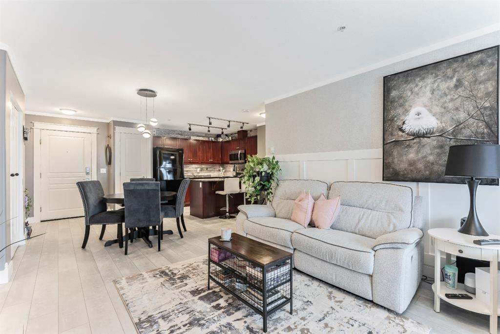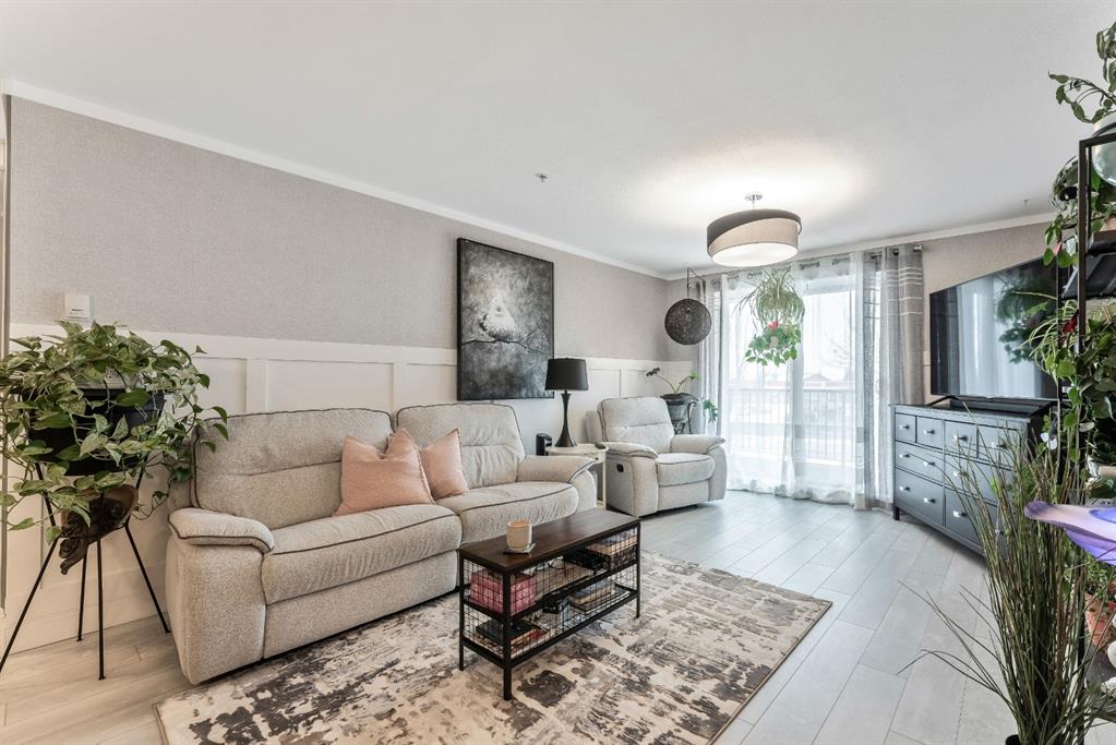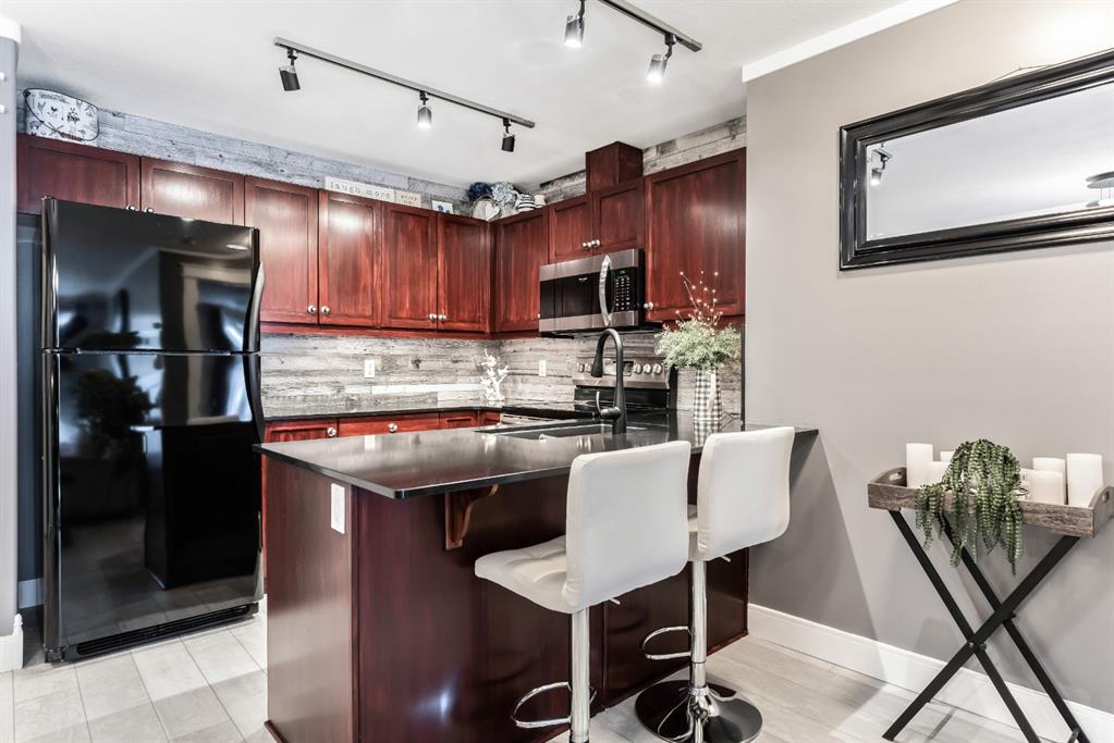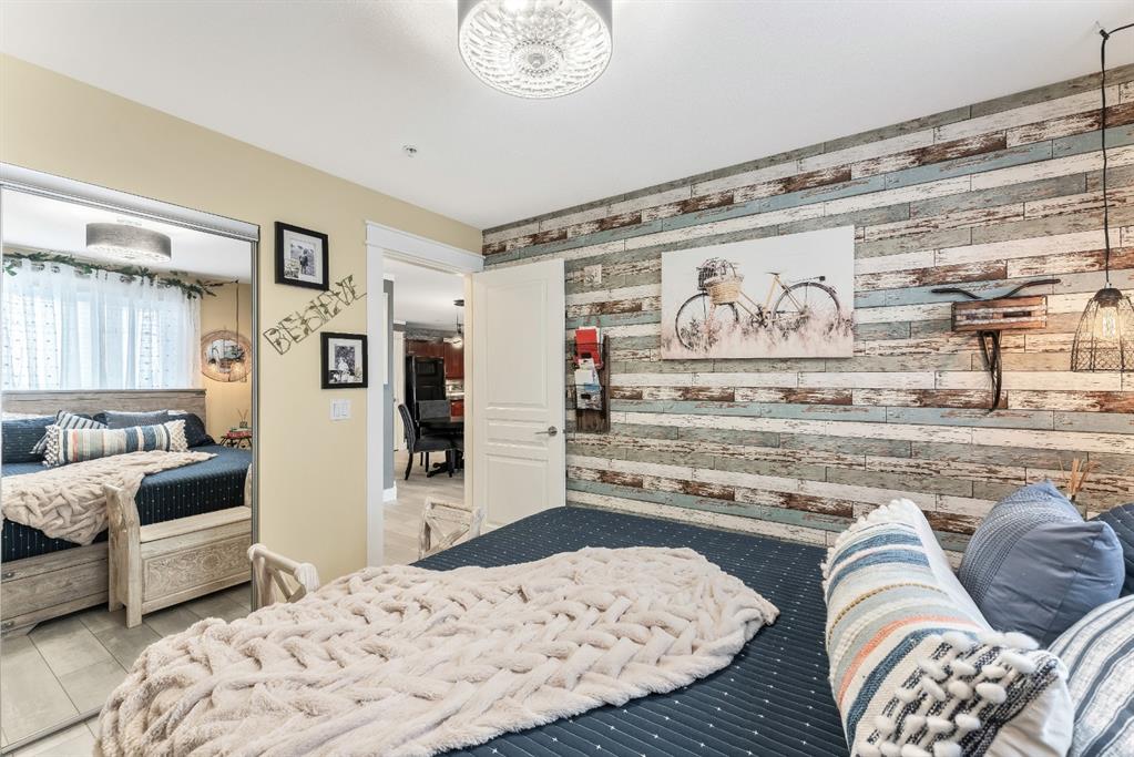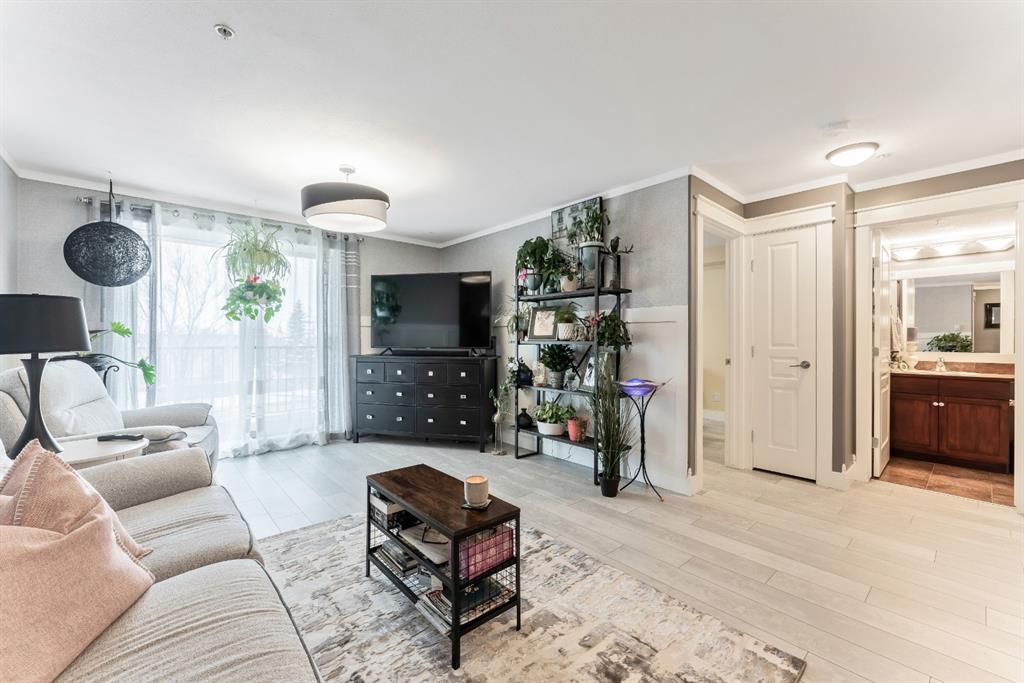 Condo living at its finest! This beautiful executive two bedroom plus den home features open concept floorplan with 1009 sqft of living space. Newly renovated kitchen enjoys quartz countertops, stainless & black appliances, trendy backsplash and island. Large living room separates two generous sized bedrooms with the master bedroom having a full ensuite and walk thru closet. Note: In-floor heating, west facing balcony, bbq hookups, new laminated flooring, freshy painted, newer base & casing and one titled heated parking stall. Building amenities are extensive, with full fitness room, steam room, hot tub, private theater room, party room (kitchen facilities), car wash and library. Condo fees include heat, water, sewer, exterior maintenance and 18+ building. Quick access to schools, shopping, public transit, Deerfoot & Stoney Trail. Anything else is a comprise!