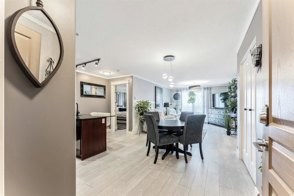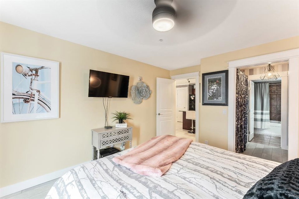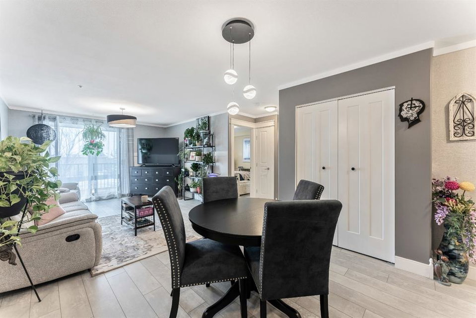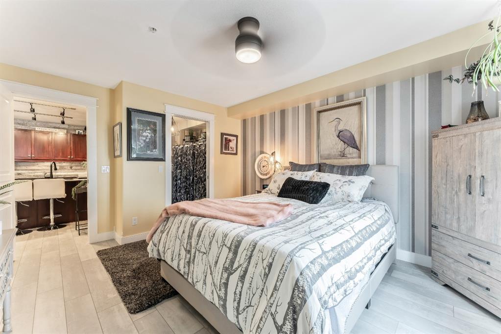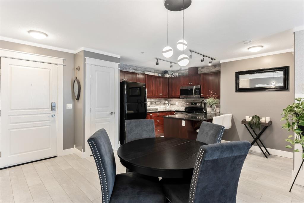 Condo living at its finest! This beautiful executive two bedroom plus den home features open concept floorplan with 1009 sqft of living space. Newly renovated kitchen enjoys quartz countertops, stainless & black appliances, trendy backsplash and island. Large living room separates two generous sized bedrooms with the master bedroom having a full ensuite and walk thru closet. Note: In-floor heating, west facing balcony, bbq hookups, new laminated flooring, freshy painted, newer base & casing and one titled heated parking stall. Building amenities are extensive, with full fitness room, steam room, hot tub, private theater room, party room (kitchen facilities), car wash and library. Condo fees include heat, water, sewer, exterior maintenance and 18+ building. Quick access to schools, shopping, public transit, Deerfoot & Stoney Trail. Anything else is a comprise!