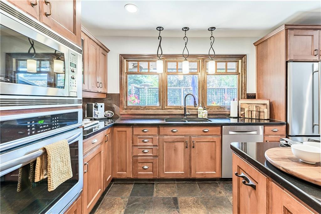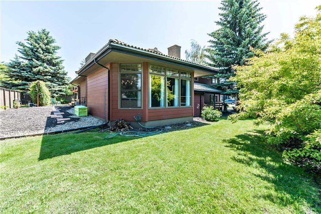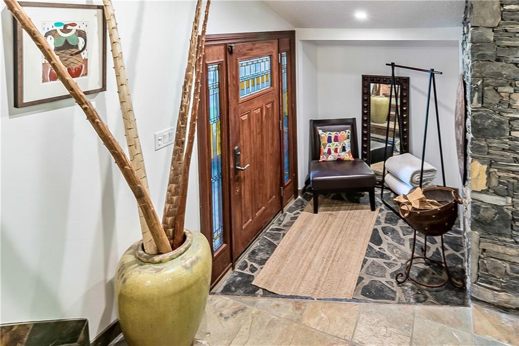 Welcome to your new mid century modern architecturally upgraded home. A former acreage property, now a large pie shaped lot , tucked away in a quiet cul-de-sac, surrounded by your new best friend neighbours. This home offers 3100 square feet of above grade well appointed developed space. When you first walk up to this character home you are welcomed by a grand covered, flag stone walkway, perfect for storm watching under cover. Once in this unique home your eye is drawn to the elegant dining room that easily seats guests for very large dinner soirée, to set the mood this grand room features a slate tiled fireplace and a dedicated bar area. The majestic living room features a massive stone fireplace, upgraded transom heritage windows and elegant slate floors. Have a seat and snuggle in on a cold fall day or throw open the windows and feel the breeze all while enjoying the cabin like retreat space. The large modern kitchen is warm and inviting with custom built maple cabinetry complemented by copper metal backsplash and granite countertops. The large island area features a 6 burner gas stove and downdraft with elevated counter eating area. When the flowers are in bloom step right out from the kitchen to your private outdoor patio oasis. With over 400 sq ft of outdoor living space you can enjoy watching the kids play or relax with some alone time on those warm summer days and nights while listening to your favourite tunes on the home wired speaker system. Upstairs offers a large master retreat complemented by a vintage spa inspired 5 piece ensuite, walk-in closet and southwest facing balcony for those morning coffee pick me ups. Completing the upstairs bedroom area is additional south and west facing dream bedrooms, spacious with the mid-century built-ins and original hardwood floors. On the lower level the artist, hobbyist or movie enthusiasts will be thrilled with your huge south facing bright, airy and full of inspiration studio/media room. Next door is the 4th bedroom, no its an office,no its a bedroom. It’s whatever you need it to be, perfect for the teen who wants their own space or a grand office space with plenty of room for files and files and more files or for guests who may never leave. Finally the basement, it is partially developed and works perfectly as a workout room or yoga studio, Namaste. The balance of the basement is unspoiled it has a roughed in fireplace waiting for your special touch. The allure of the Canyon Meadows Estates community, is the schools for all ages, the walking distance to Fish Creek Park and indoor swimming pool, fitness centre and tennis courts is just the tip of the iceberg for the amenities of this fabulous neighbourhood. With close proximity to major routes, your commute in and out of the Estate is stress free.