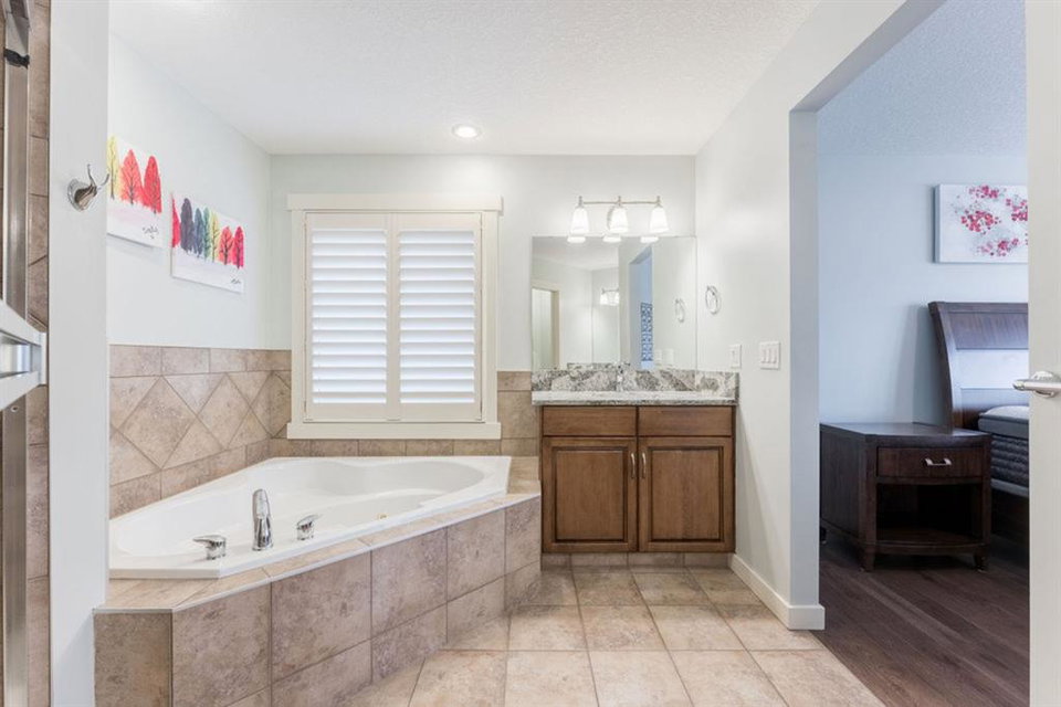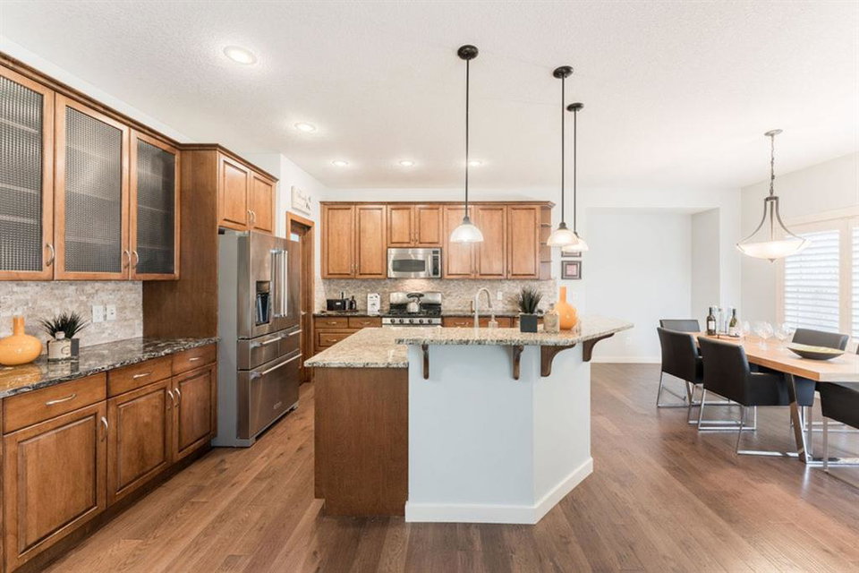 This stunning Estate home has it all! Boasting over 2400 sq ft, features include a grand entrance with vaulted ceilings, leading into a spacious open layout, perfect for entertaining. The large kitchen has granite countertops, raised eating bar, stainless steel appliances, “walk thru” style pantry and custom tile backsplash. Oversized and bright dining area is adjacent to living room with an amazing built in stone surrounded fireplace/tv unit. Neutral colors throughout, hardwood over entire main and upper floors. FIVE bedrooms (3 up), including master with 5 pc ensuite, oversized shower, soaker tub and walk-in closet. Fully finished basement provides tons more room. Enjoy the fully landscaped (w/ u/g sprinklers) West facing backyard from your large deck, just steps away from a cozy hot tub and privacy trellis. Located in a quiet cul-de-sac, near shopping, transit and schools.
